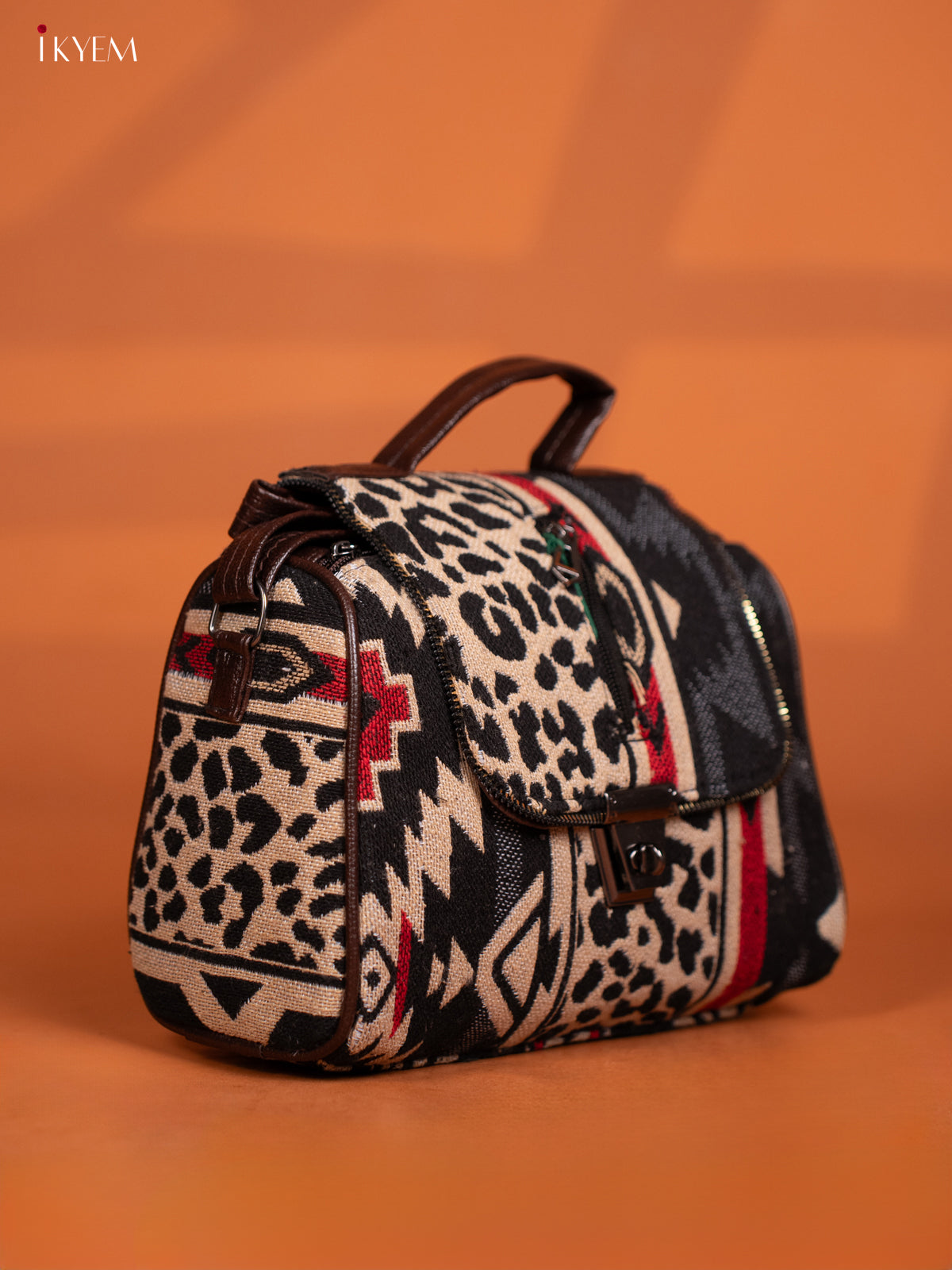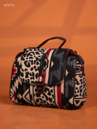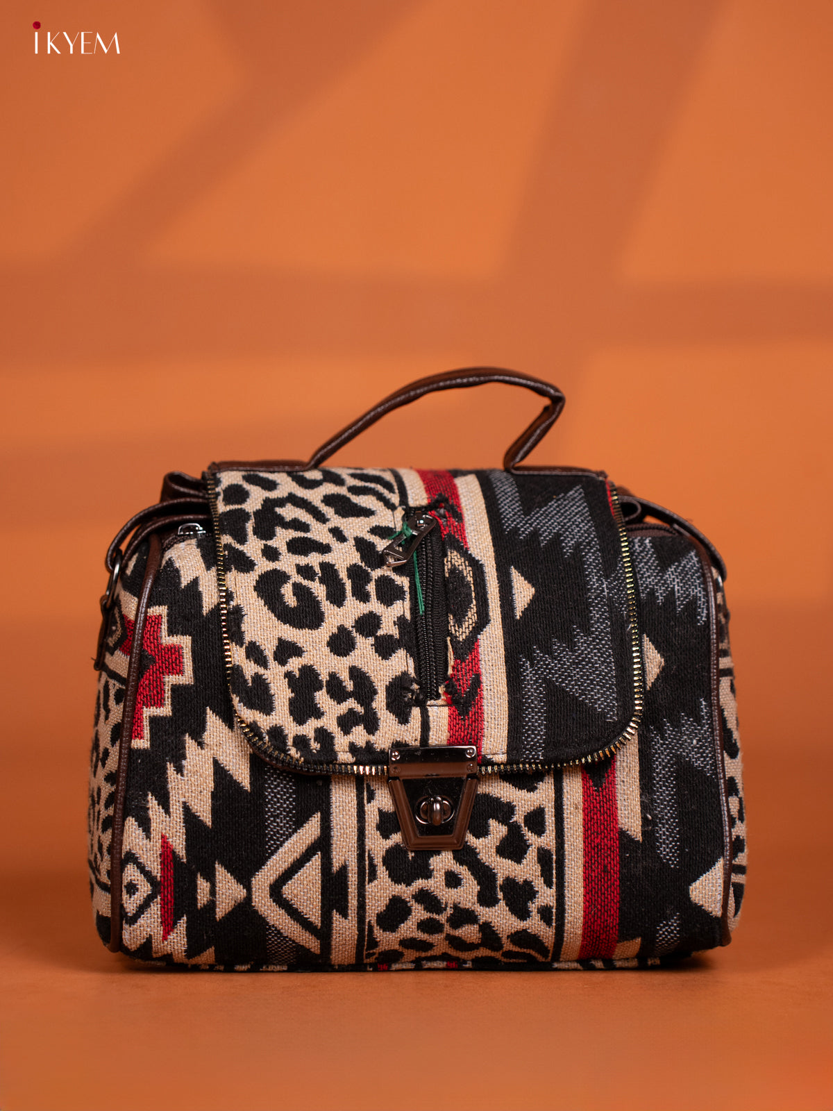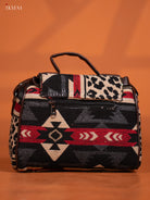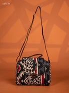 Jacquard Ikat Printed Leather Sling Bag Gusset & Flap with 4 Compartments - Black with Red - KD26606