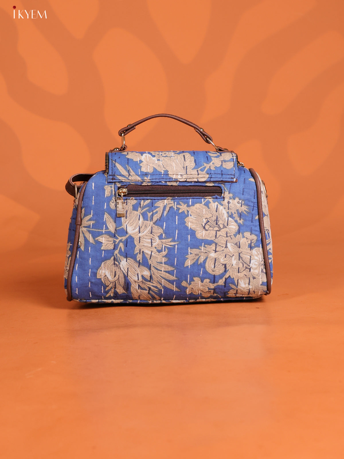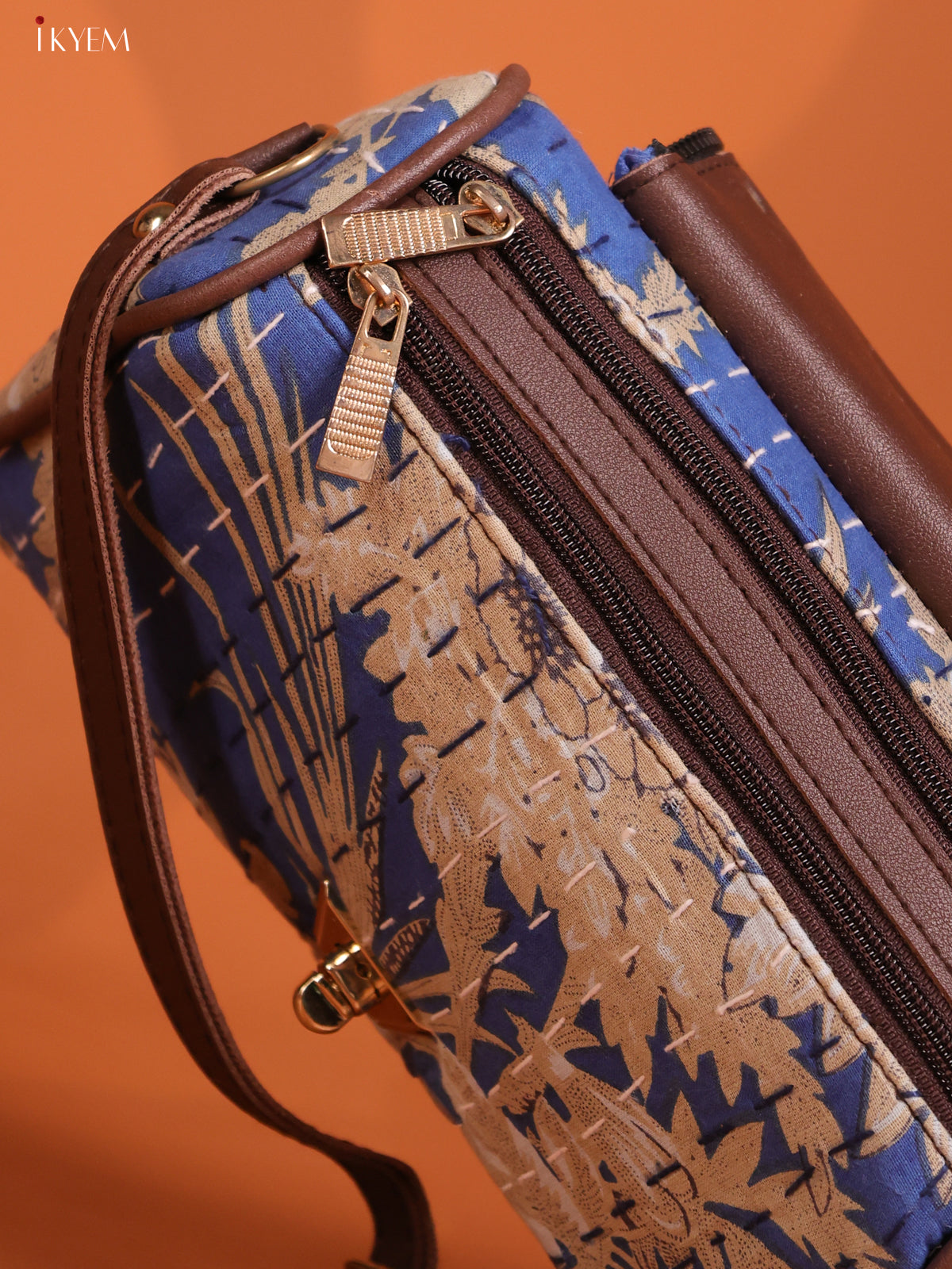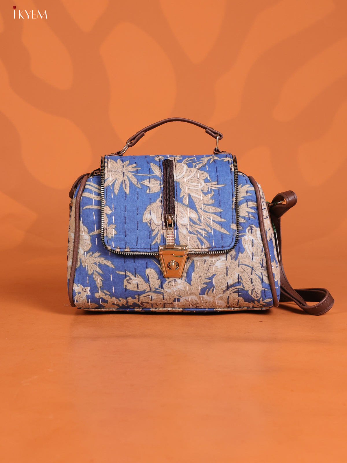- Introducing our Floral Printed Gusset & Flap Leather Sling Bag with 3 compartments in Sky blue.