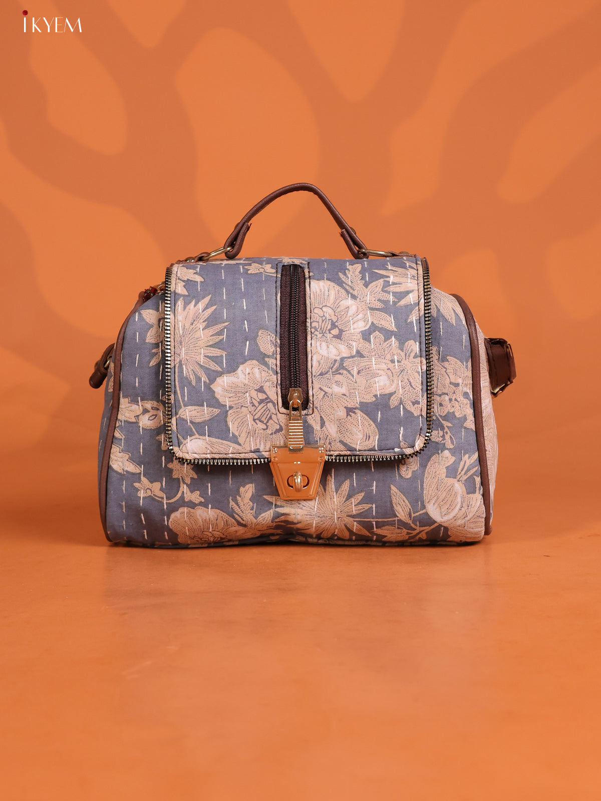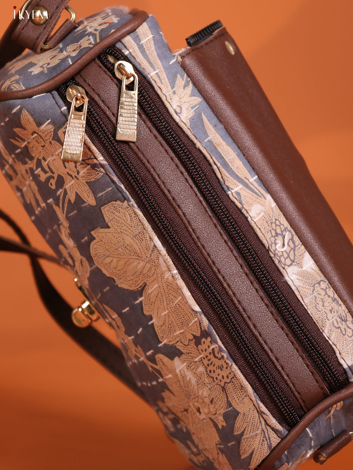 - Introducing our Floral Printed Gusset & Flap Leather Sling Bag with 3 compartments in Grey.