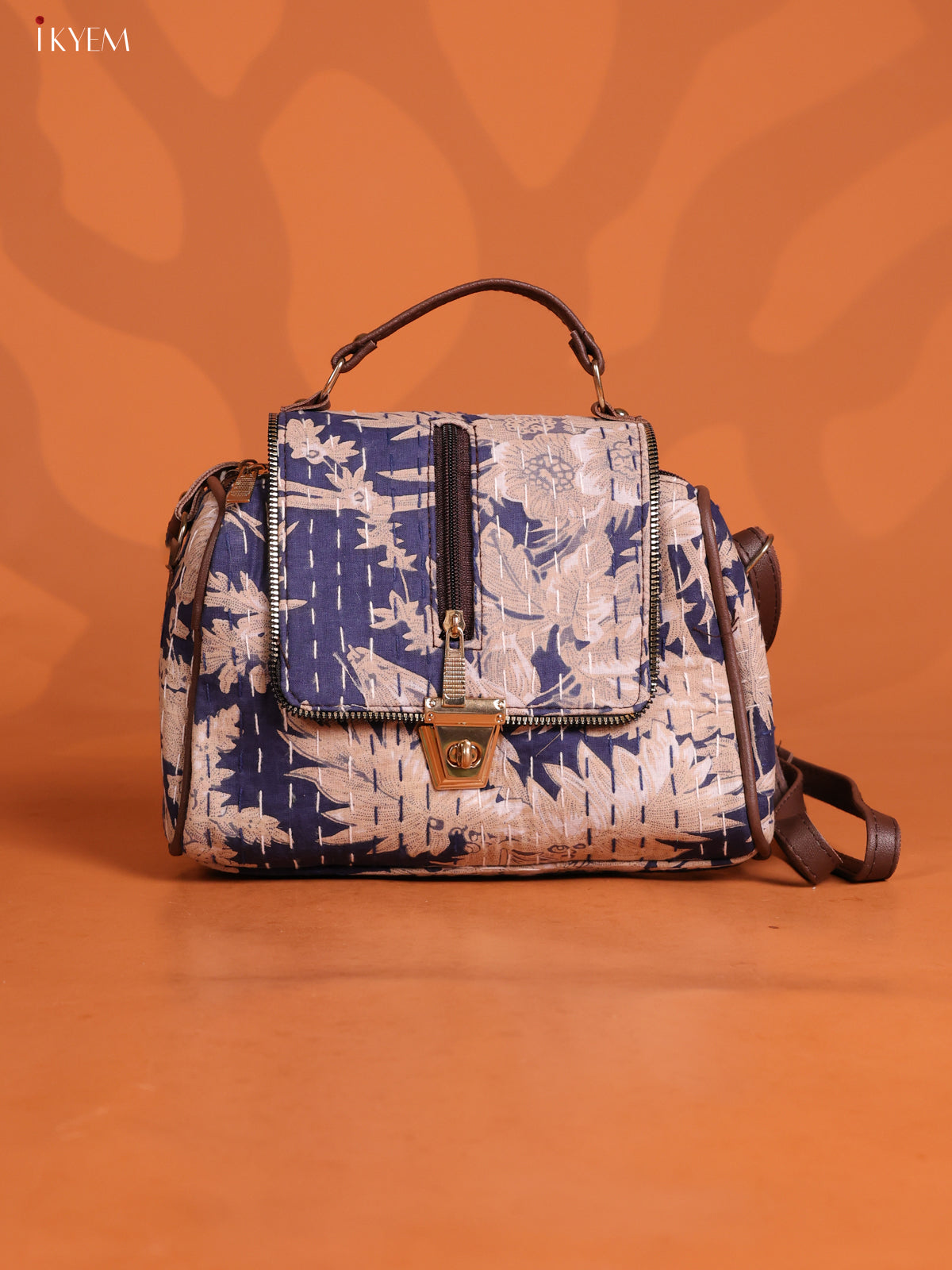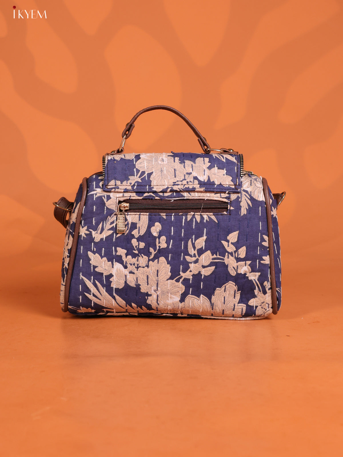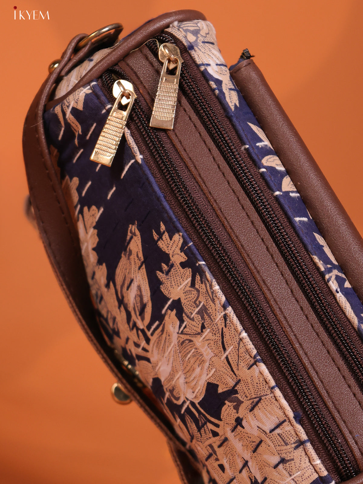 - Introducing our Floral Printed Gusset & Flap Leather Sling Bag with 3 compartments in Navy blue.