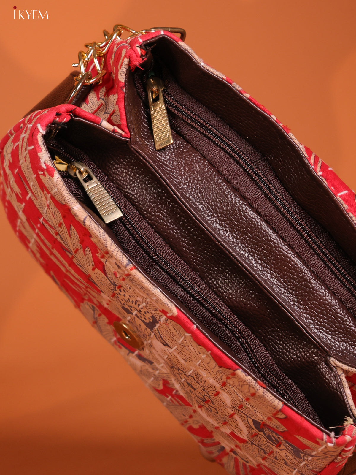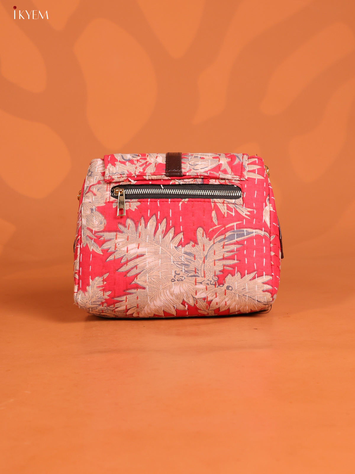 - Introducing our Floral Printed Flap Leather Sling Bag with 3 compartments in Pink.