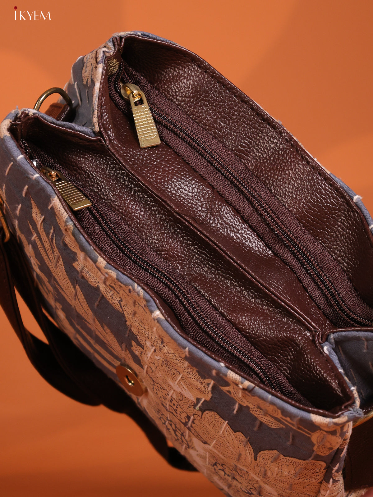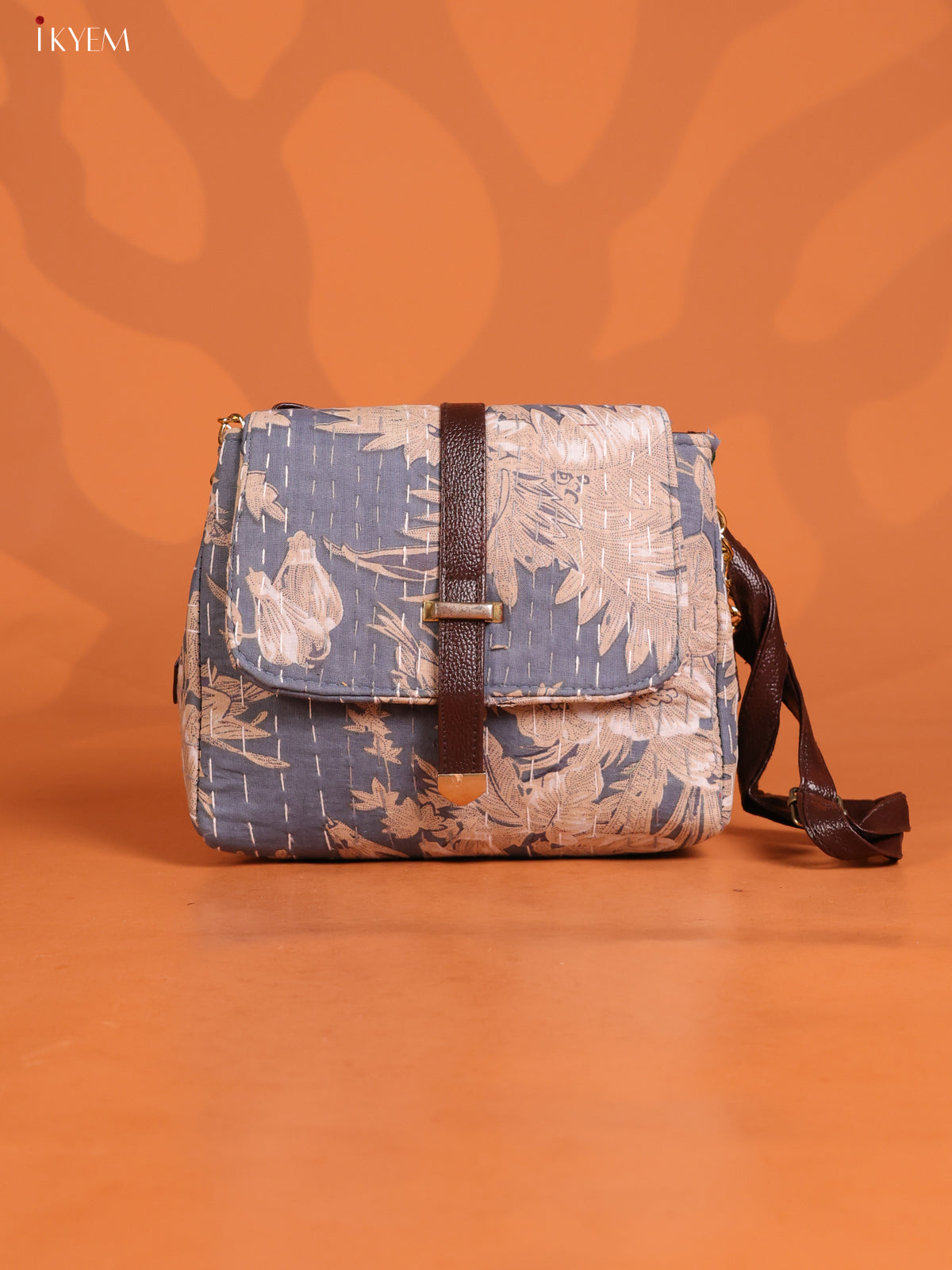 - Introducing our Floral Printed Flap Leather Sling Bag with 3 compartments in chic grey.