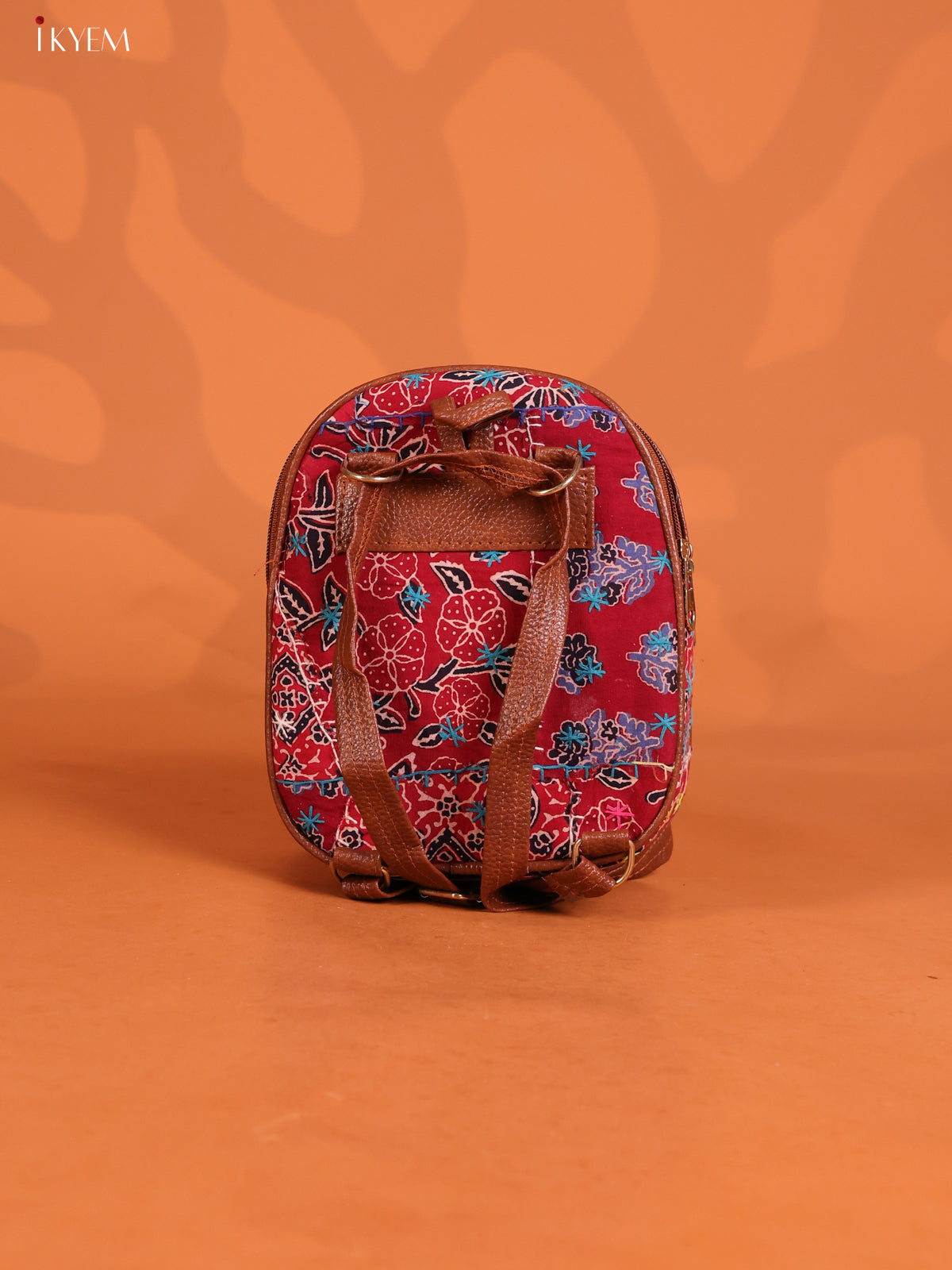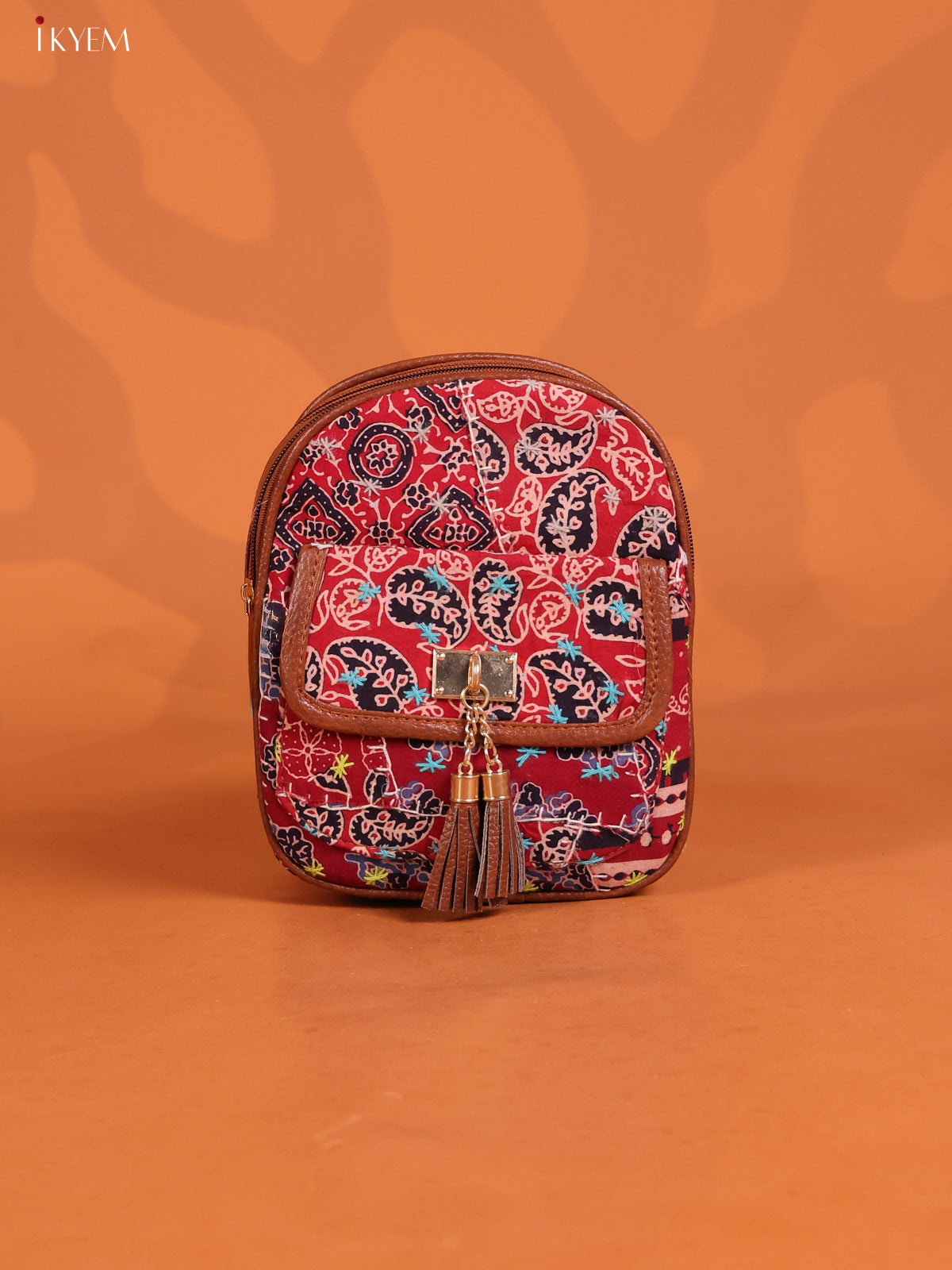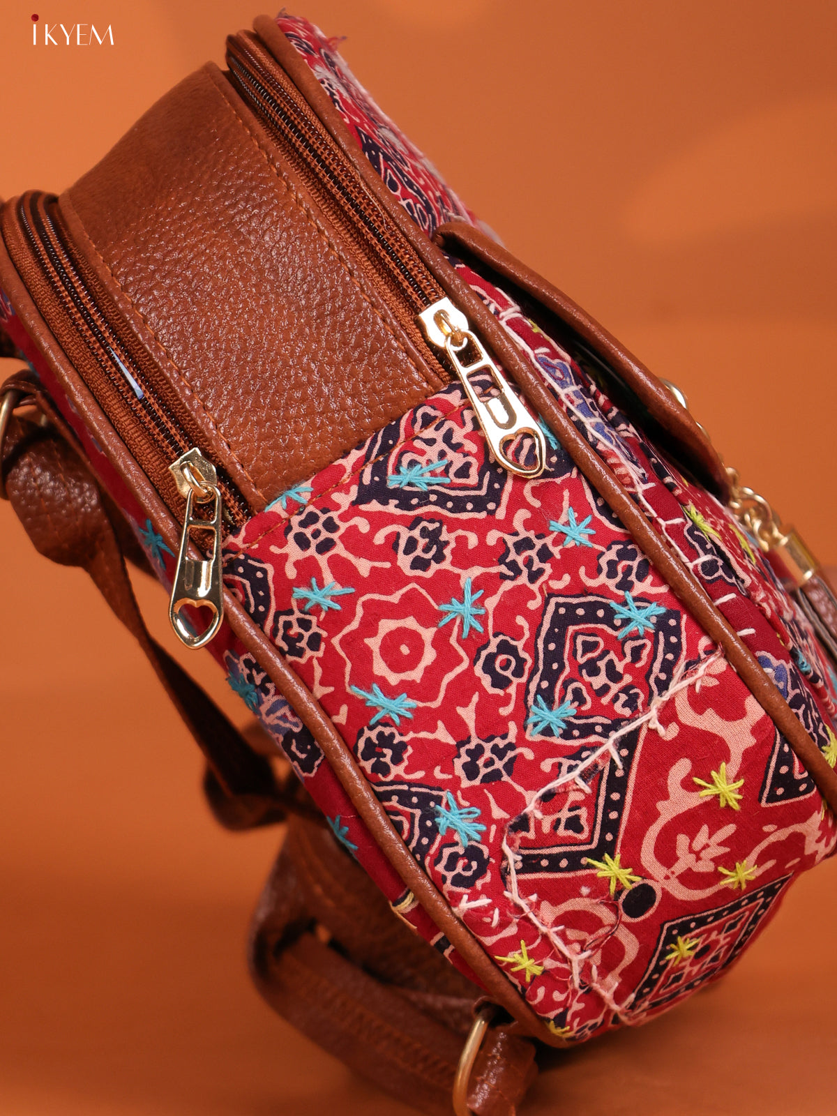 Embroidered Cotton Paisley Back Bag Flap with 2 Compartments - Red - KD26654
