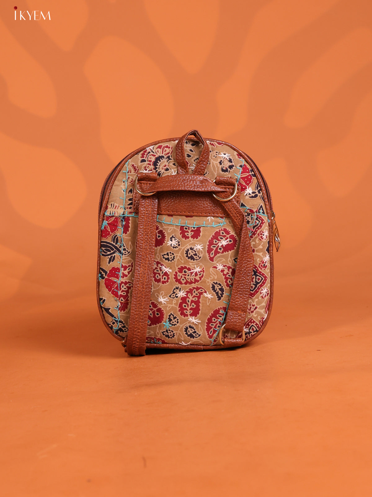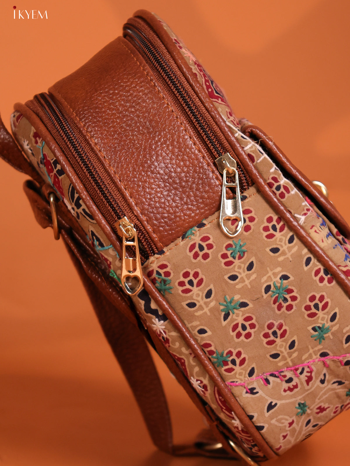 Embroidered Cotton Floral Back Bag Flap with 2 Compartments - Red - KD26655