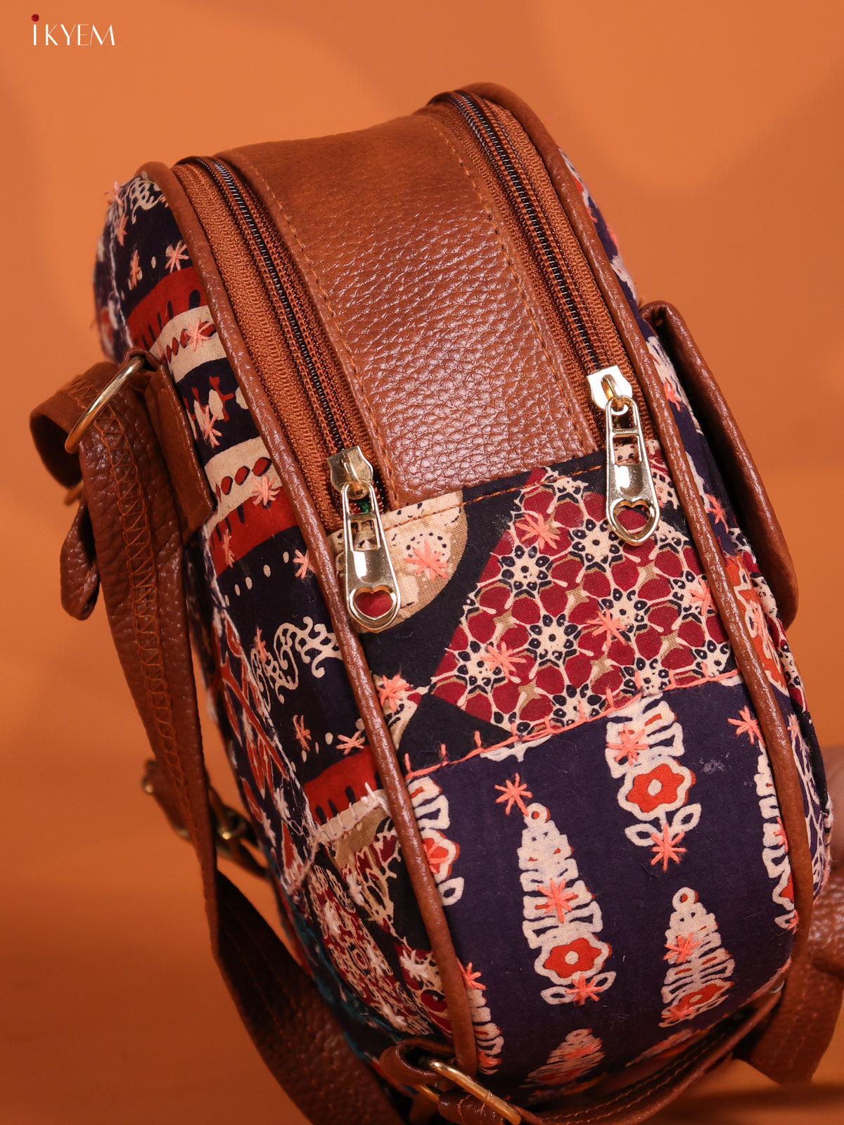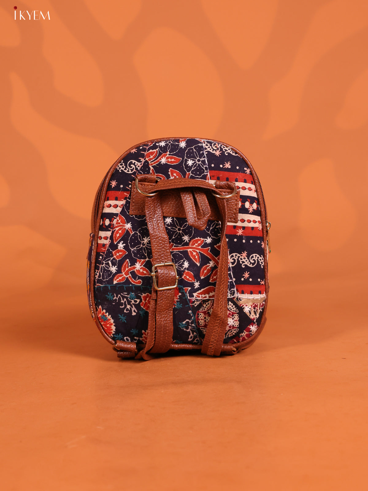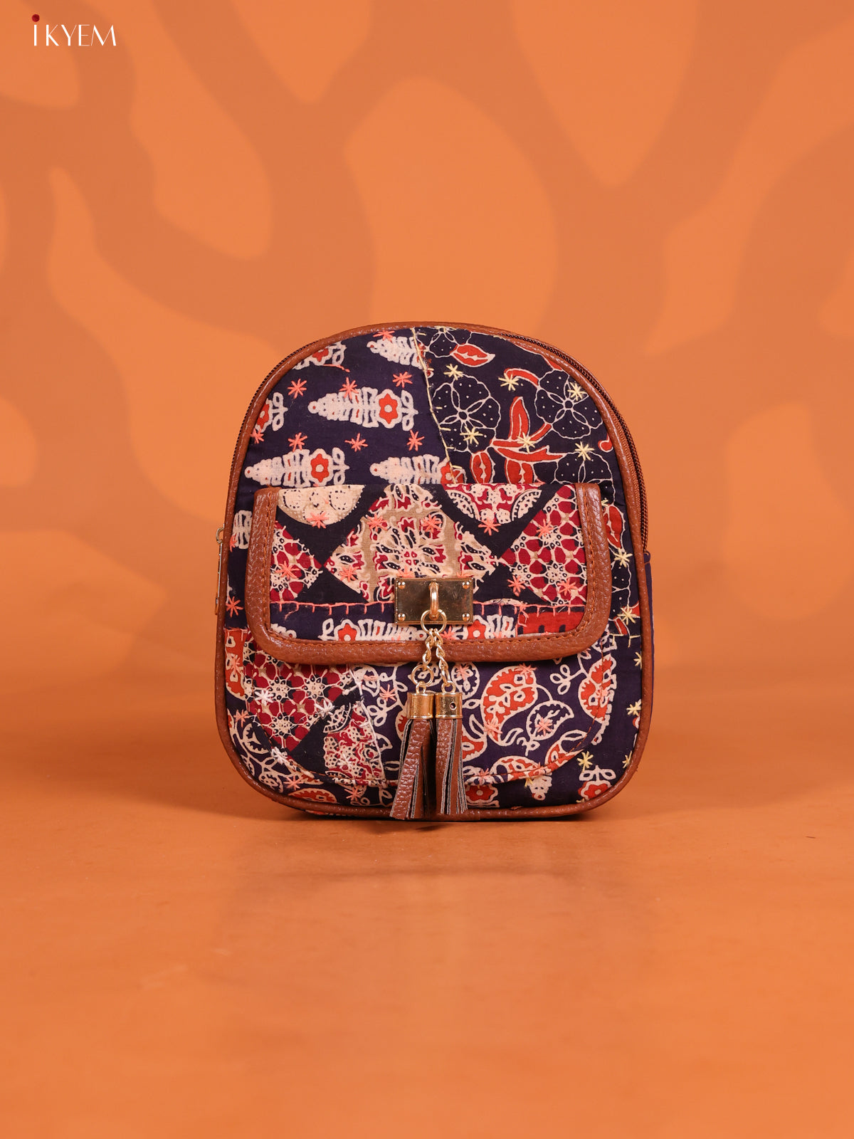 Embroidered Cotton Floral Back Bag Flap with 2 Compartments - Navy Blue - KD26656