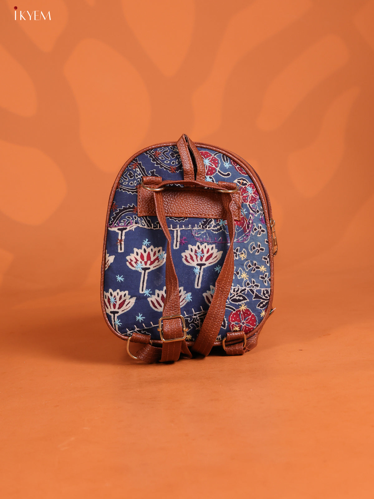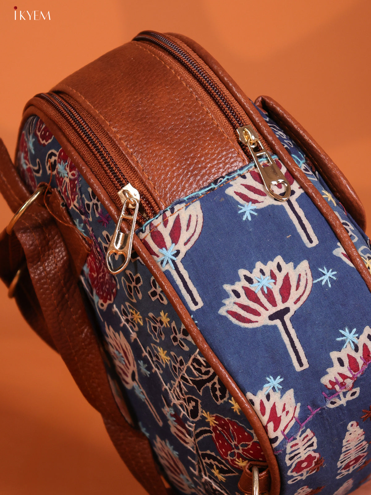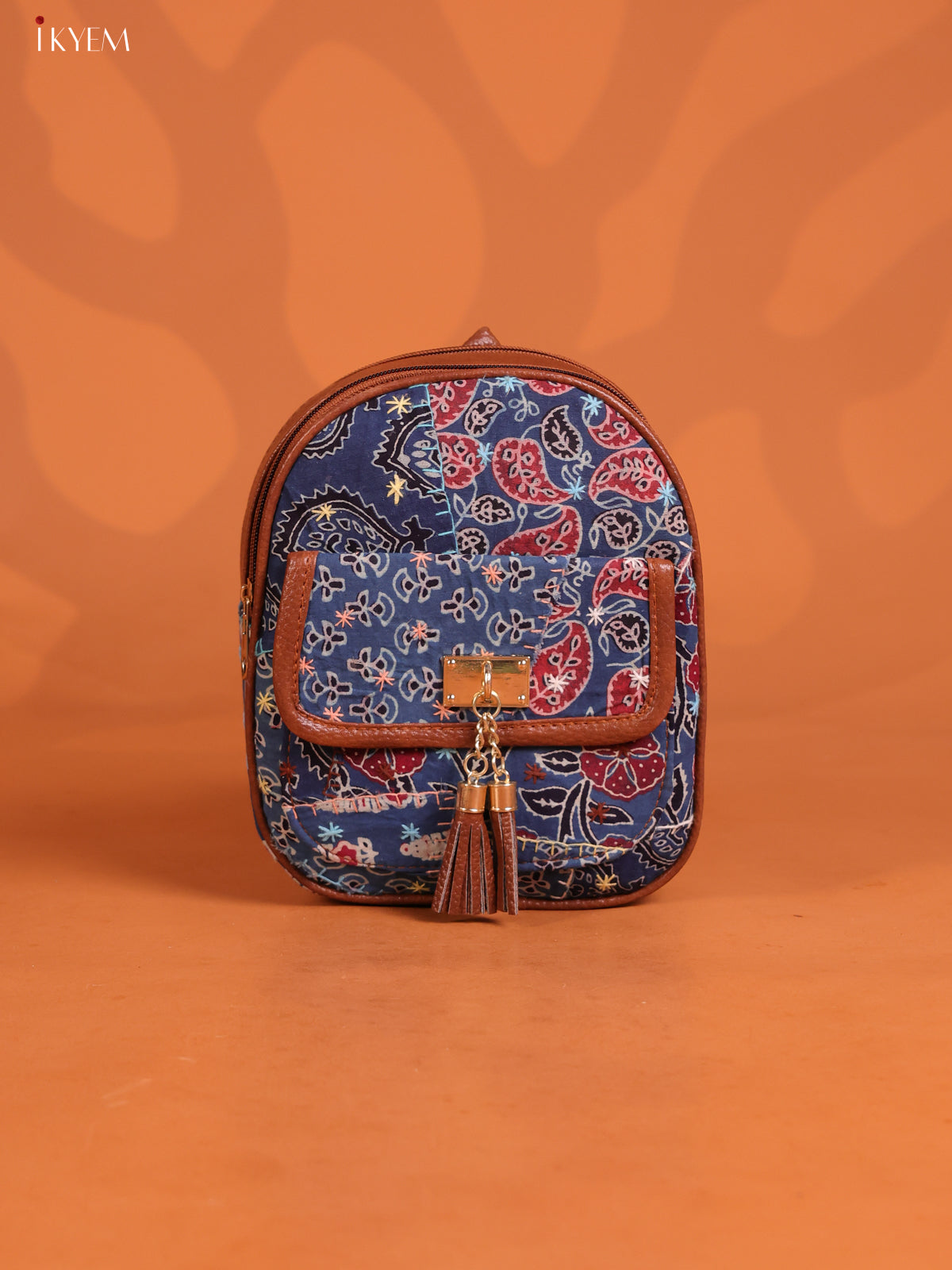 Embroidered Cotton Paisley Back Bag Flap with 2 Compartments - Blue - KD26659
