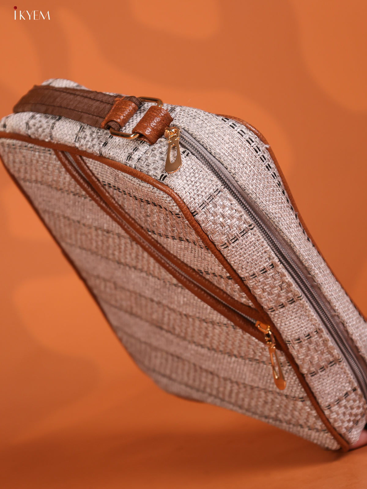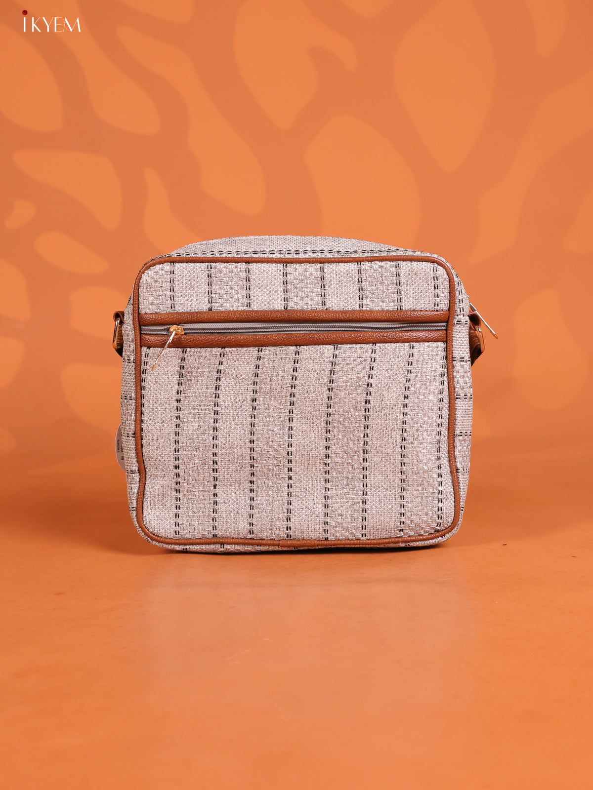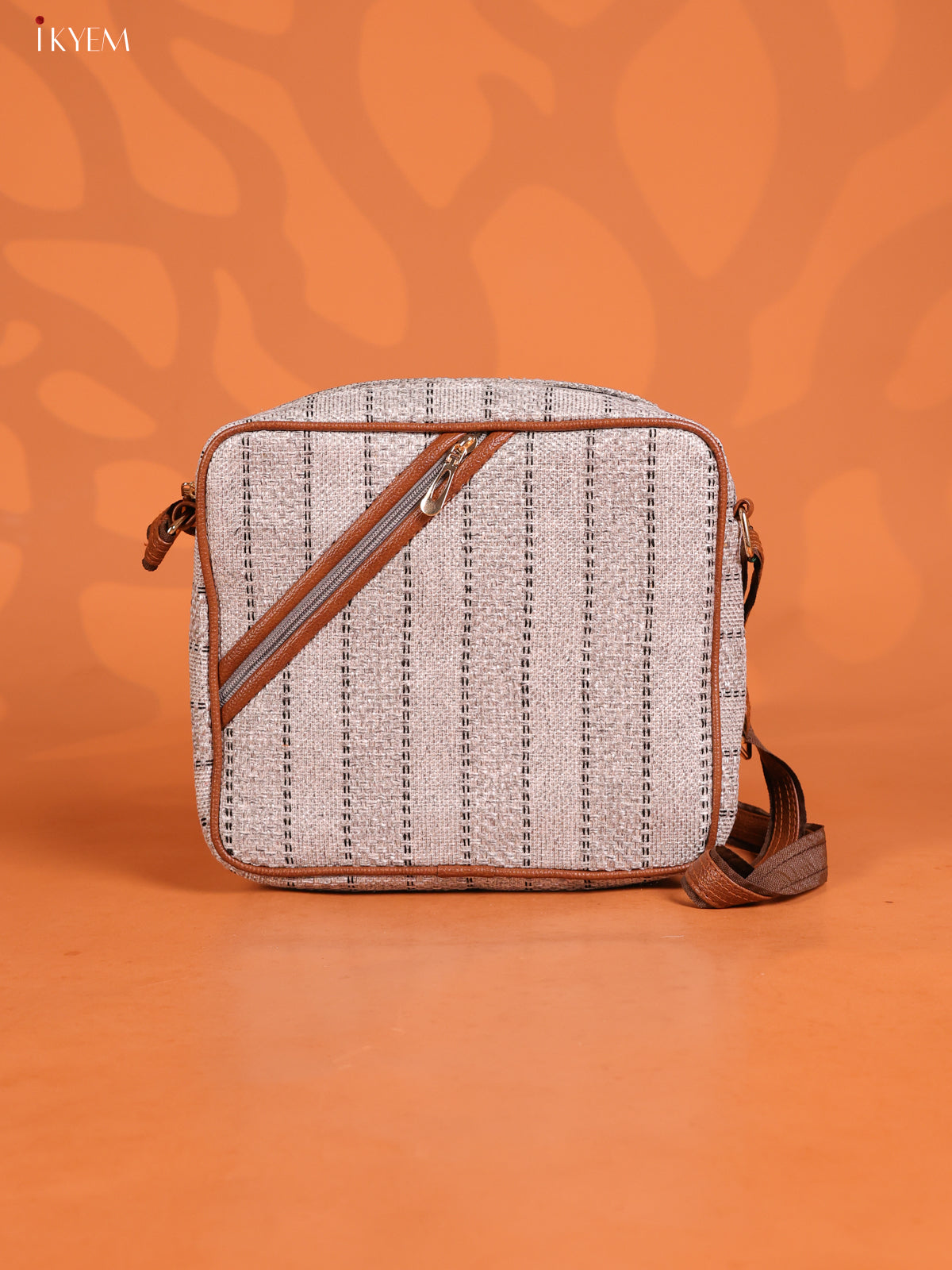 Jute Travel Buddy Leather Sling Bag with 3 Compartments - Grey - KD26720