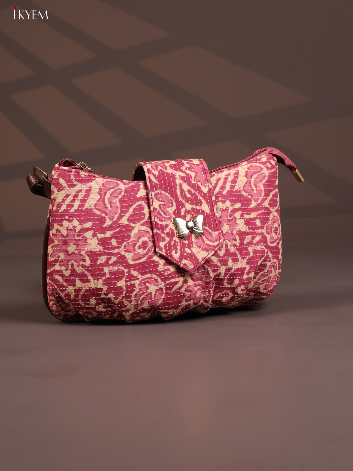 - Stay organized with our Floral Cotton Leather Sling bag.