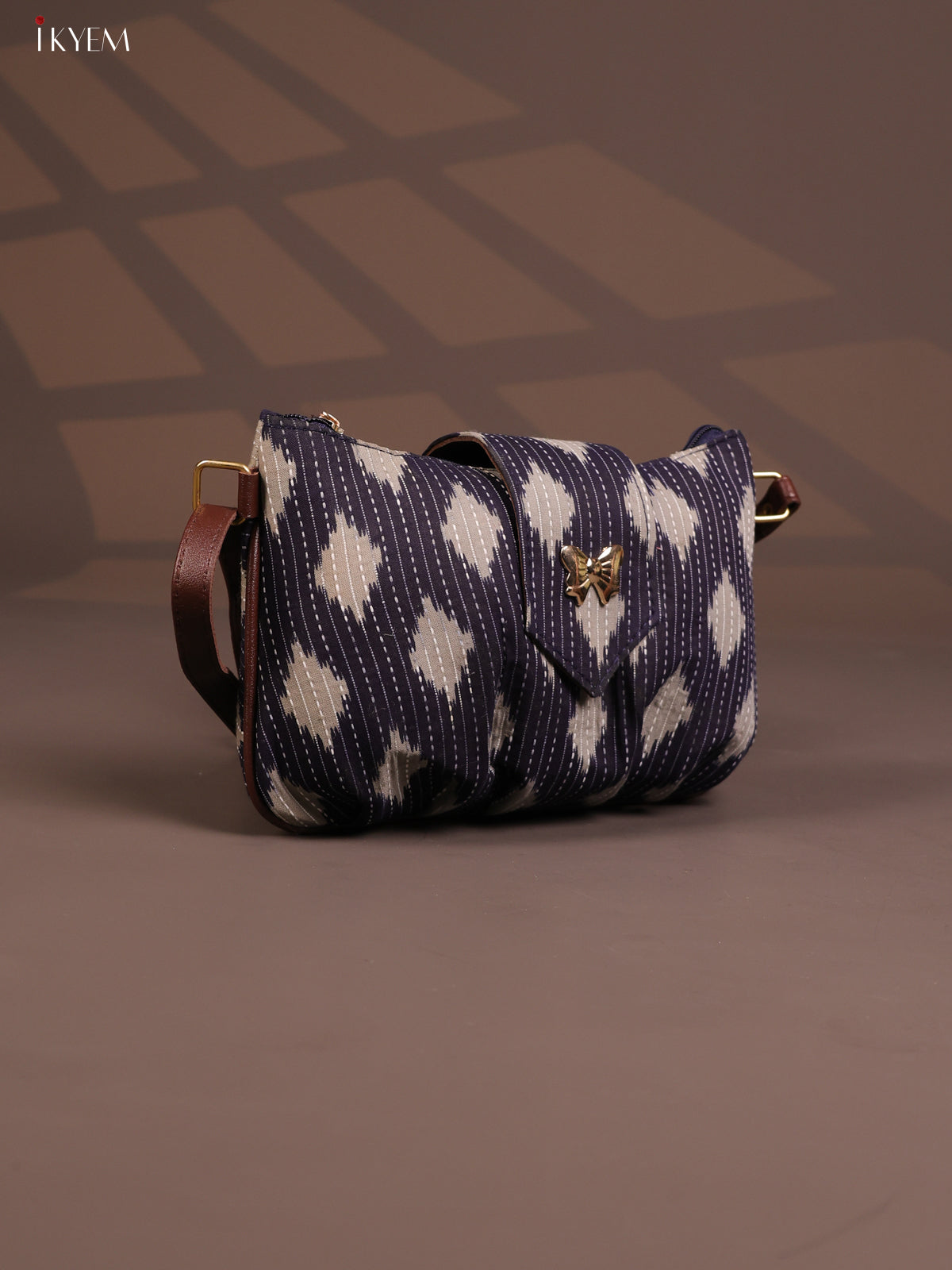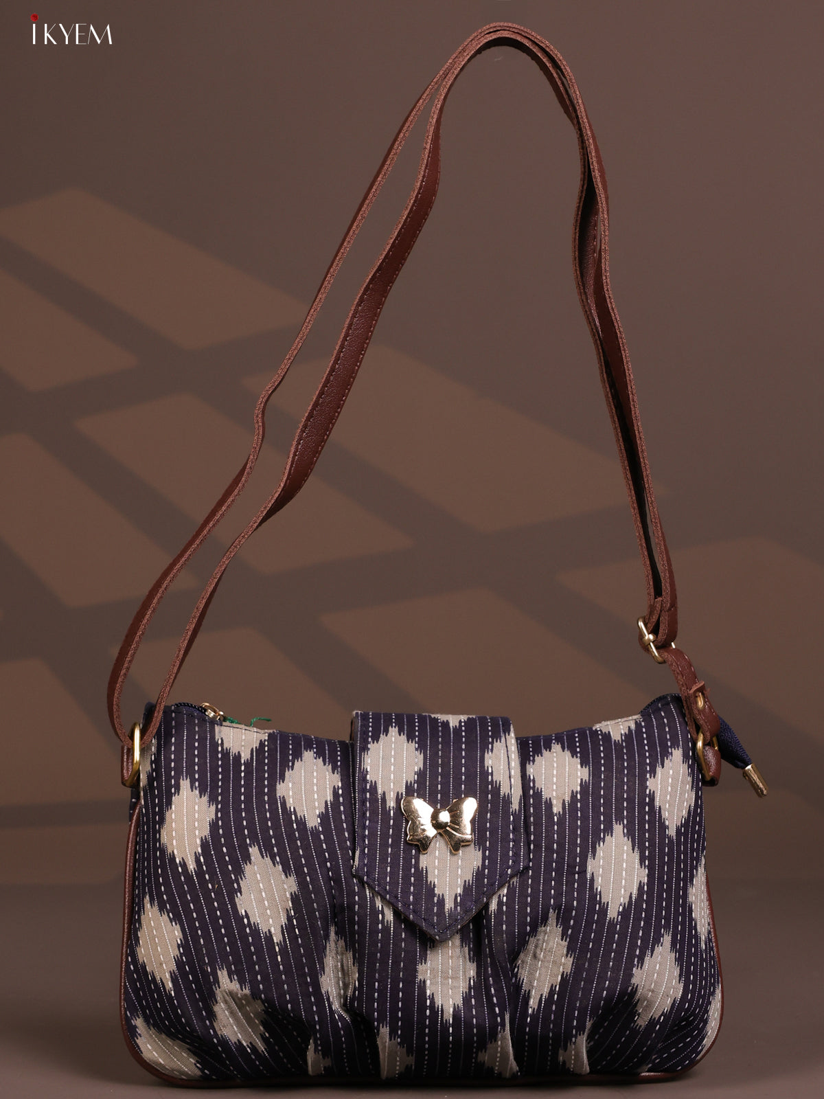 - Stay organized with our Ikat Cotton Leather Sling bag.