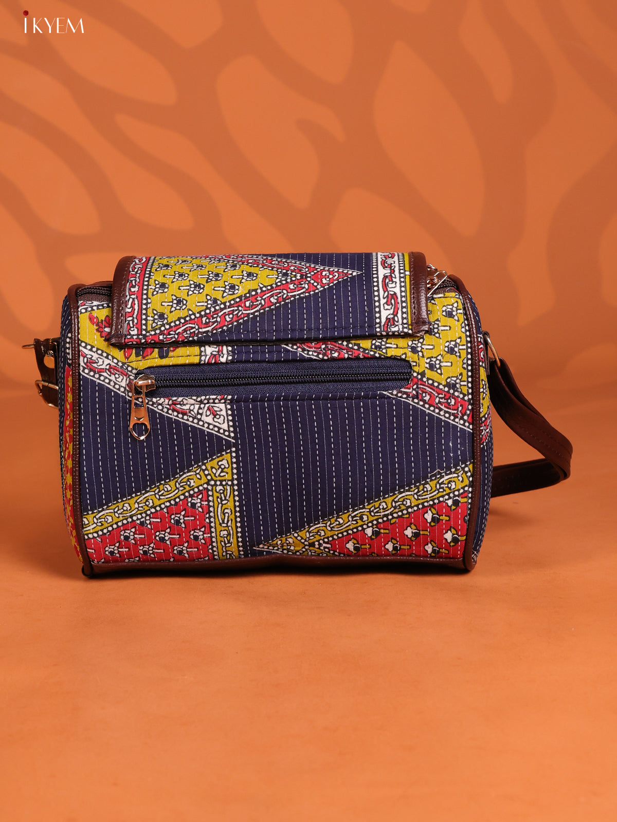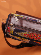 Ikat Printed Leather Sling Bag with 3 Compartments -indico Blue - KD26886
