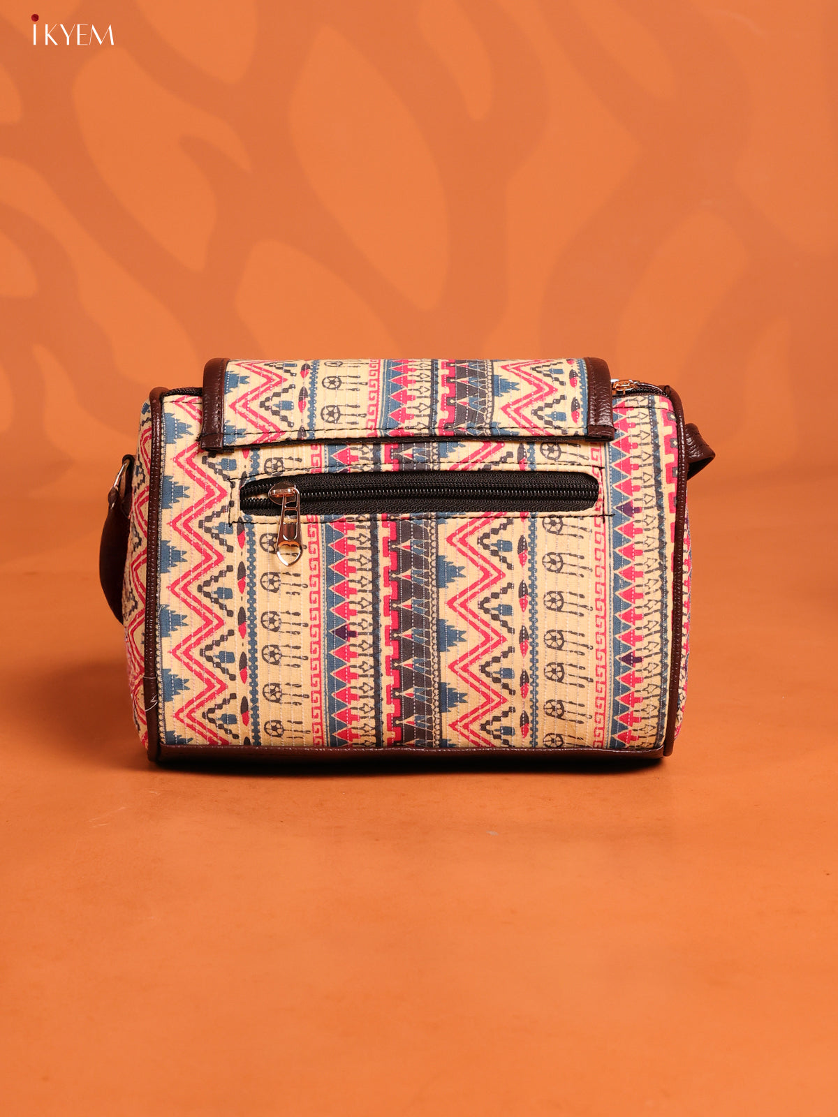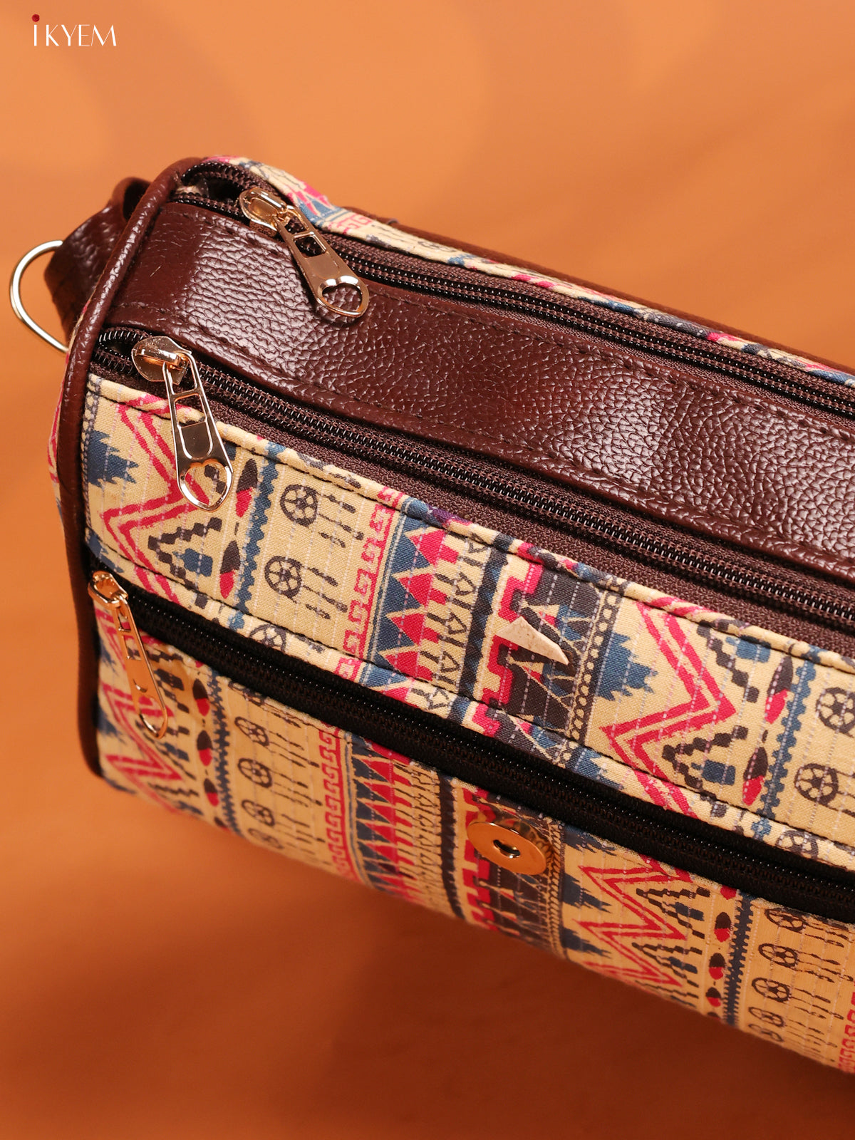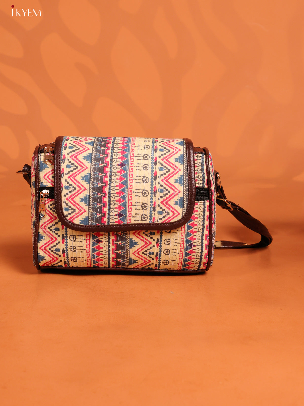 Ikat Printed Leather Sling Bag with 3 Compartments - Multicolour - KD26888