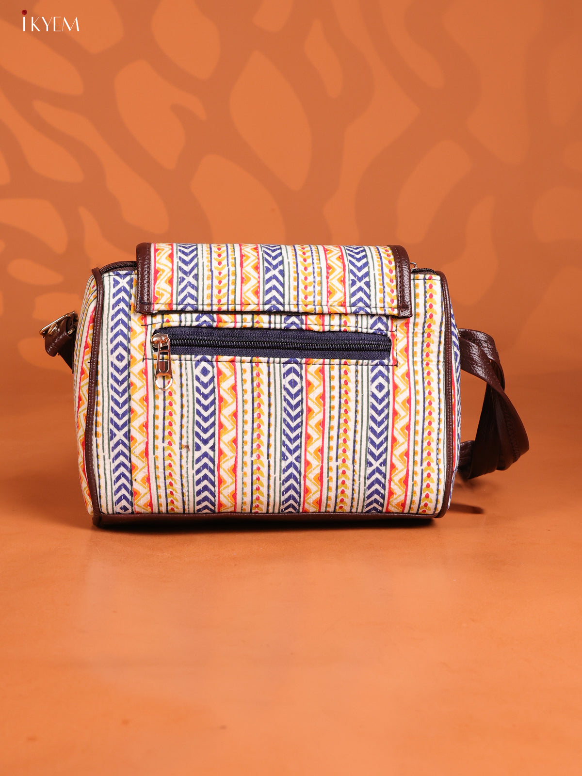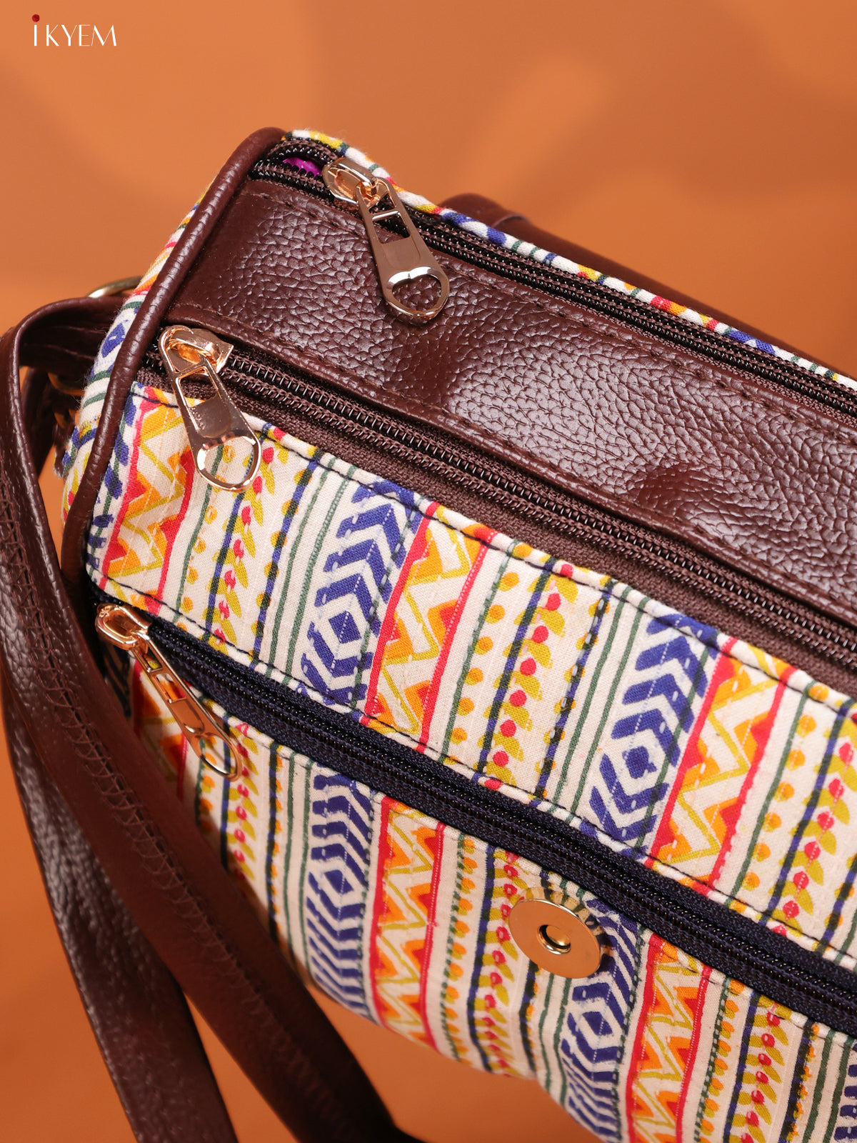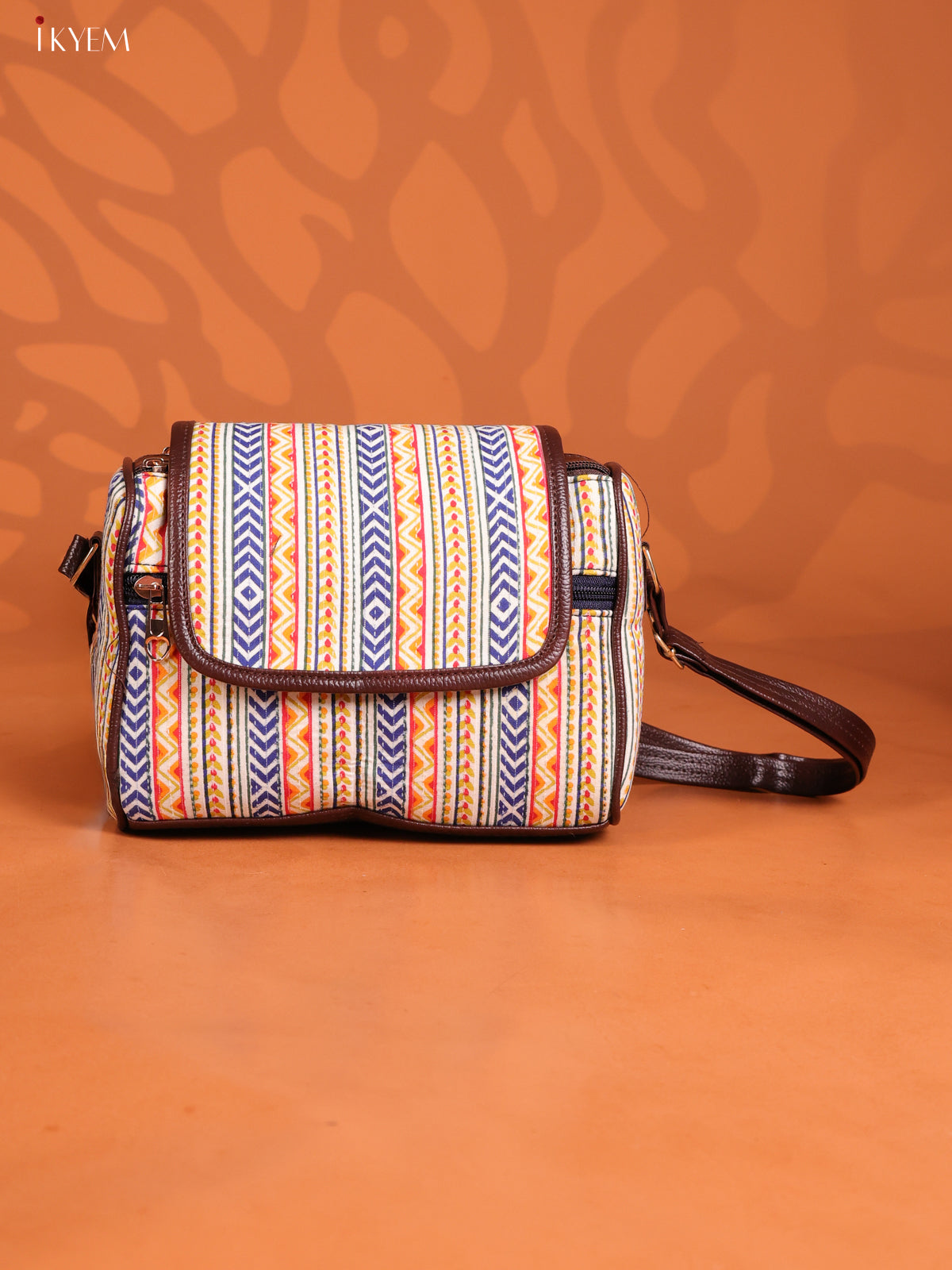Ikat Printed Leather Sling Bag with 3 Compartments - Multicolour - KD26889