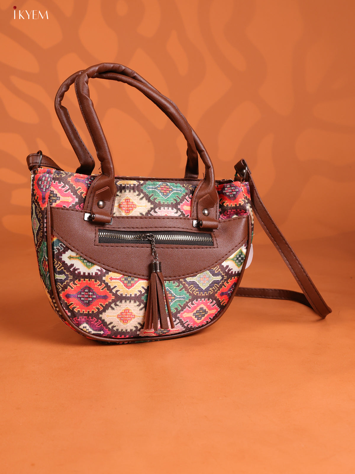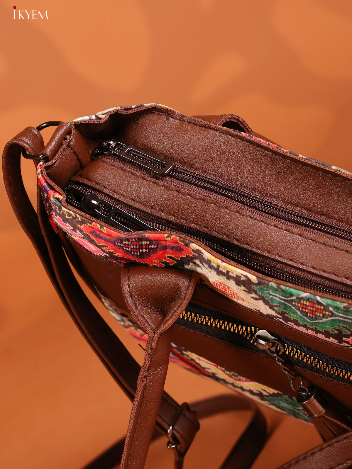 Ikat Printed Leather Sling Bag with 4 compartments - Multicolour - KD26899