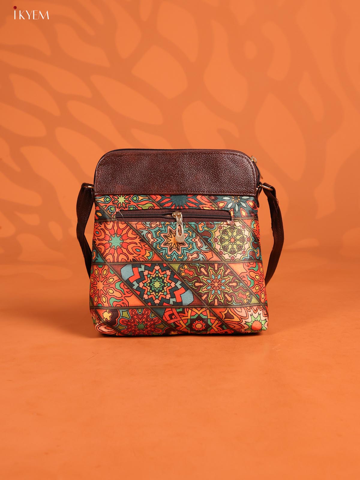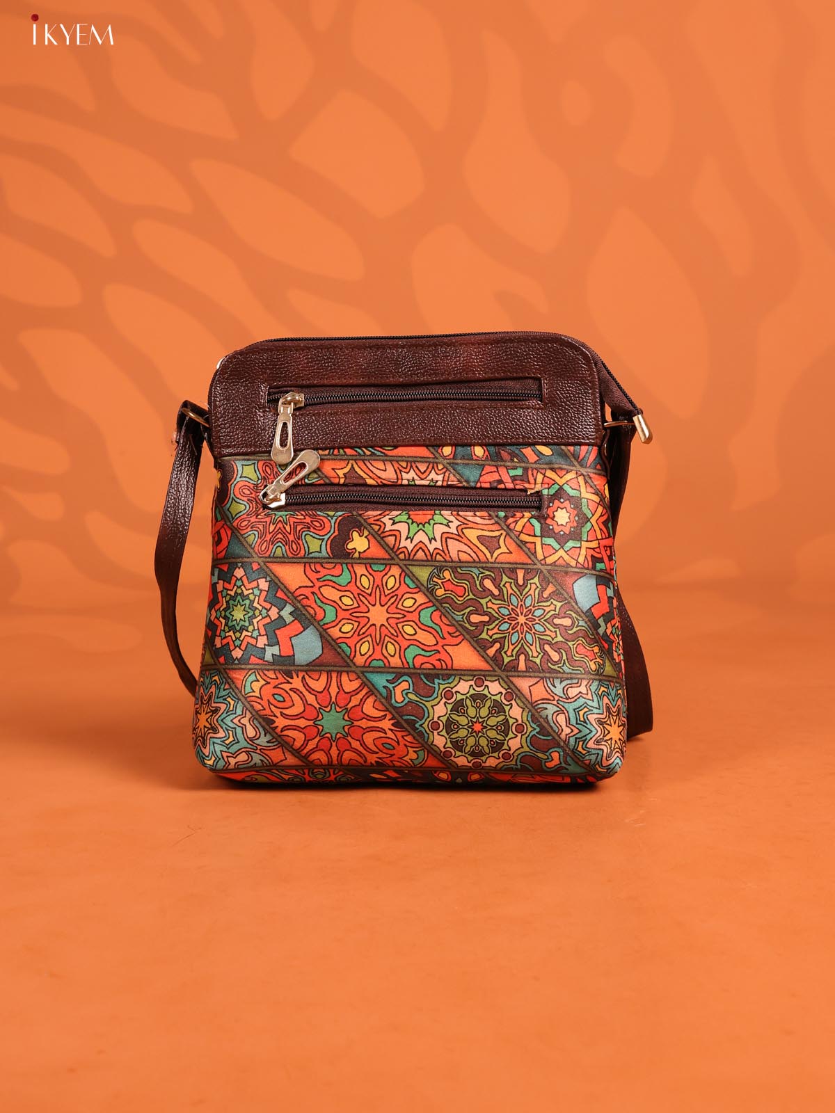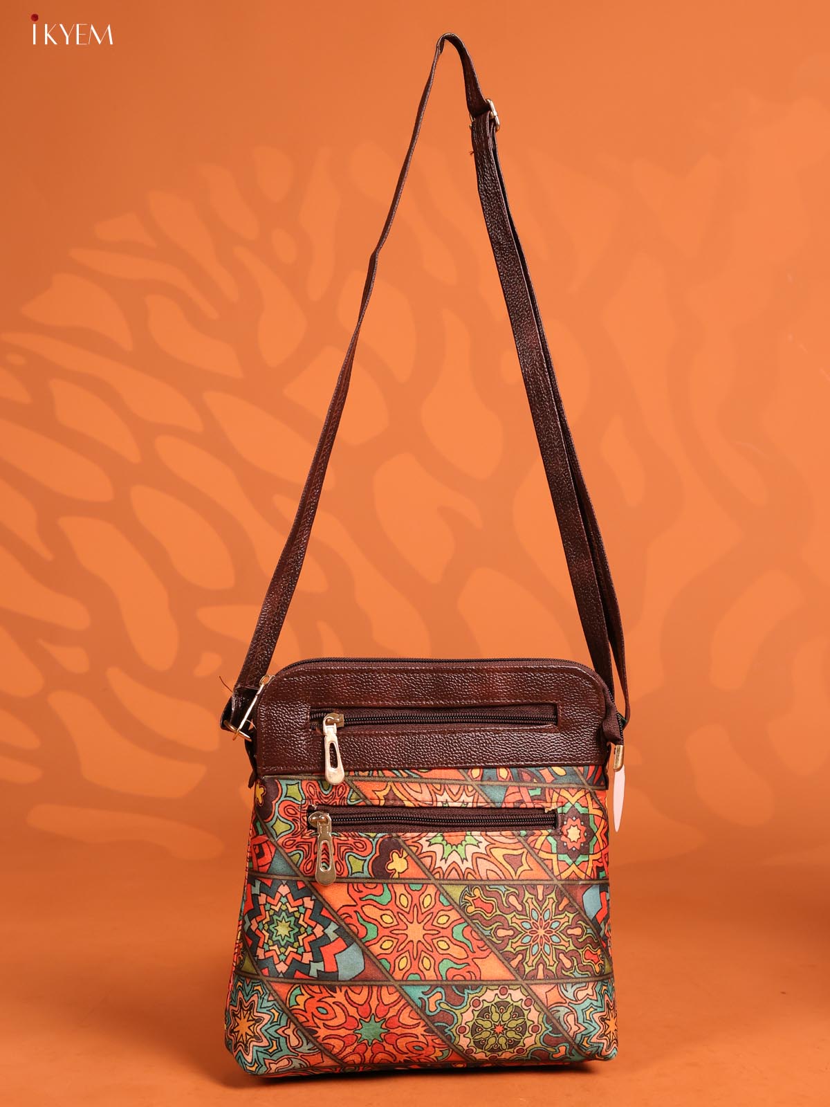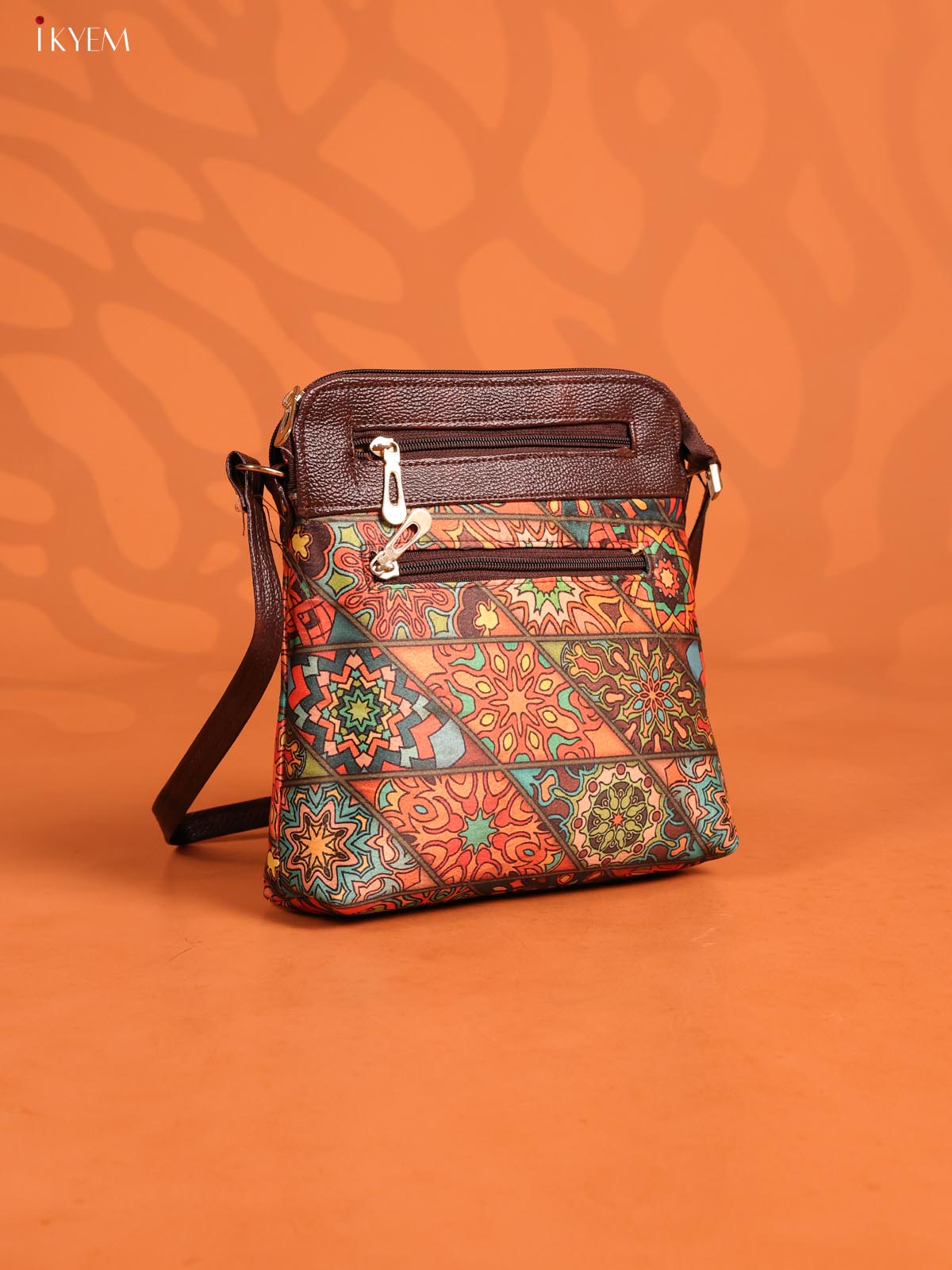 Geometric Leather Sling Bag with 4 Compartments- Multicolour - KD26968
