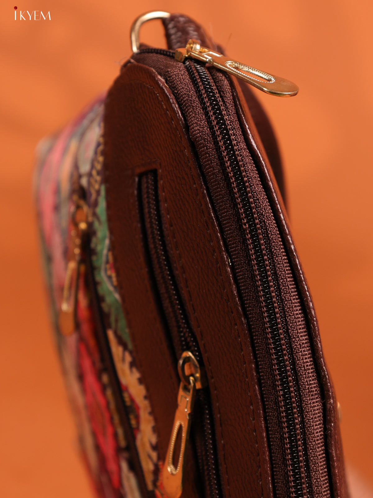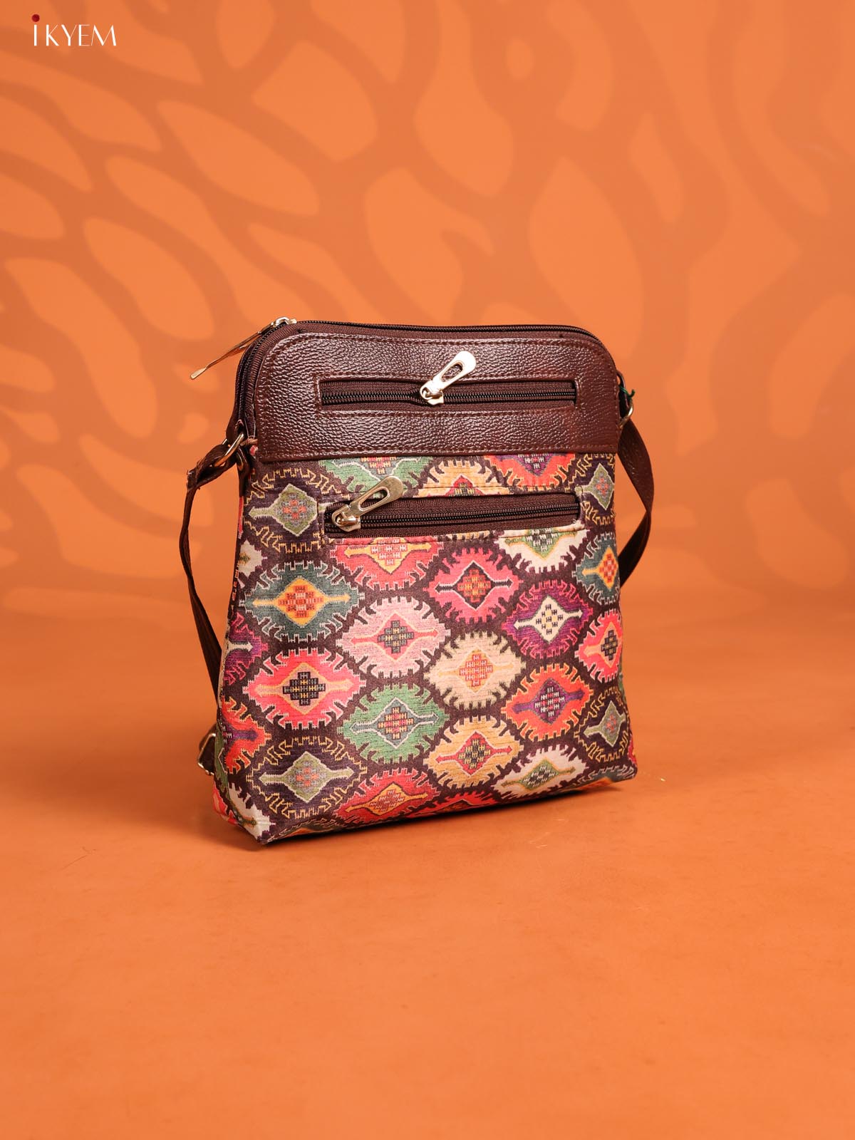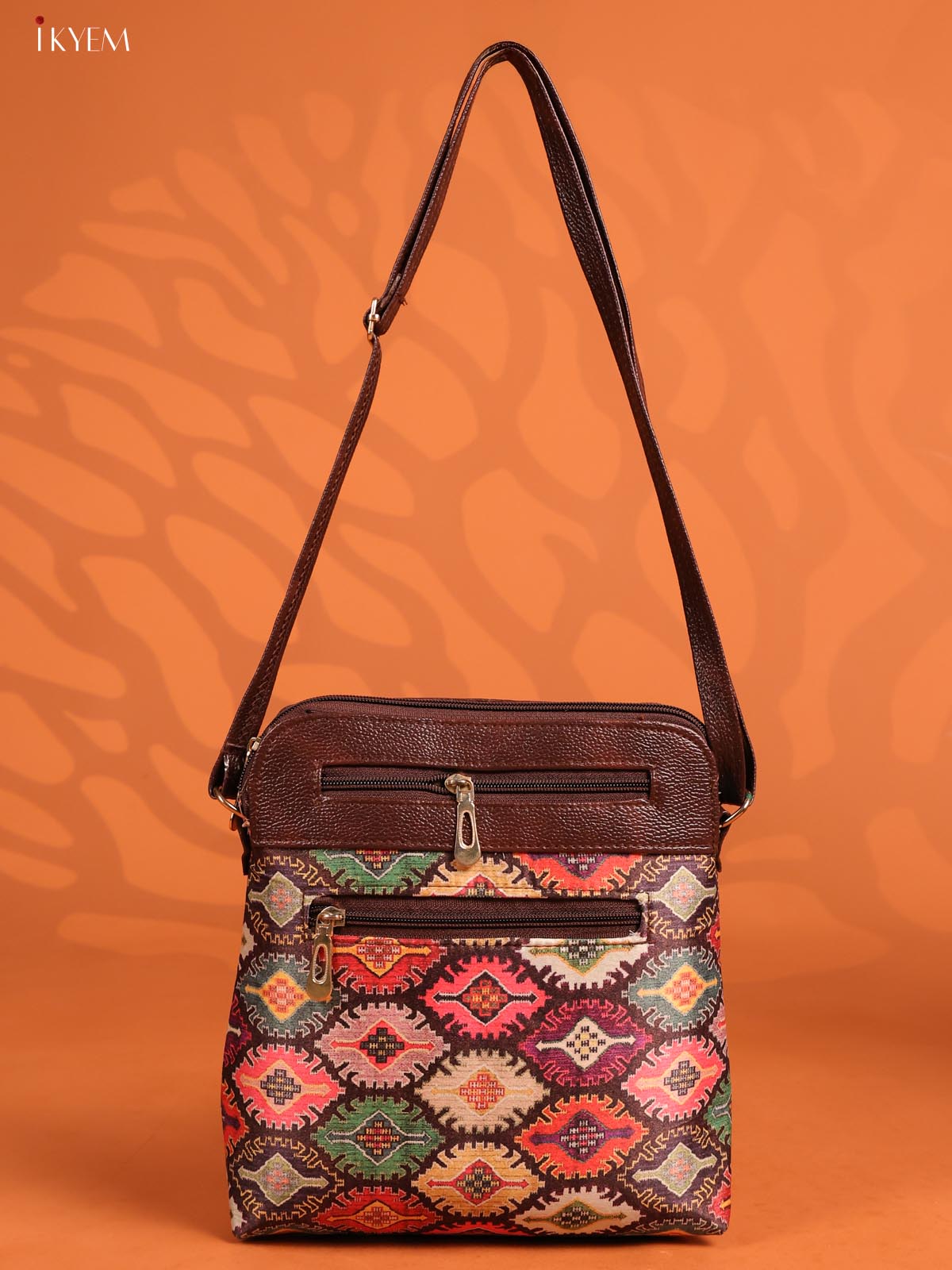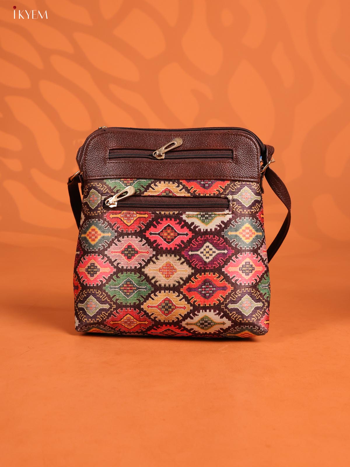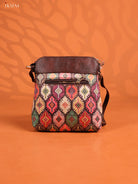 ikat Leather Sling Bag with 4 Compartments - Multicolour - KD26969