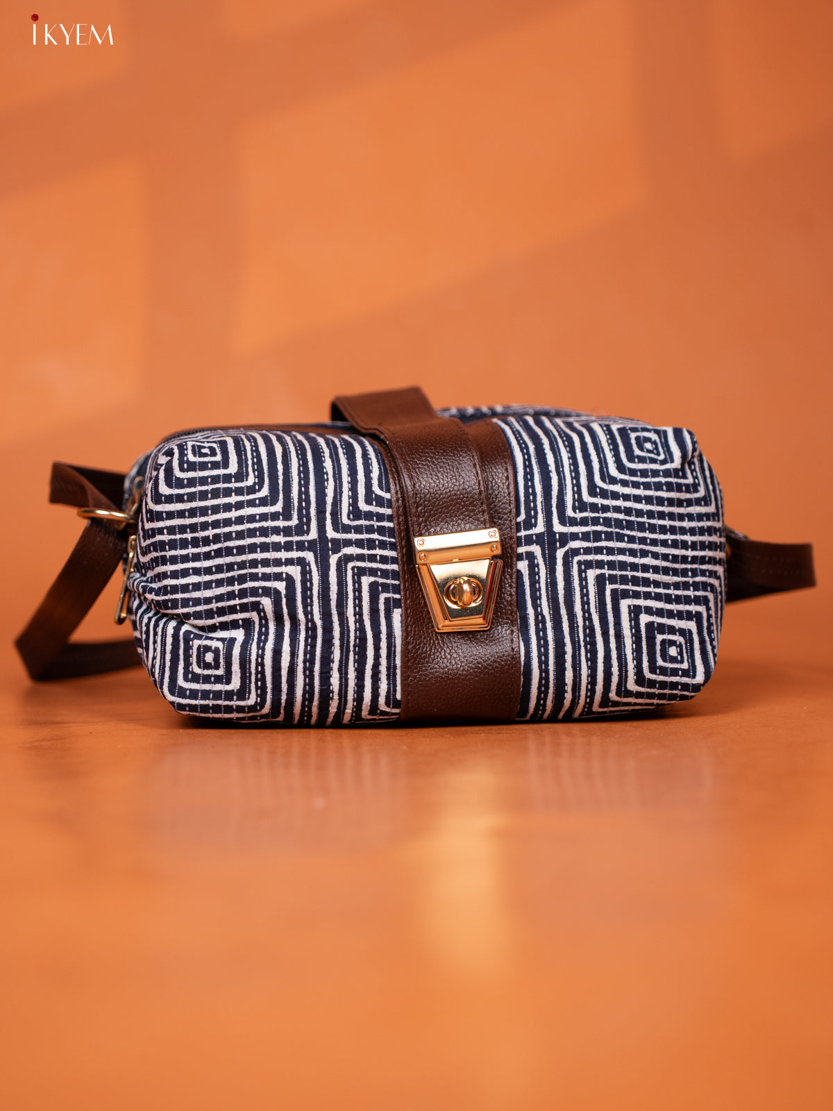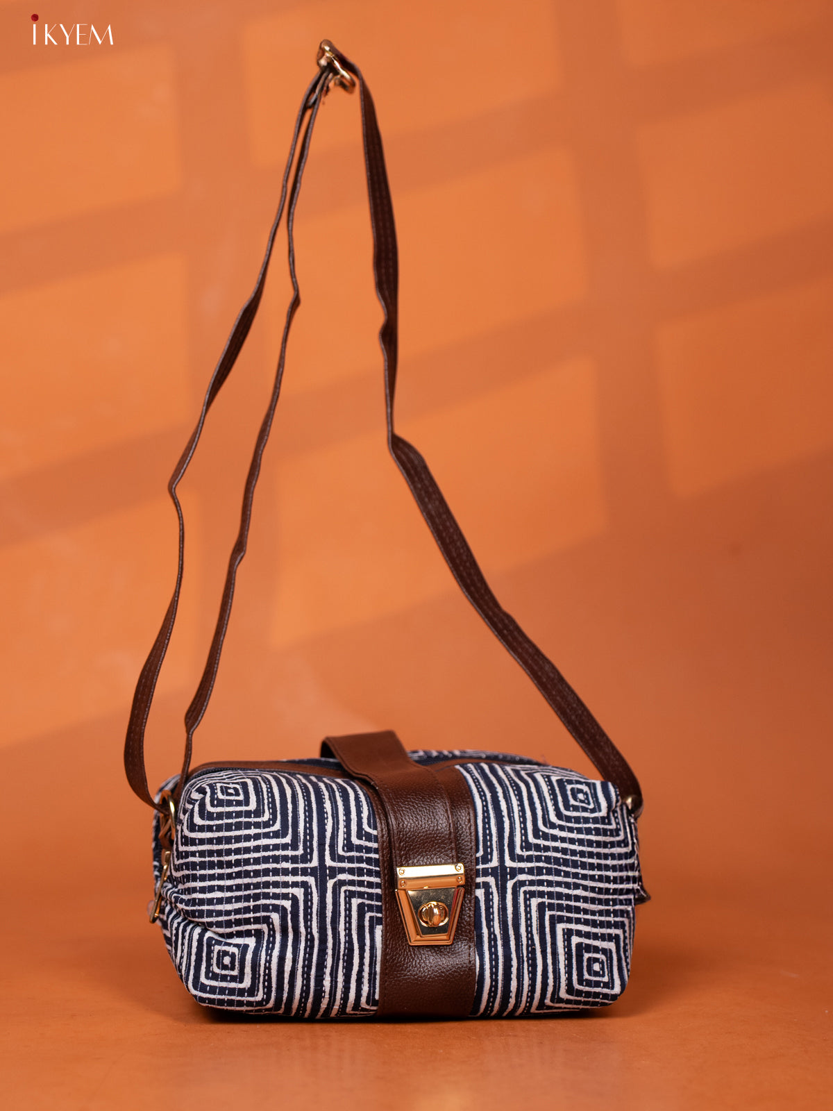 - Stay organized with our Geometric Cotton Leather Sling bag.