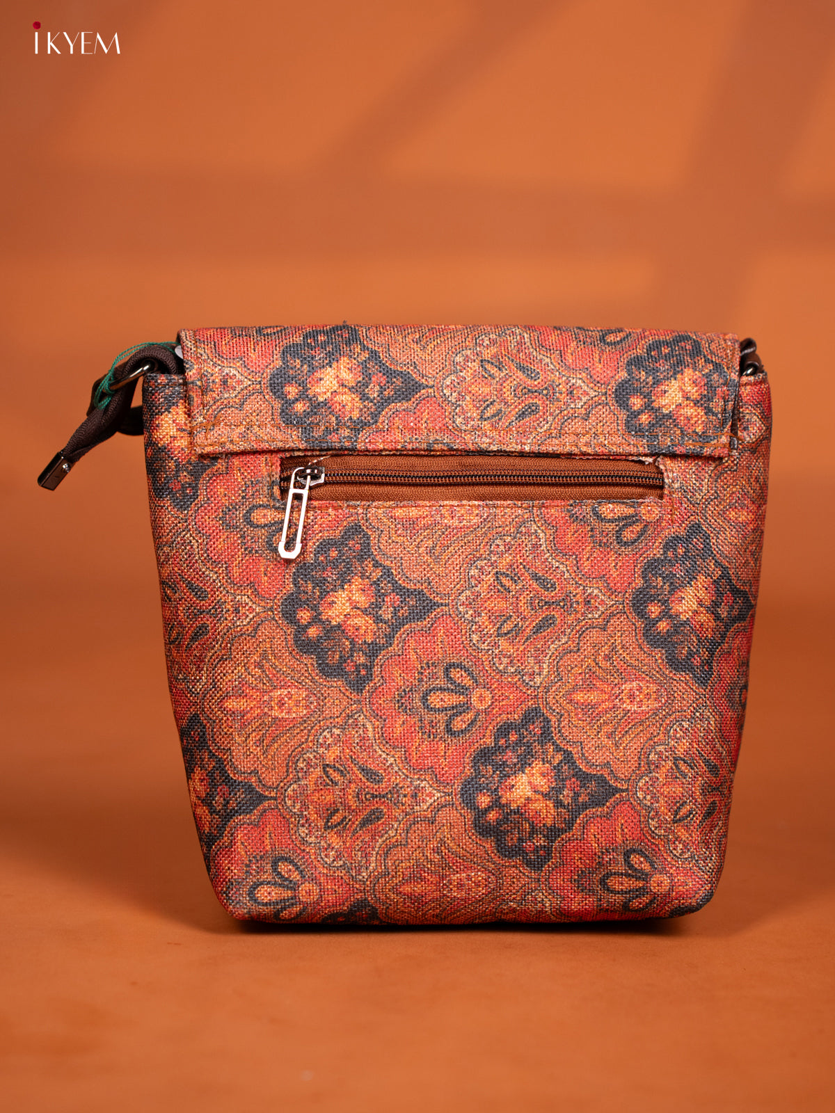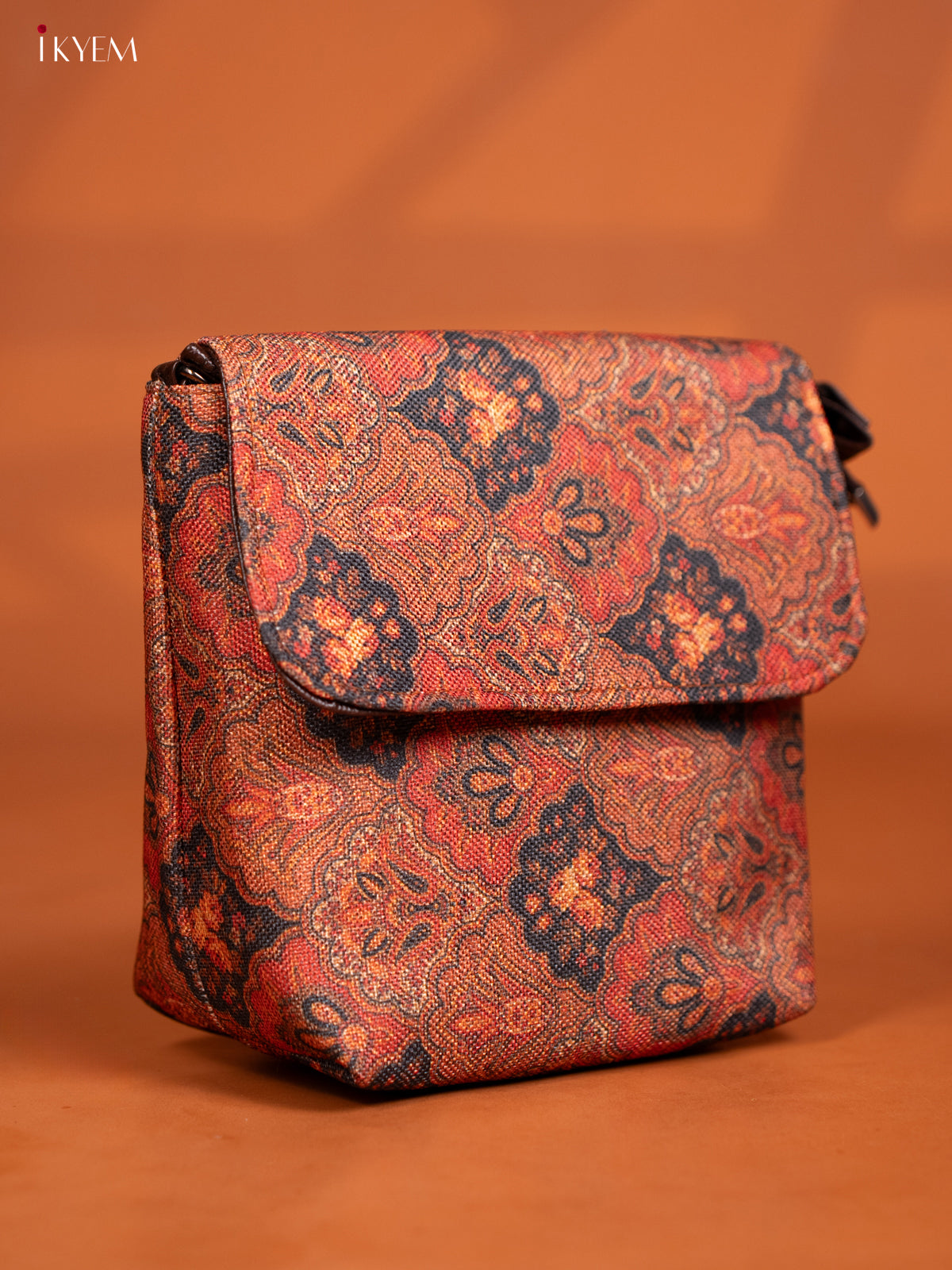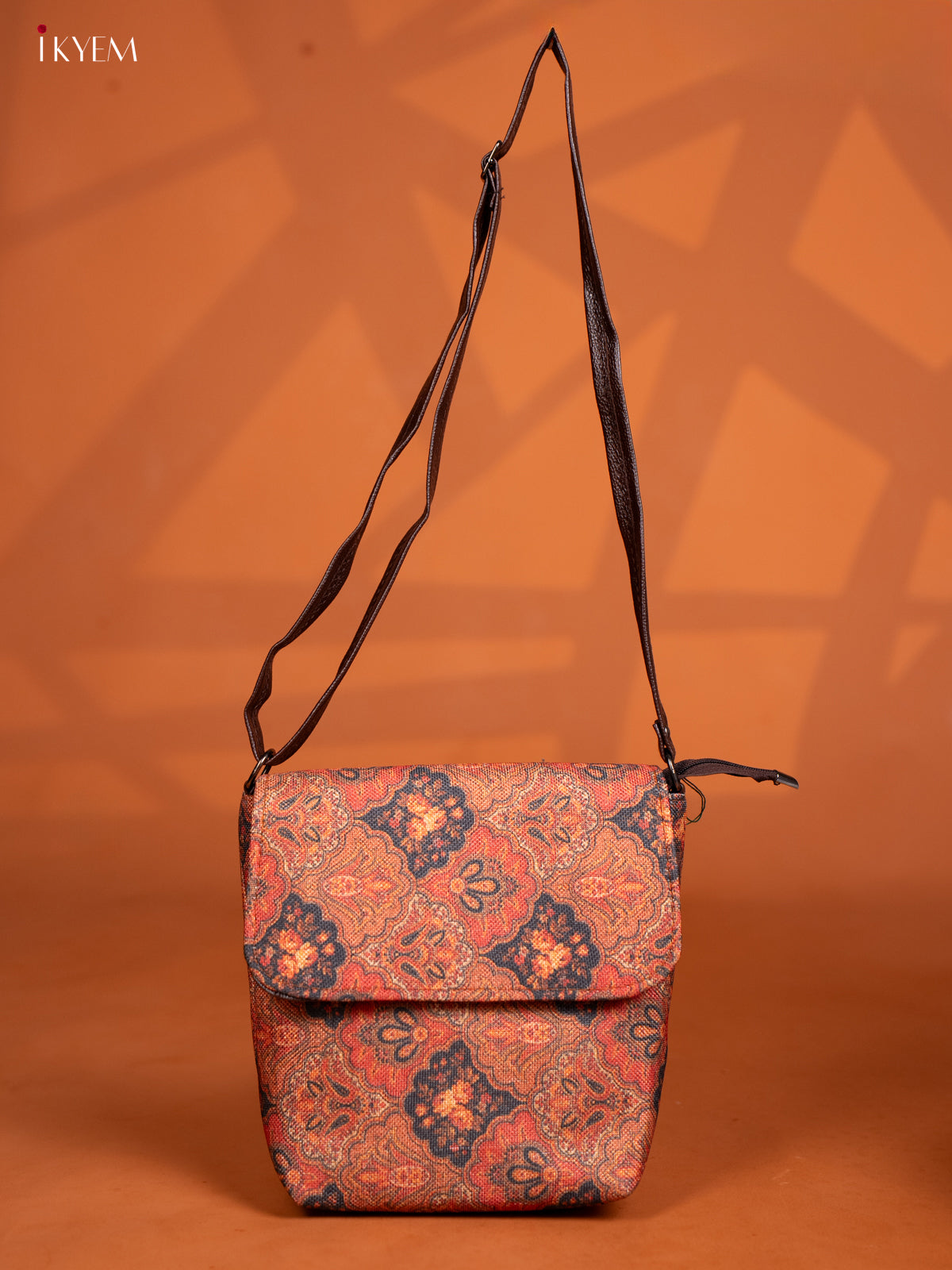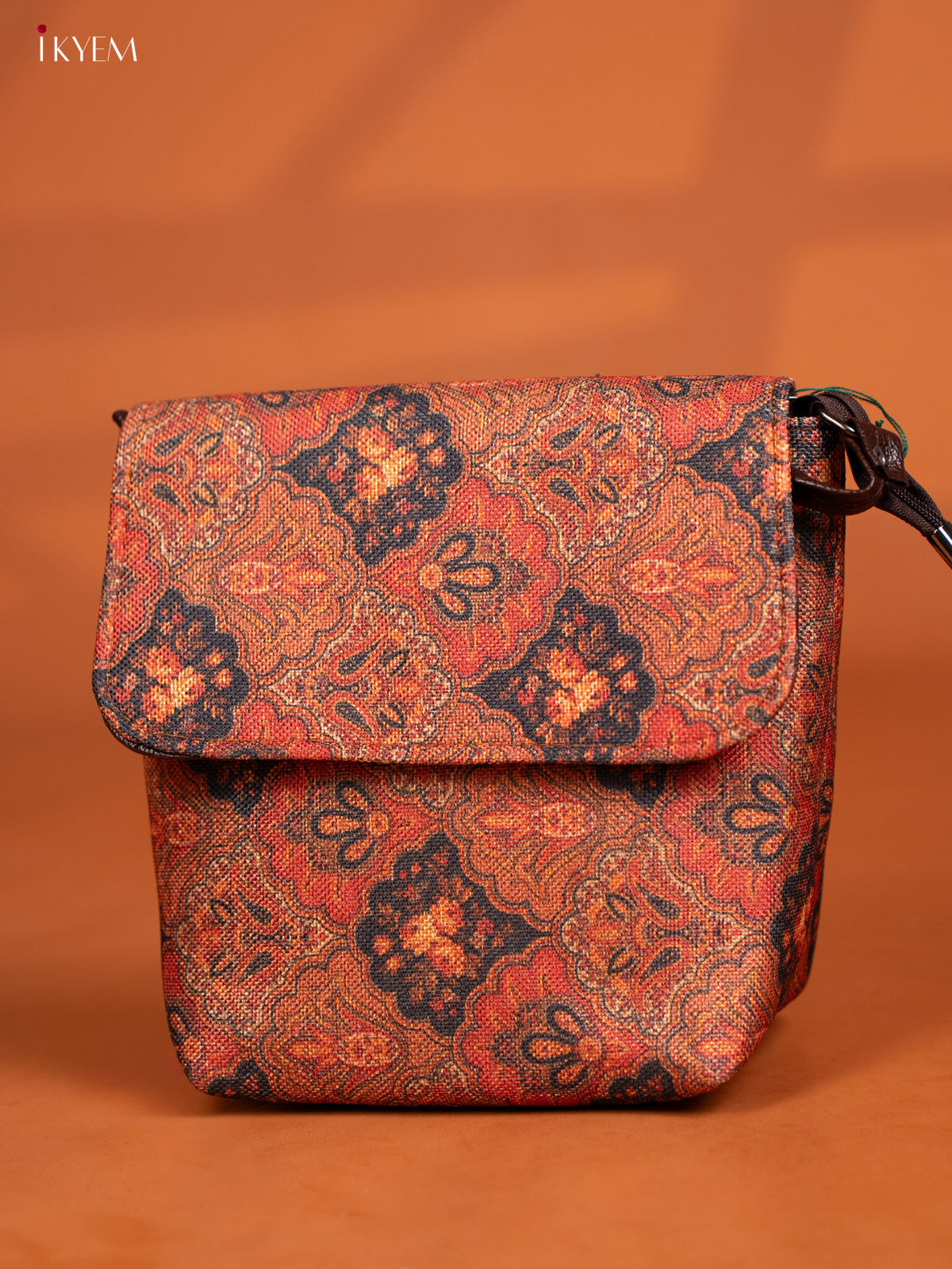 Semi Jute Leather Flap Sling Bag - Rust Colour - KD26996