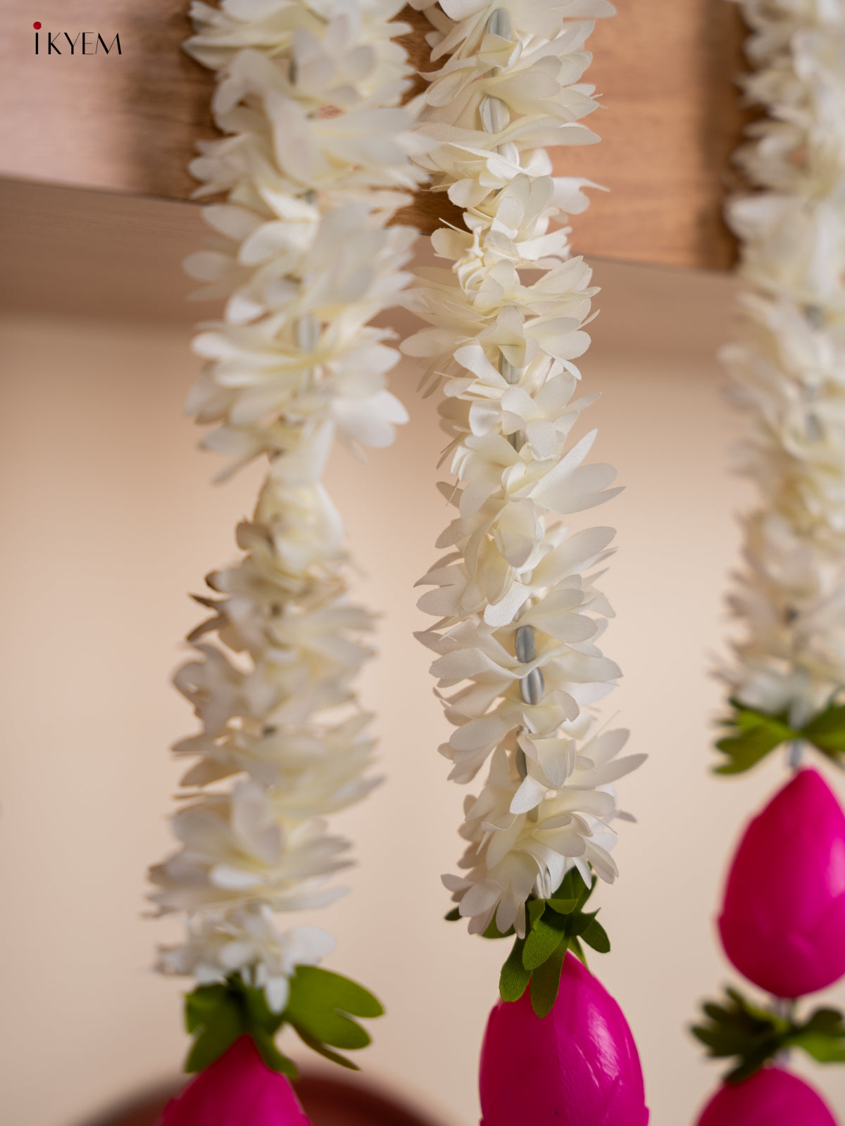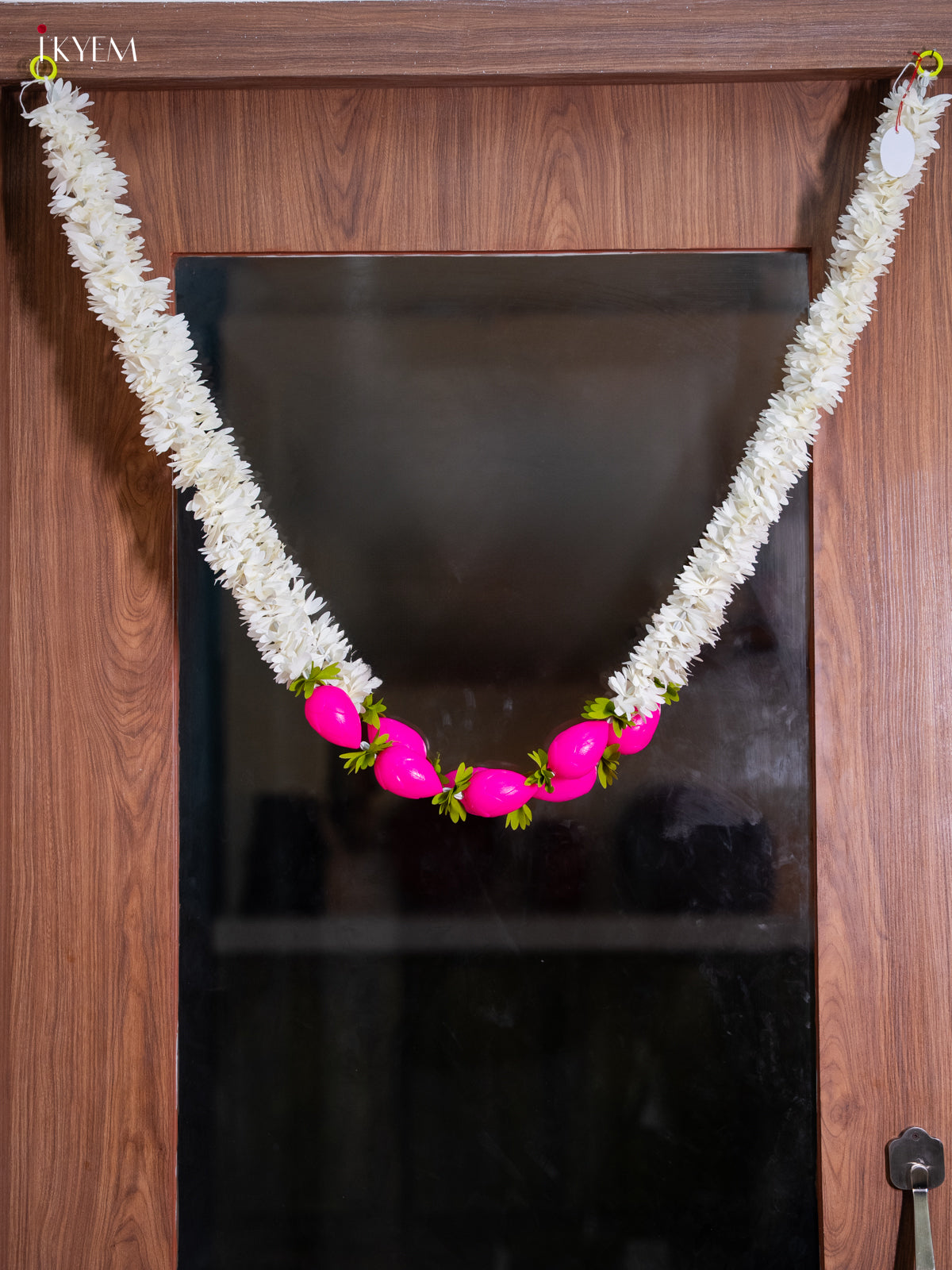 - Enhance the ambiance of your home with the Artificial Hanging Thoranam in White with pink.