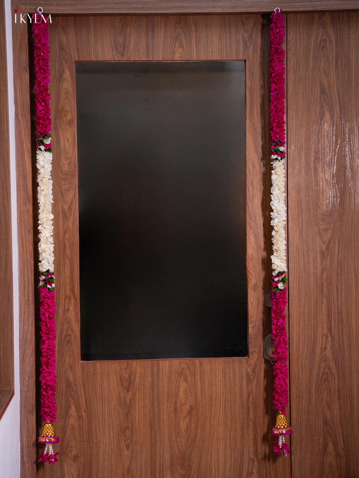 - Enhance the ambiance of your home with the Artificial Hanging Thoranam in White with Purple.