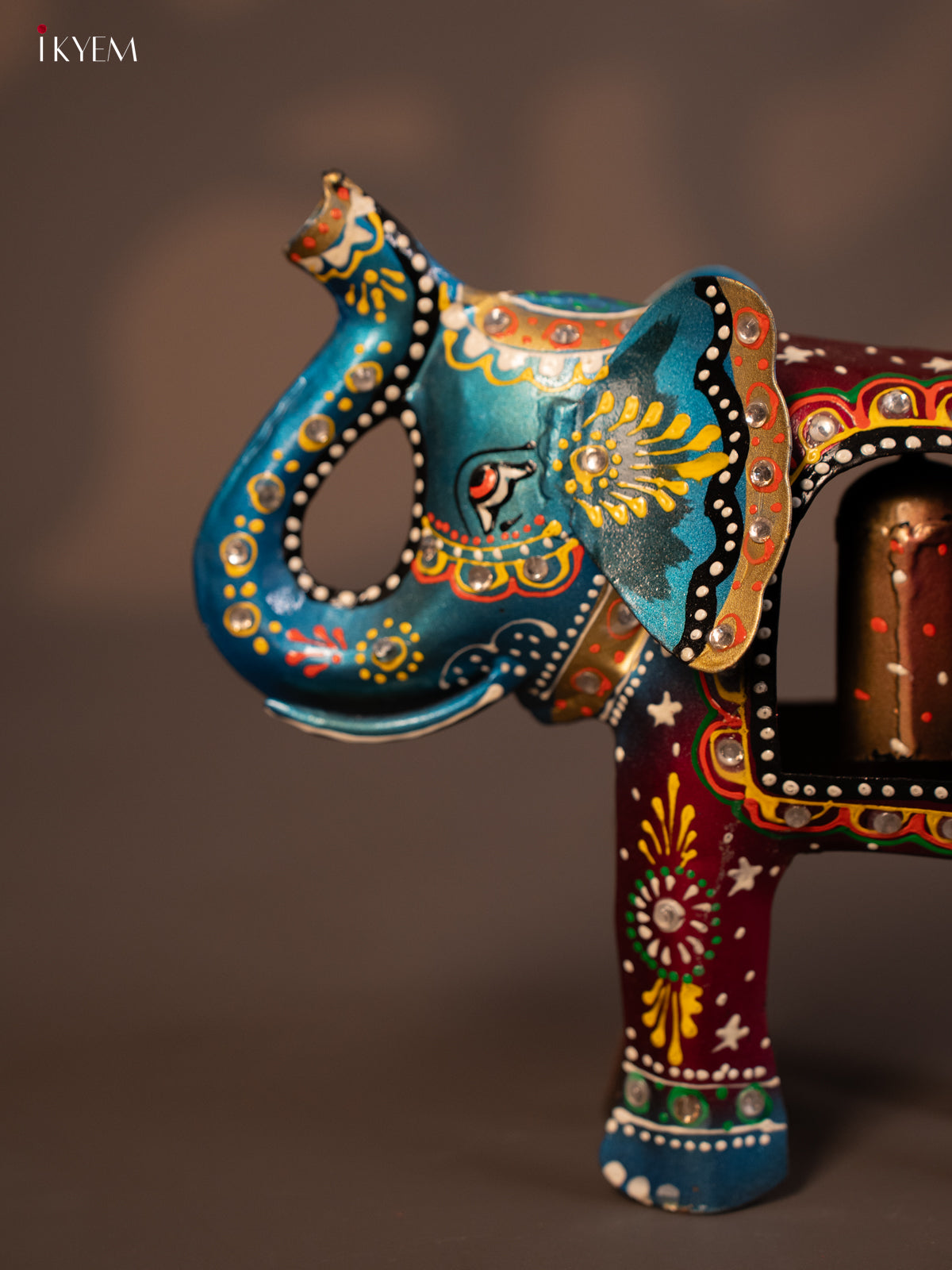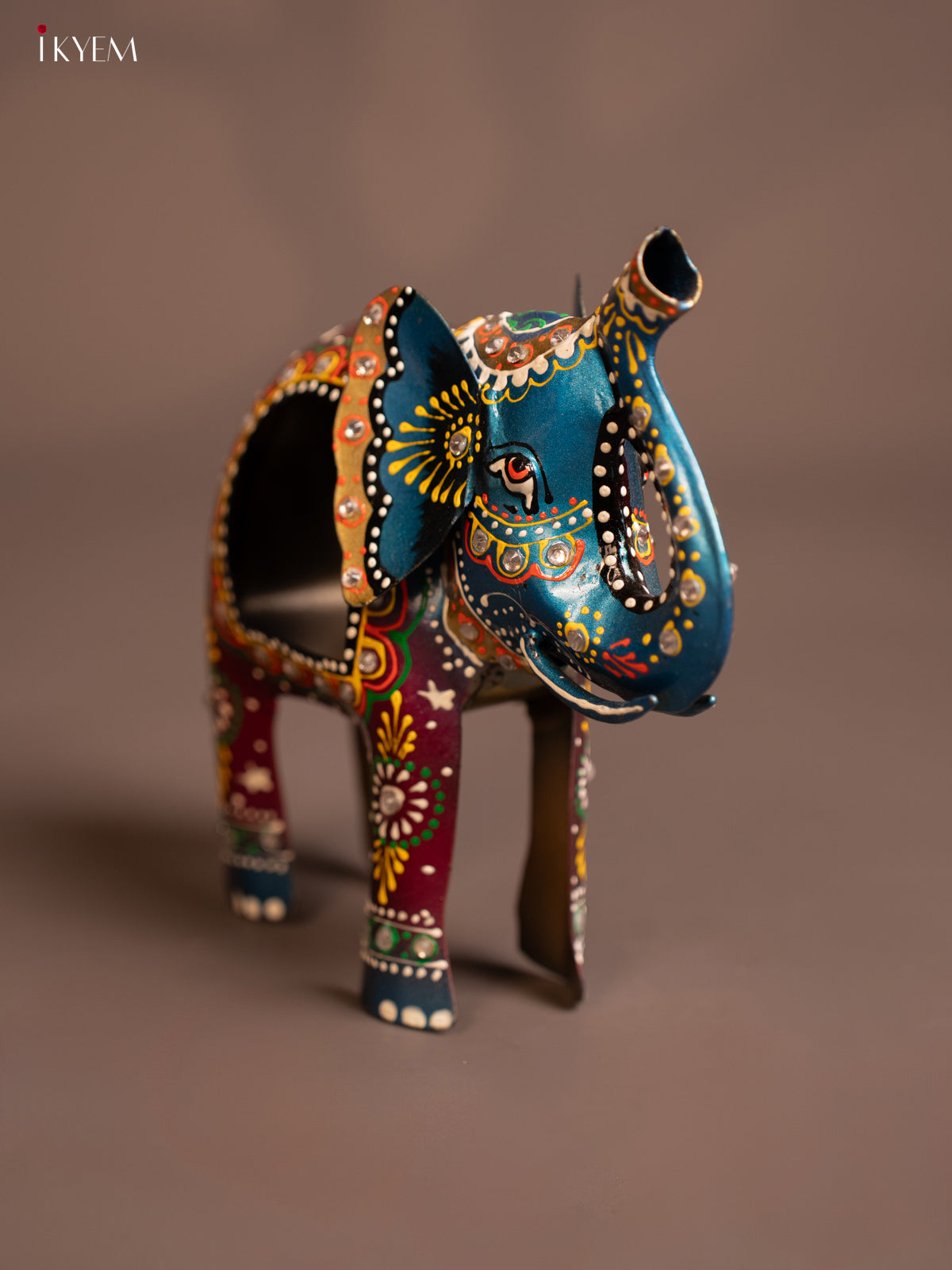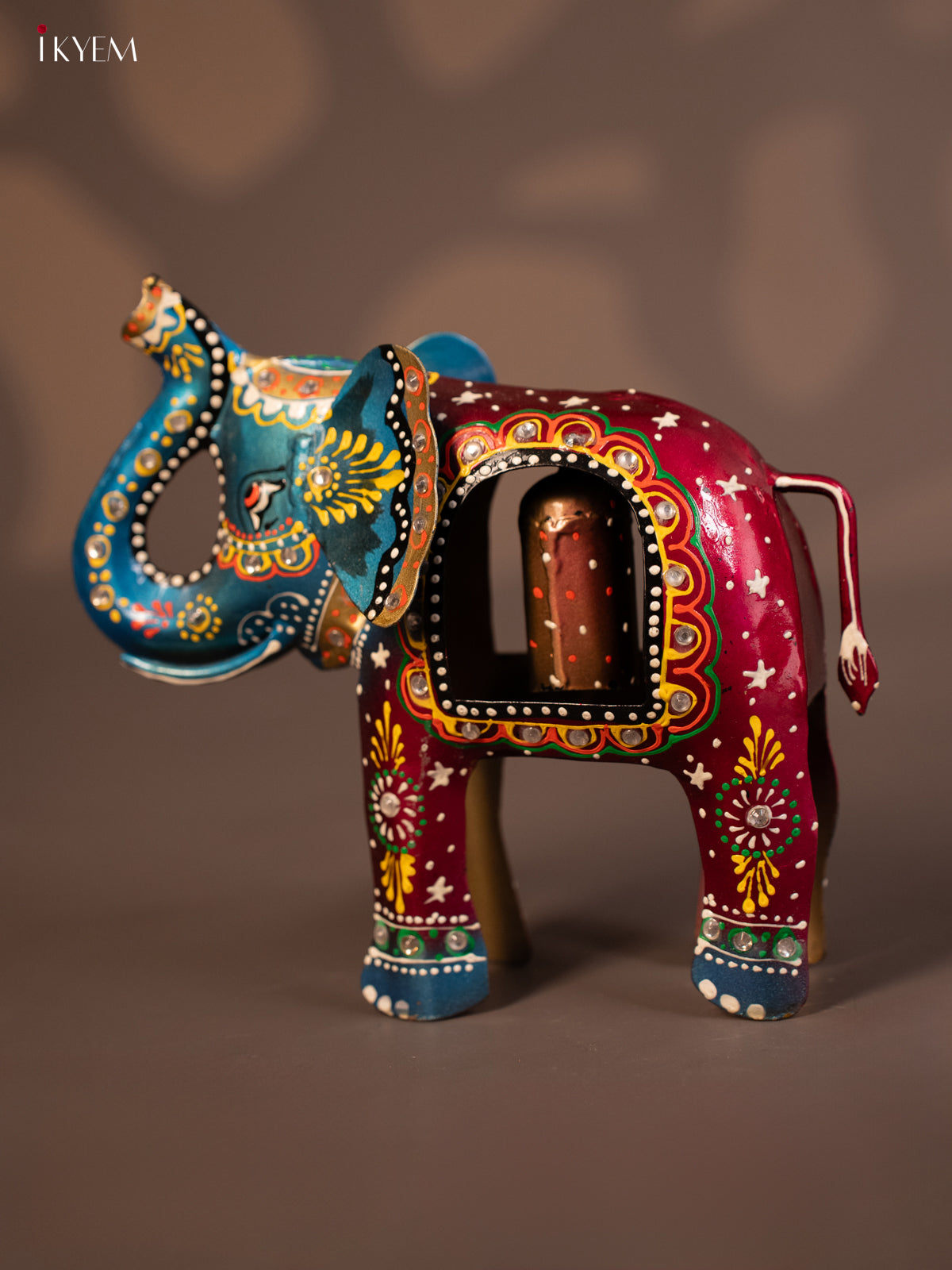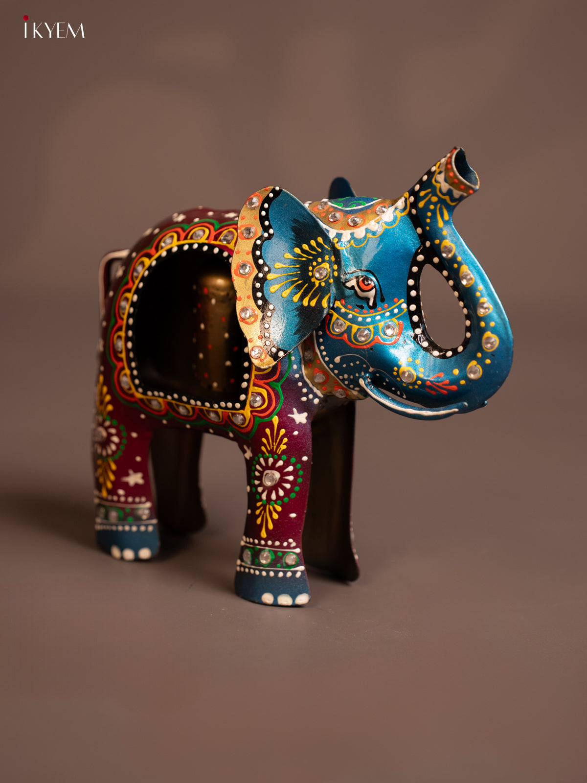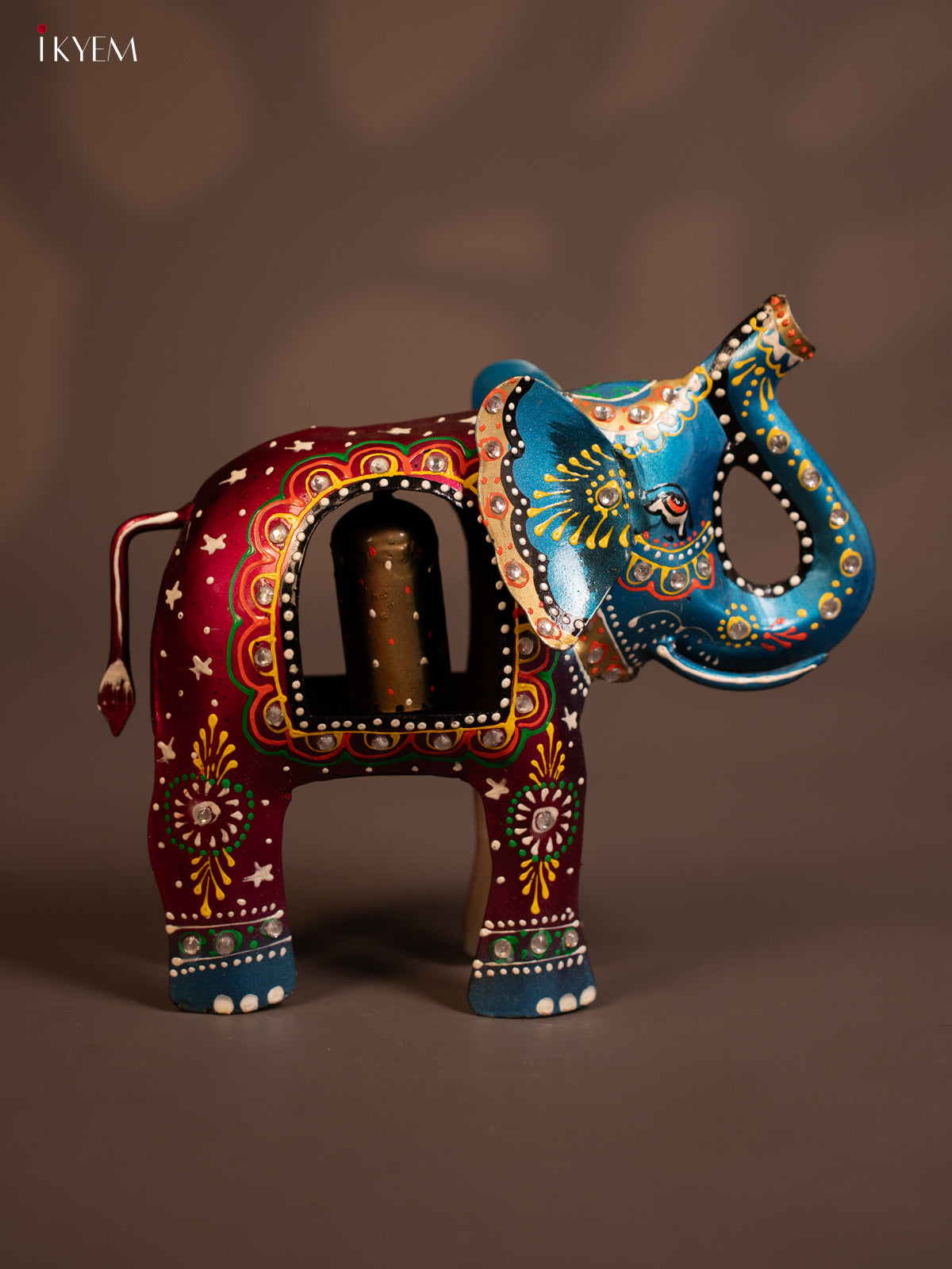 - Charming hand-painted metal elephant bell adds a decorative touch to any space.