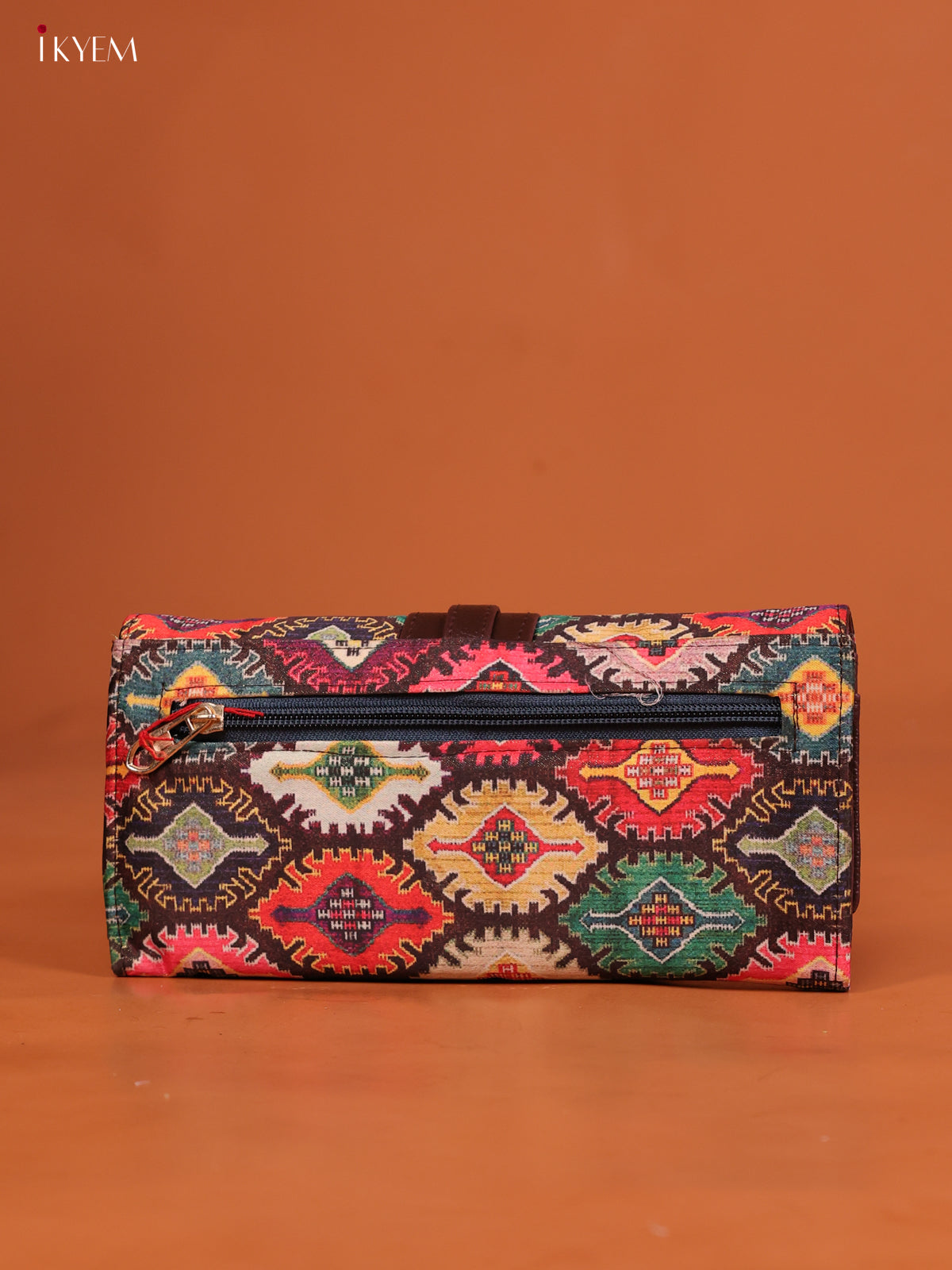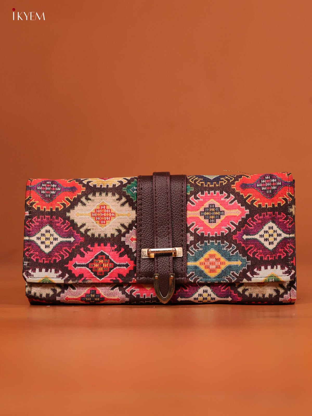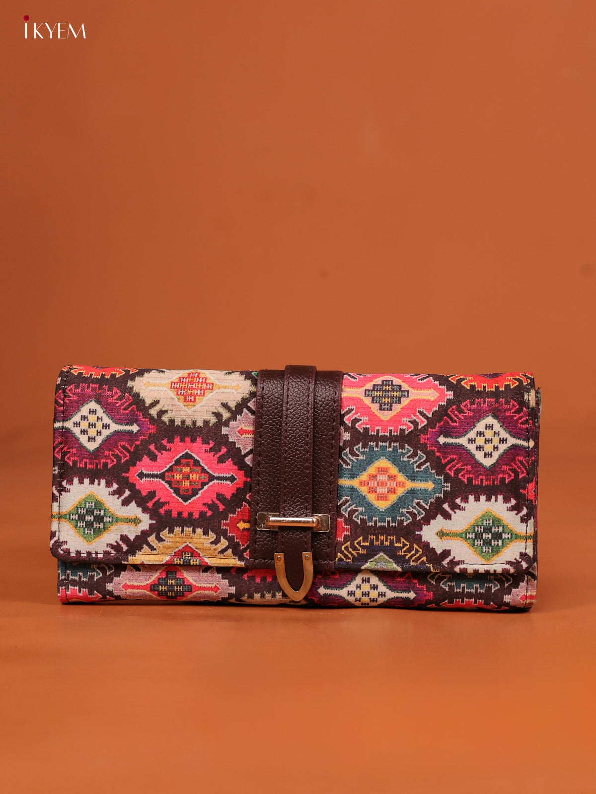 - Elevate your accessory collection with this spacious Ikat print purse.