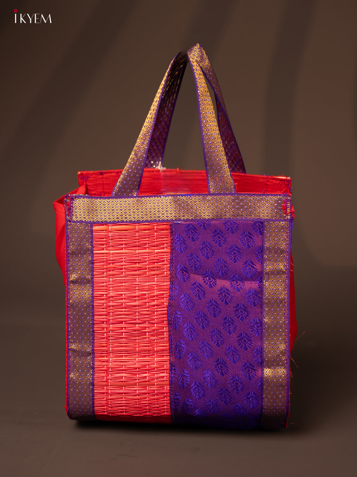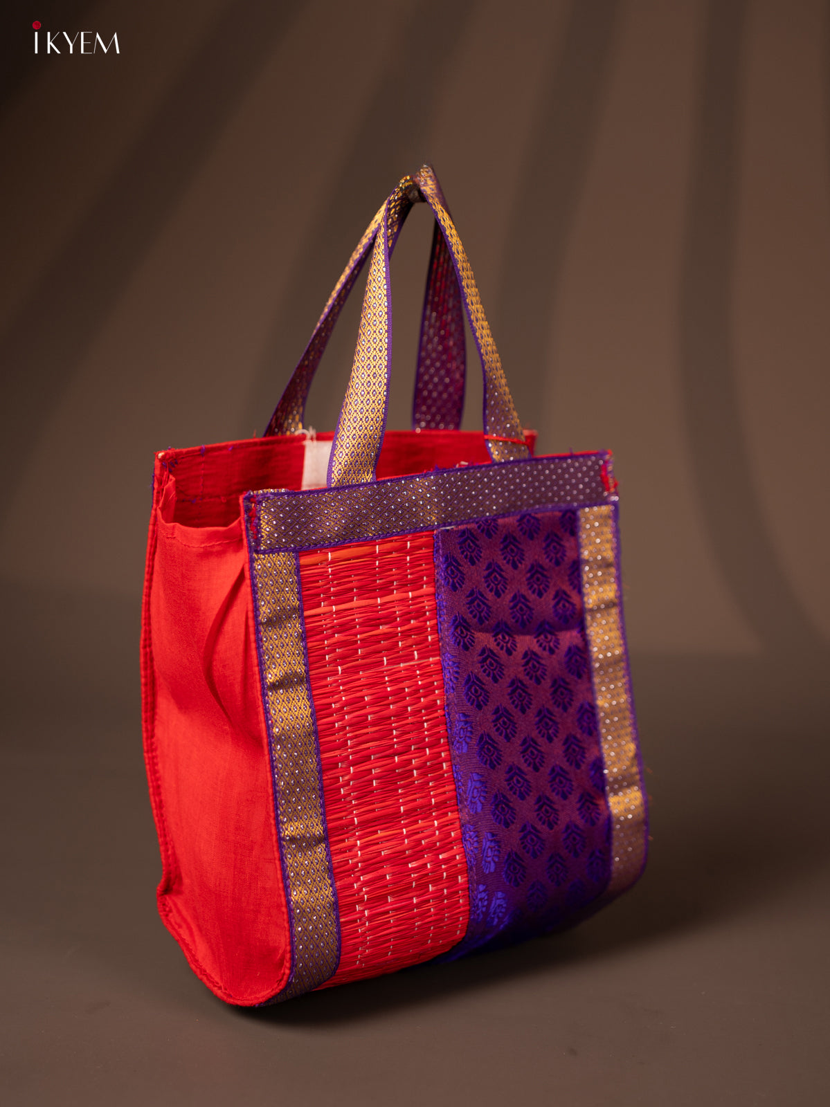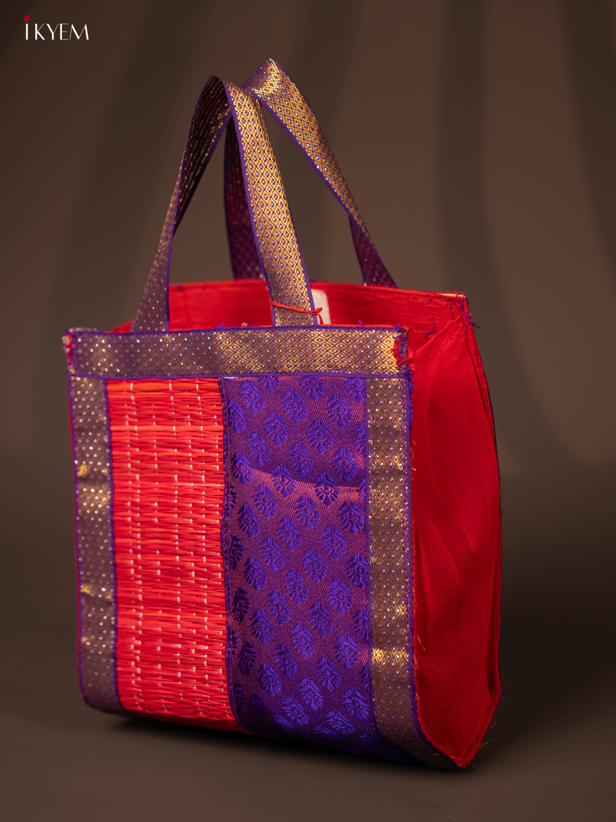 Half and Half Raw Silk with Korai Handbag Red with Blue - KE10154