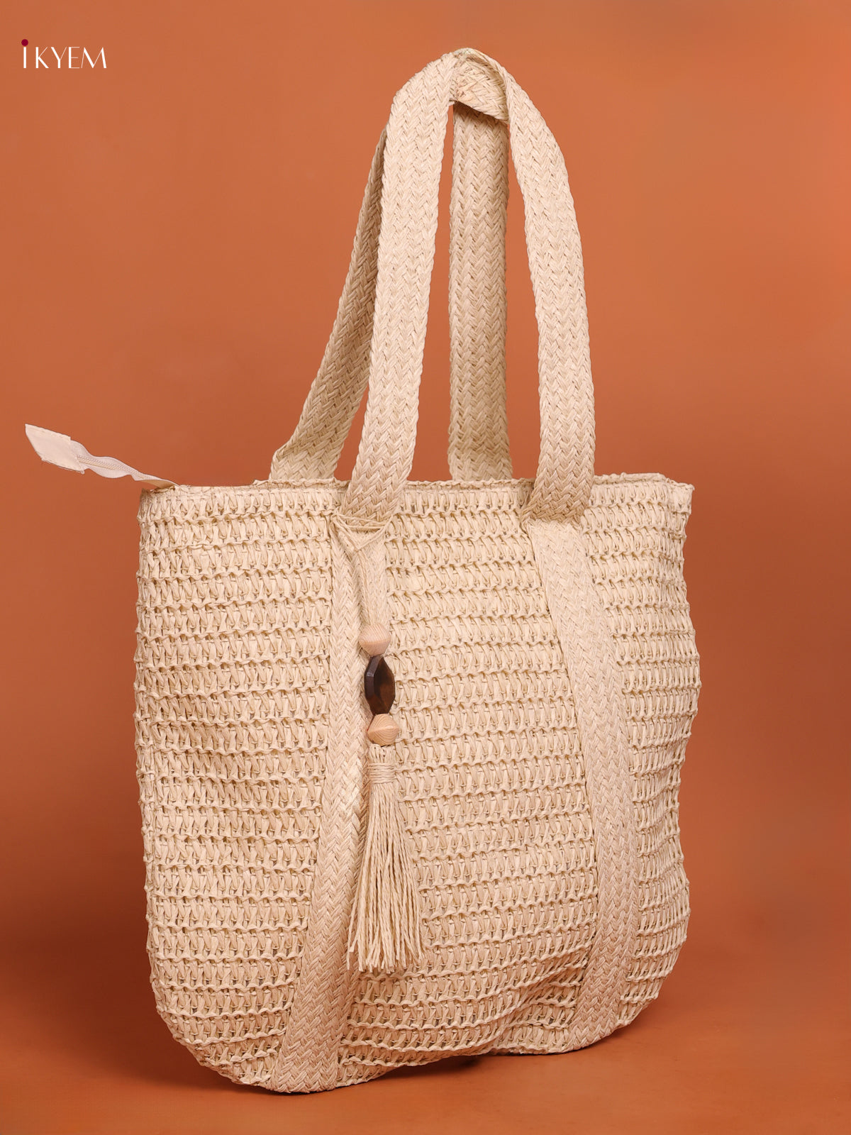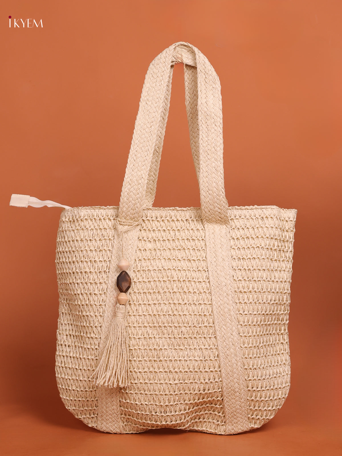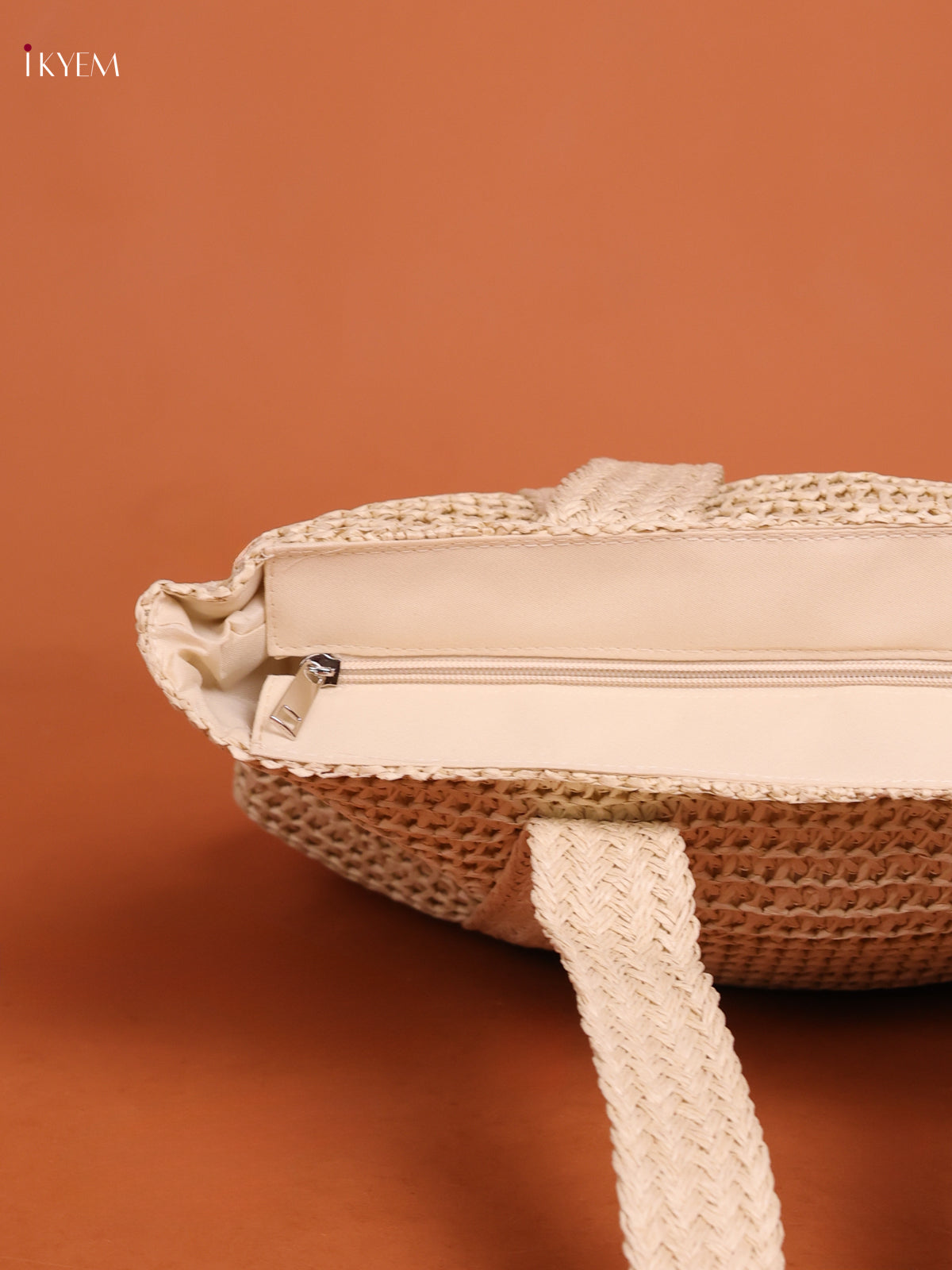 Beach Shoulder Bag with zipper -white