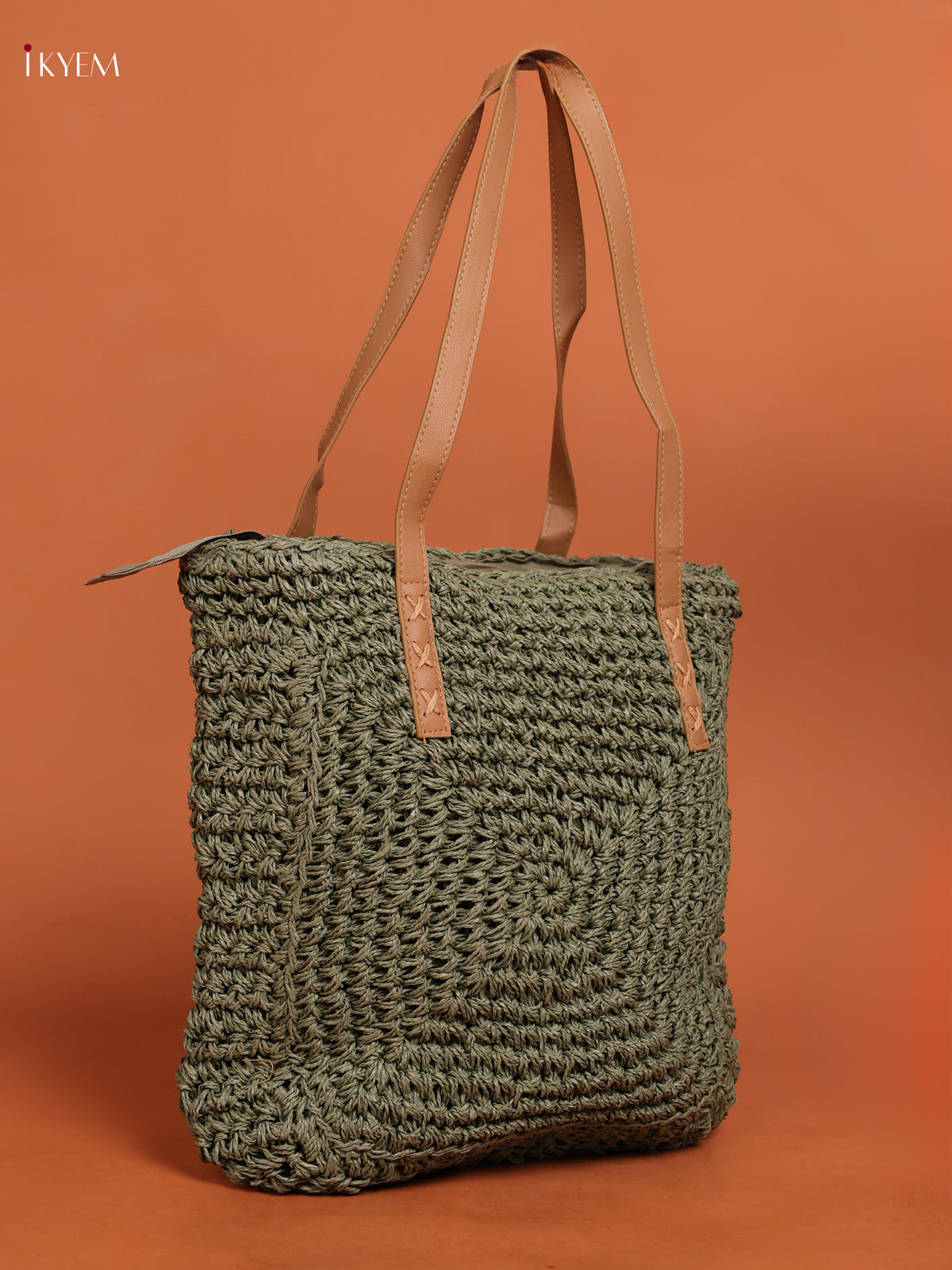 Beach Shoulder Bag with zipper - green