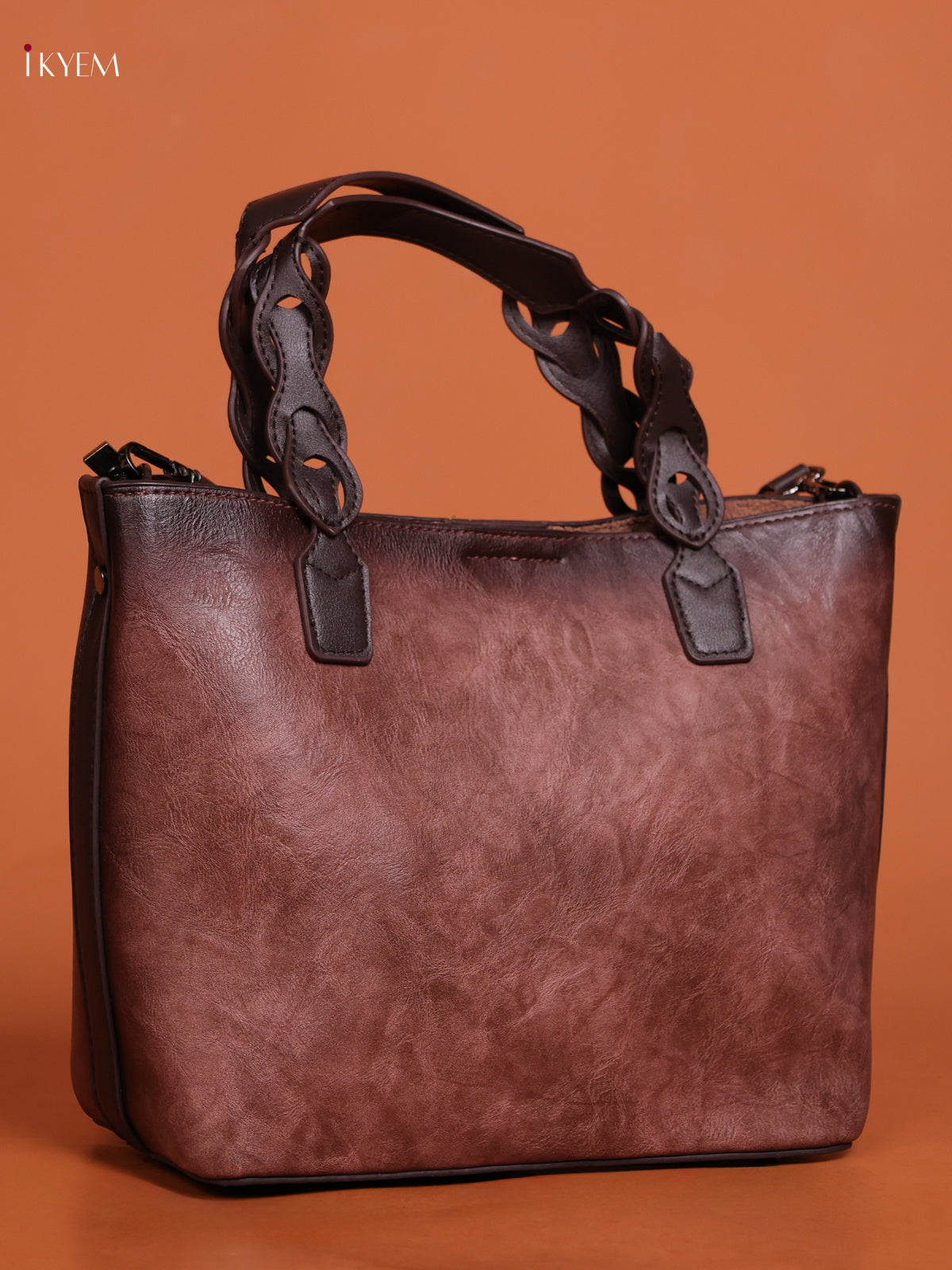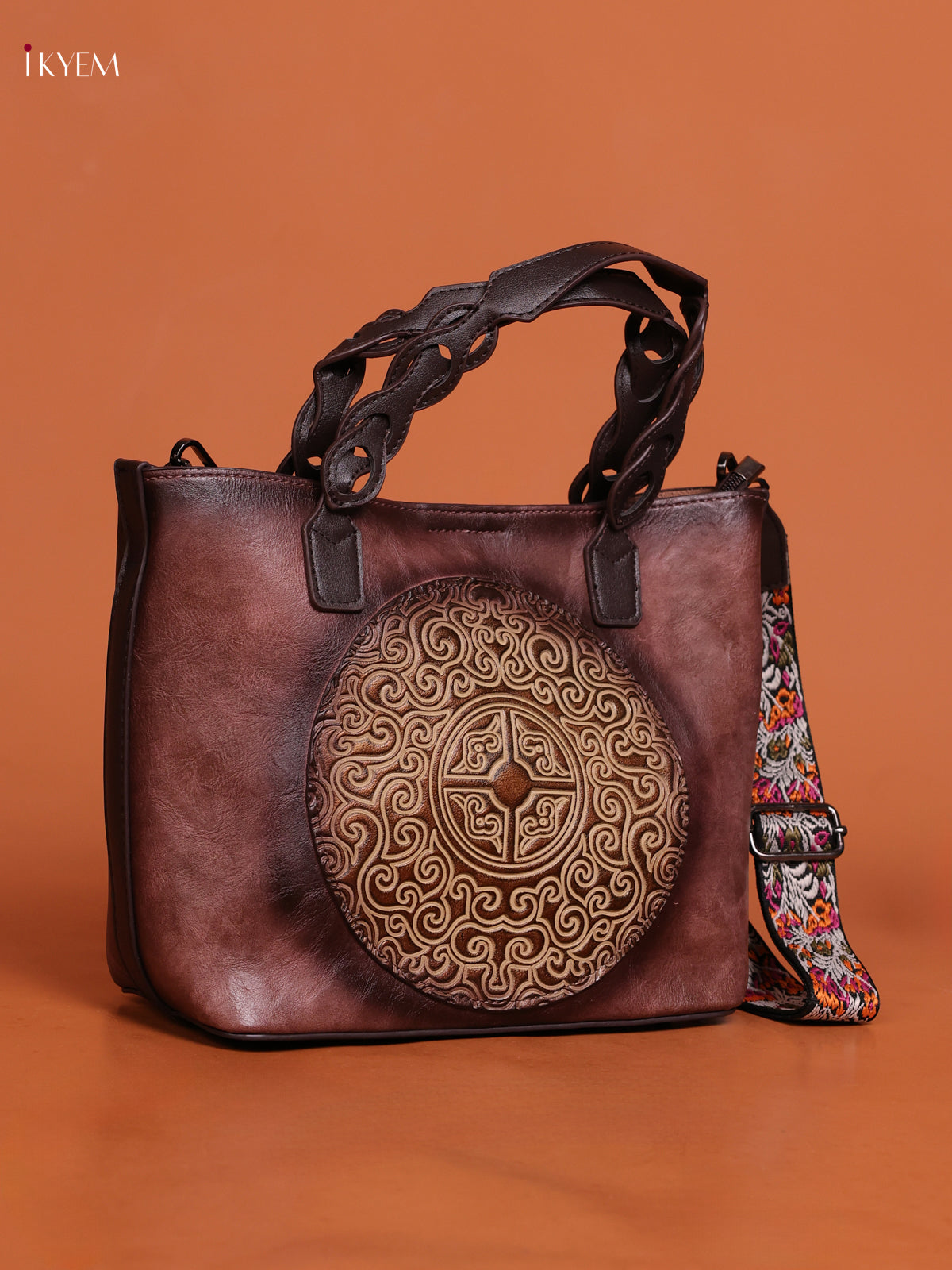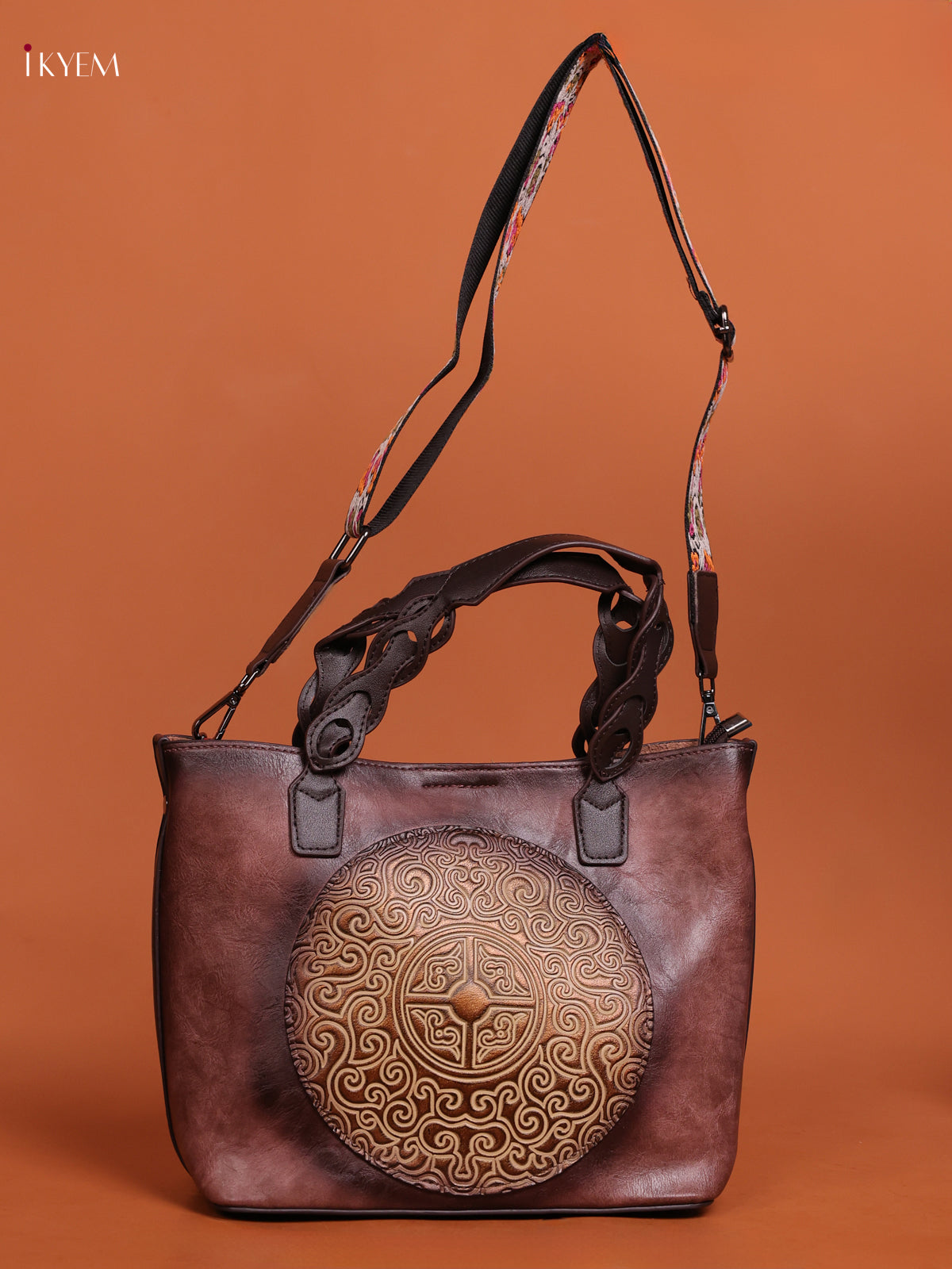 Embossed Tote Bag Hand Bag And Sling Bag Brown