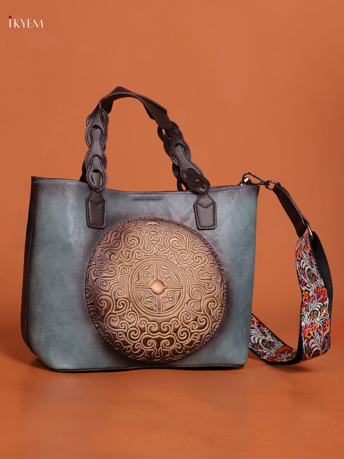 Embossed Tote Bag Hand Bag And Sling Bag Blue