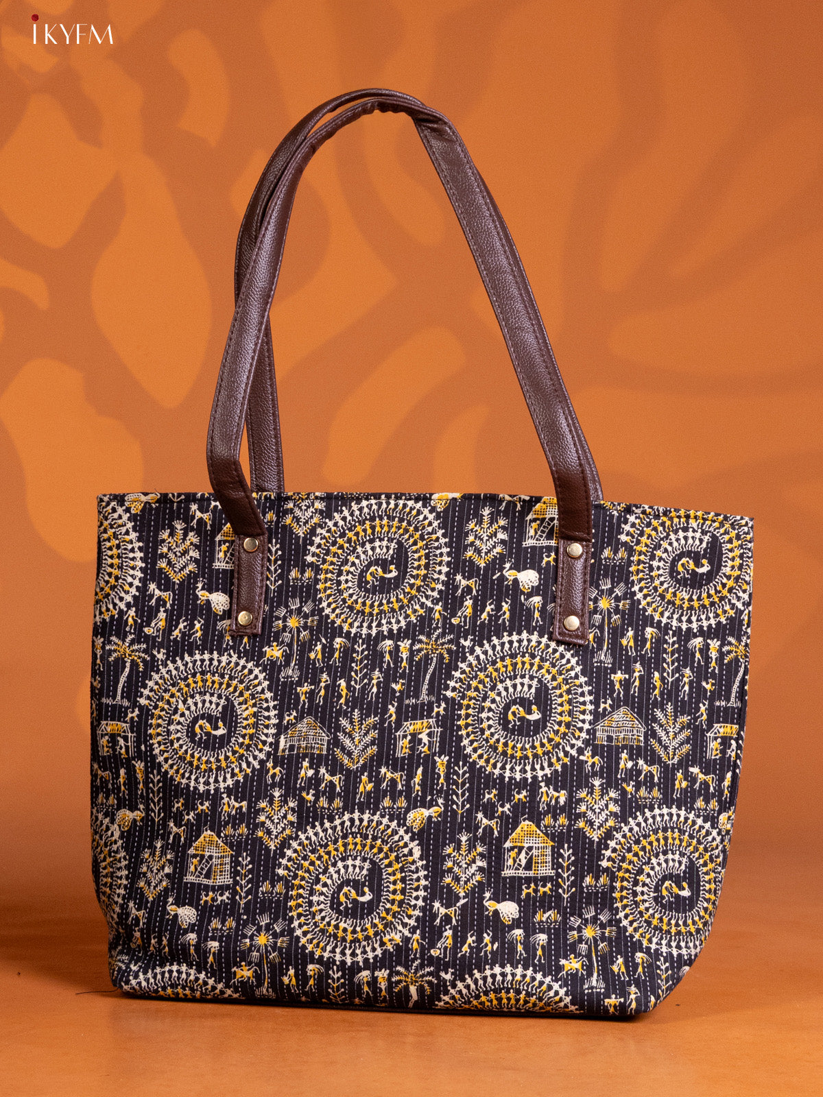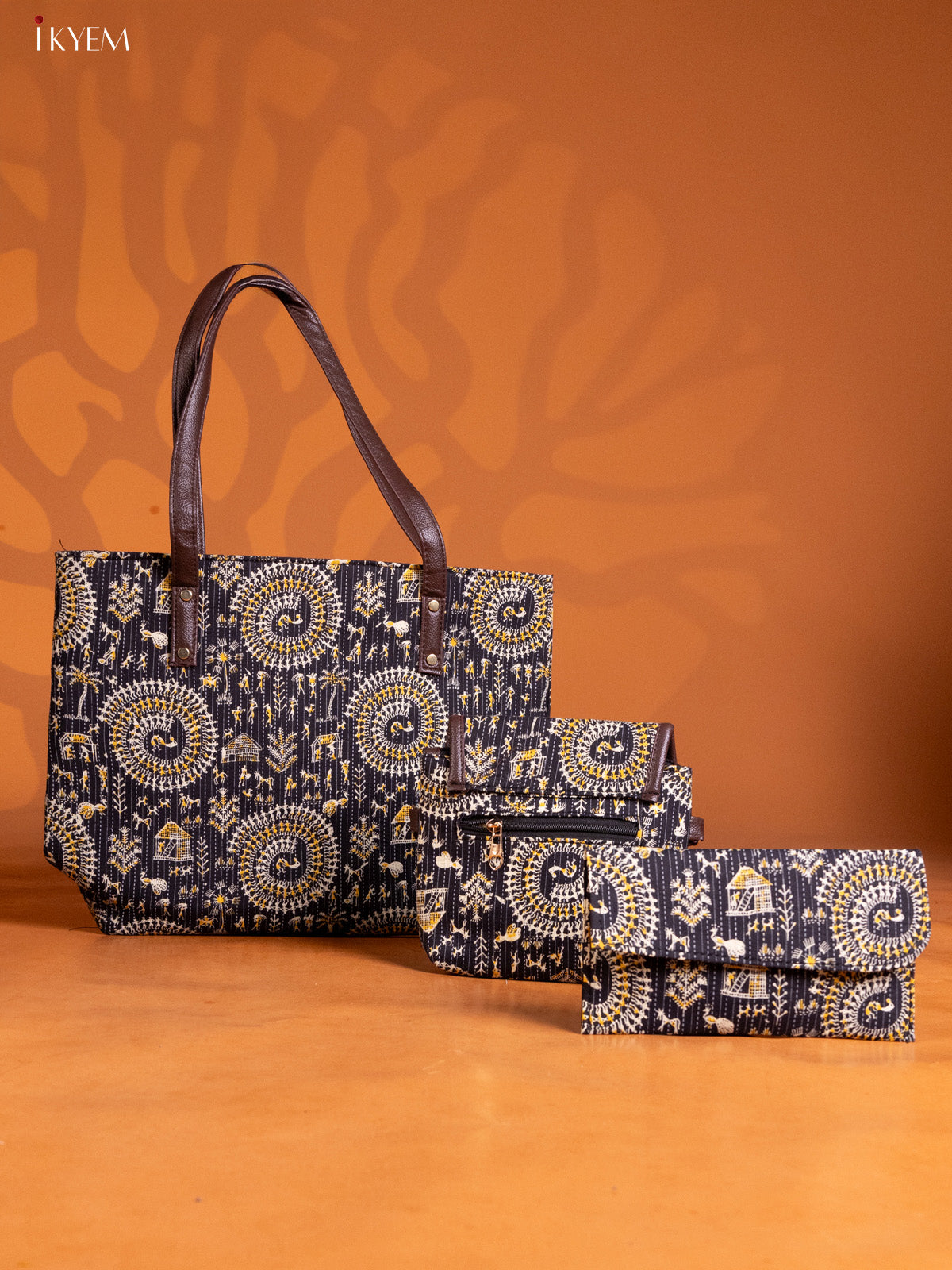 - This Geometric Design Handbag Combo Set-in Navy-blue features meticulously handcrafted traditional geometric patterns.