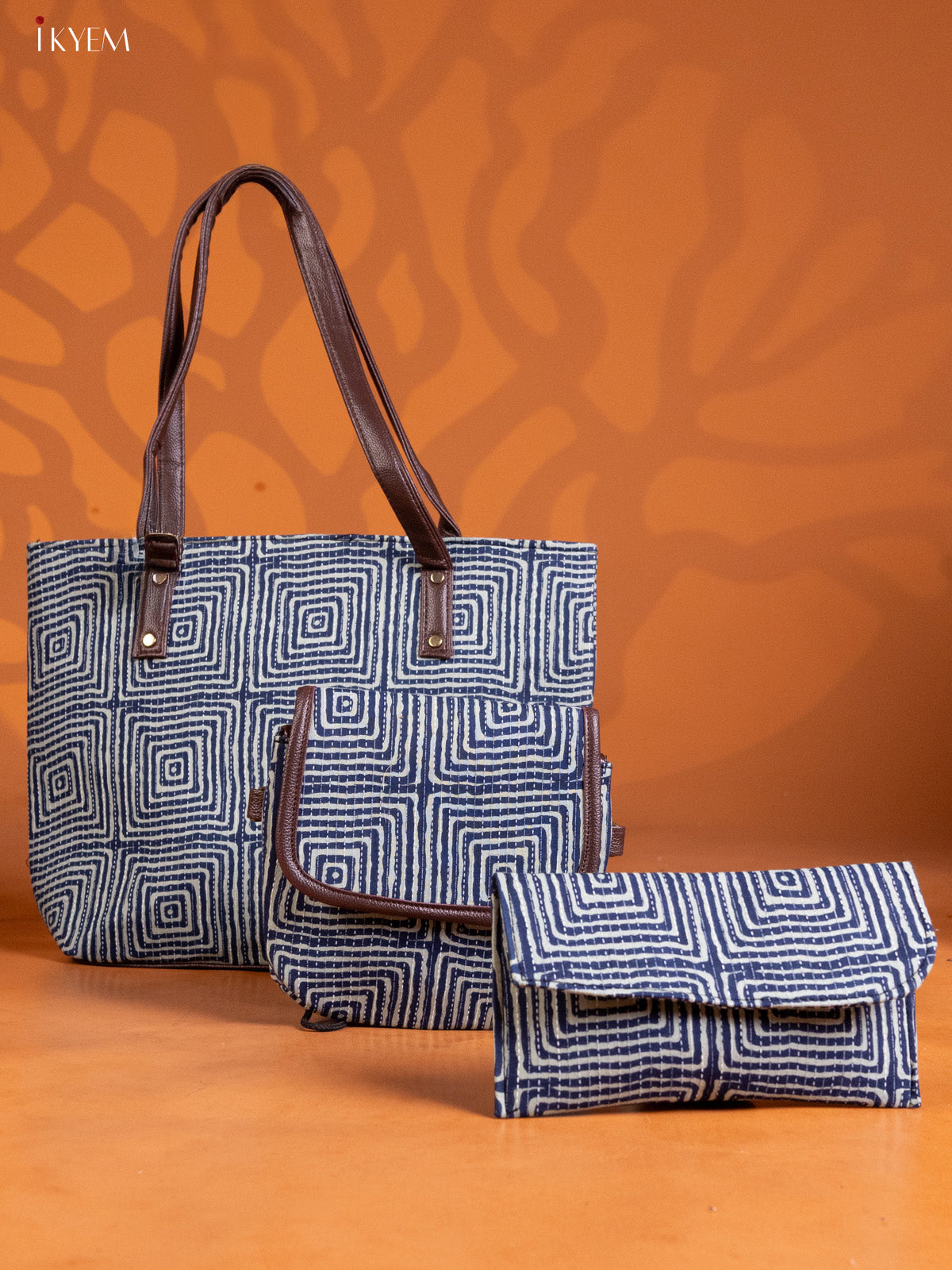 - This Geometric Design Handbag Combo Set in Blue features meticulously handcrafted traditional Geometric patterns.