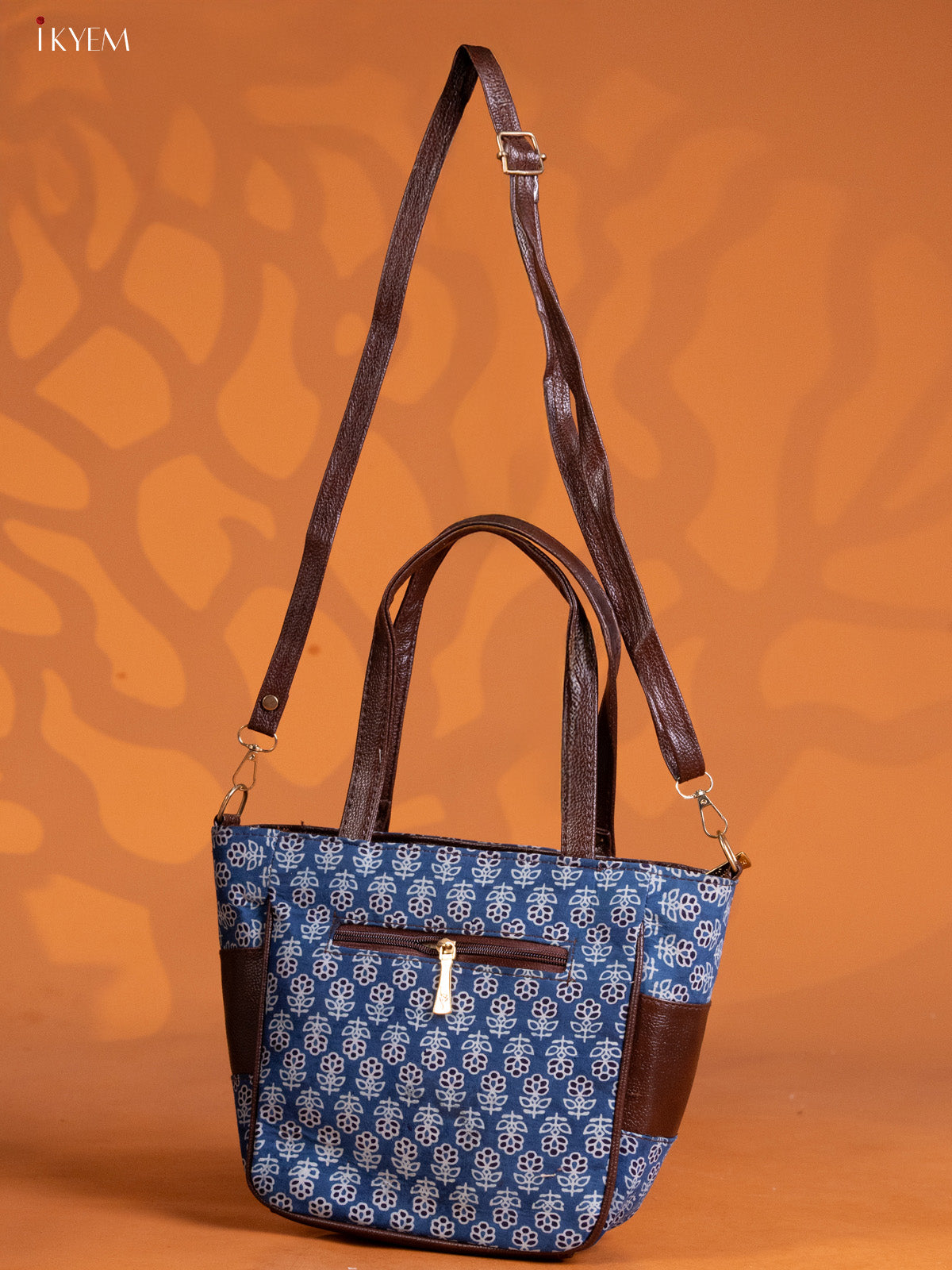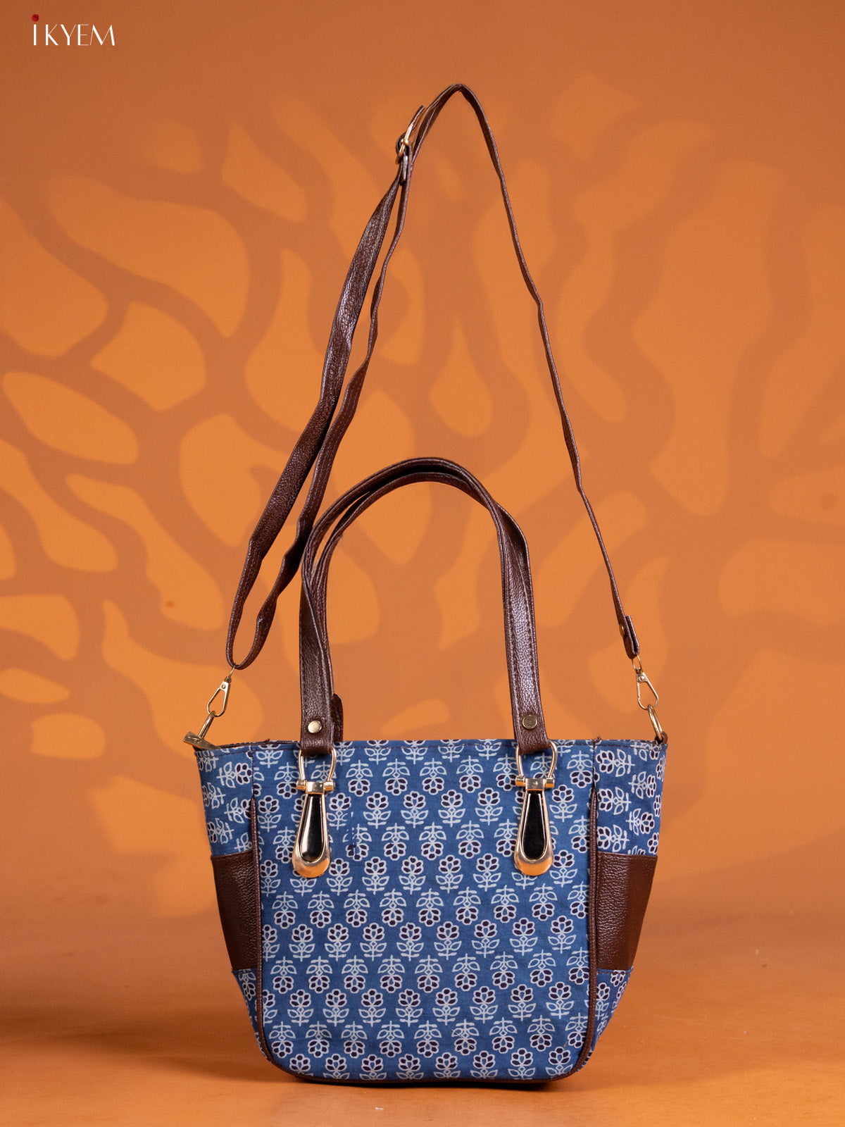Cotton Floral Design Handbag Combo Set - Indigo Blue - KE16331