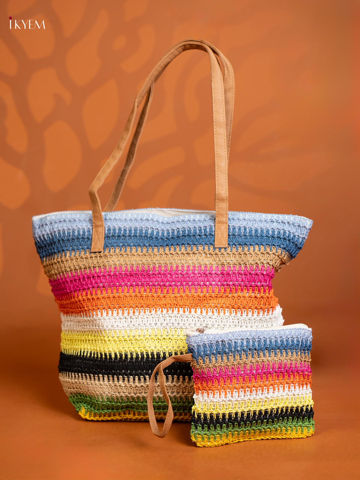 Cotton Tote Bag with 1 Compartments 1 Pouch - Multicolour - KE16358