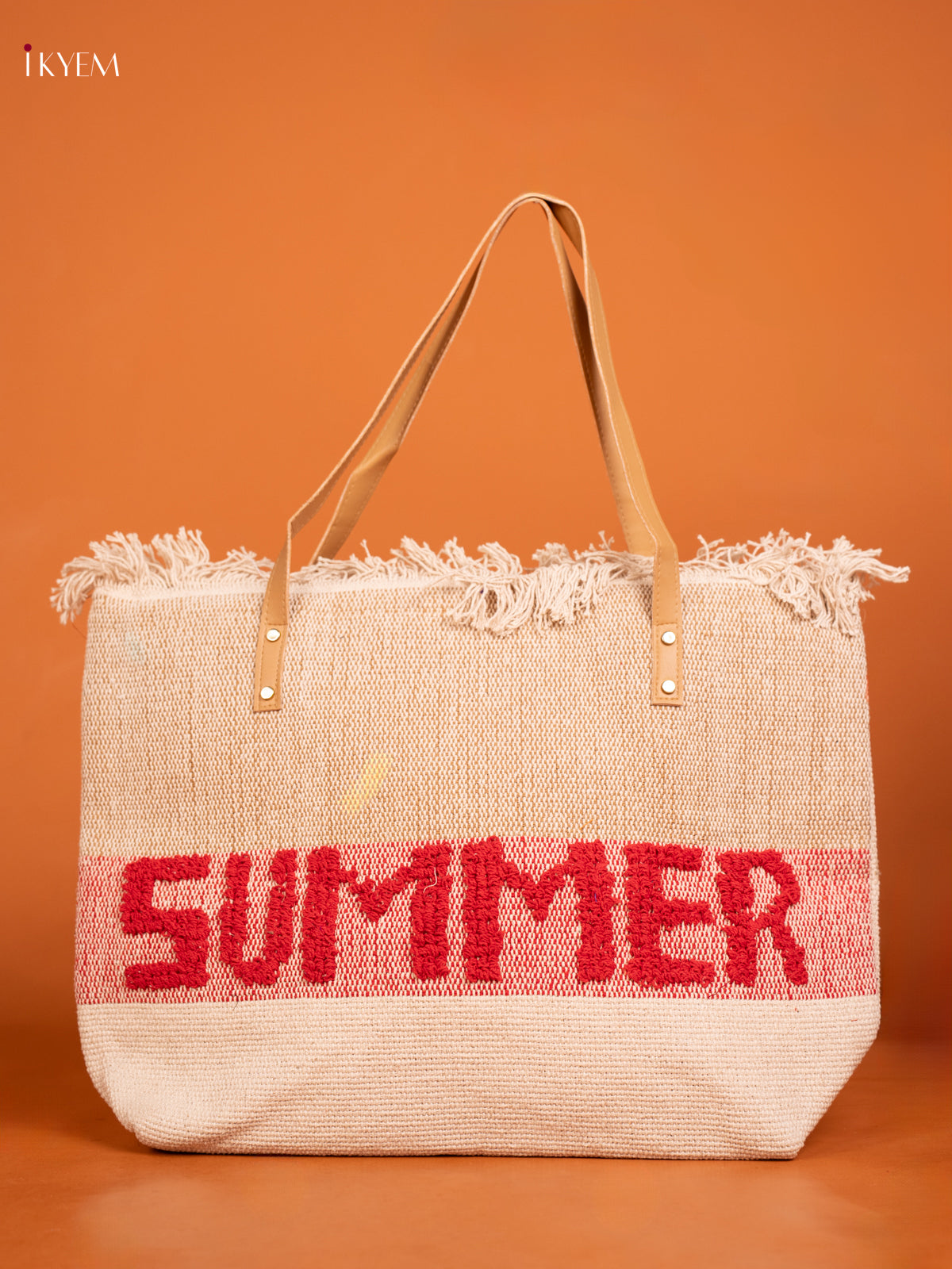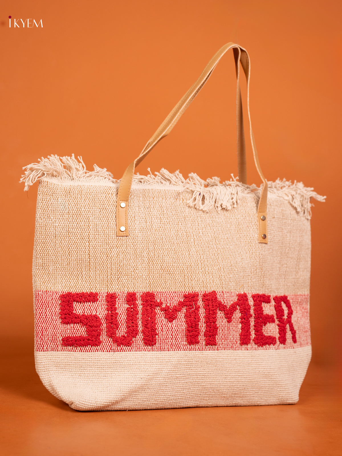 Cotton Tote Bag with 1 Compartments -off white with Red - KE16365