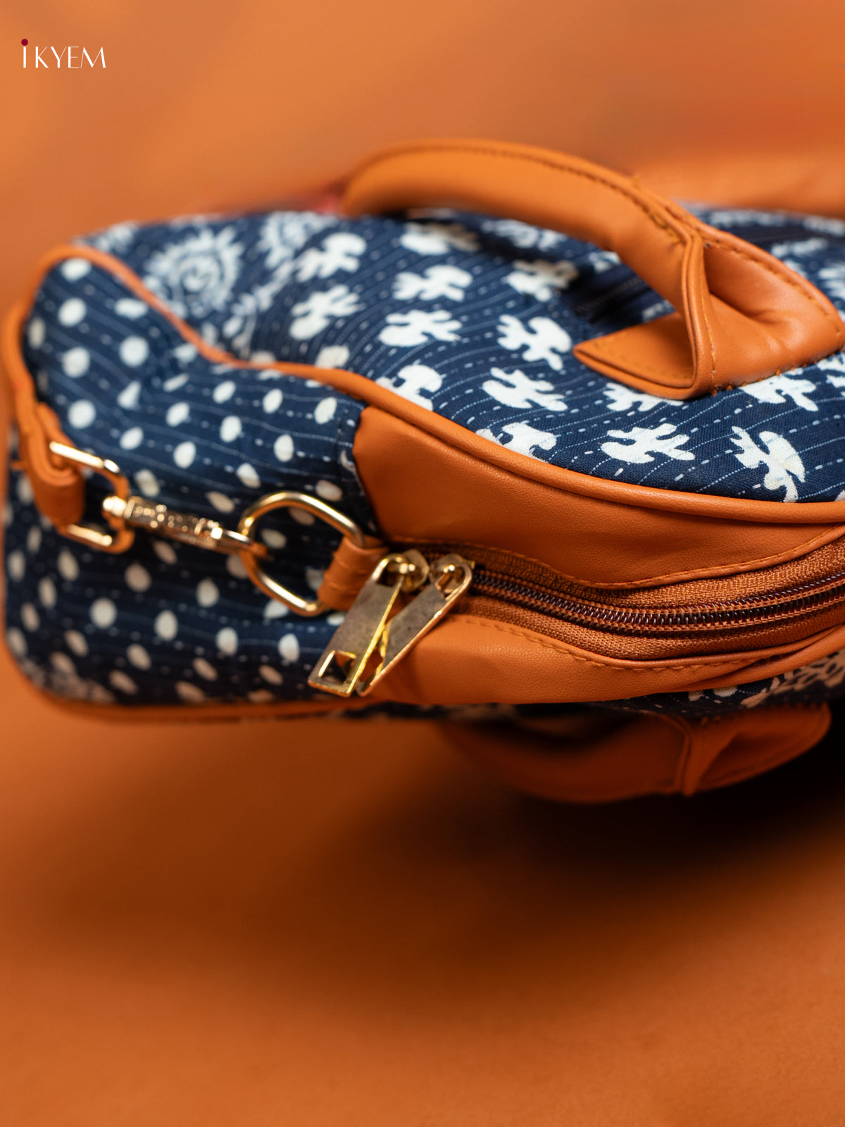 - Expertly crafted Cotton Ikat Printed handbag featuring a premium leather sling design.