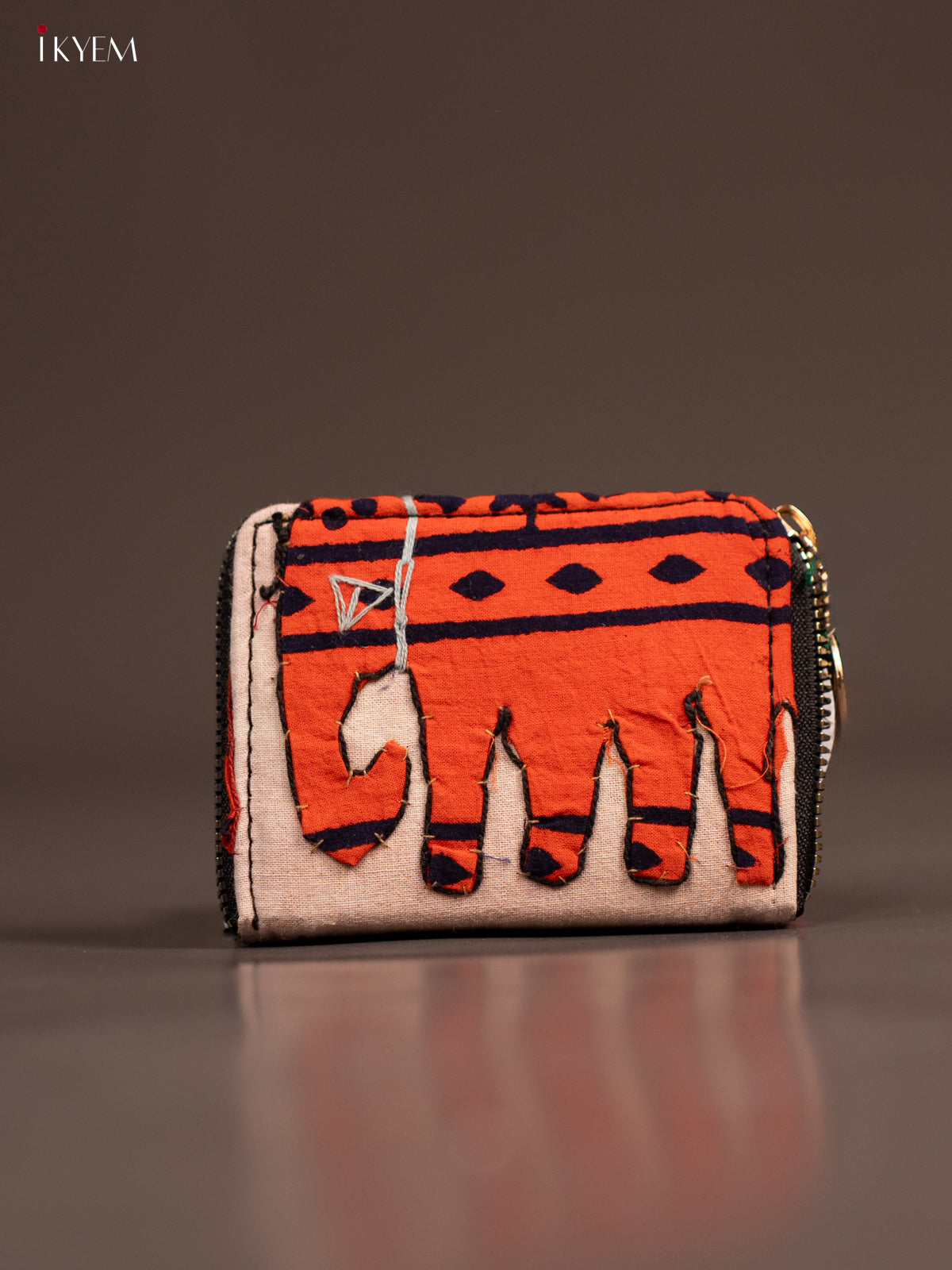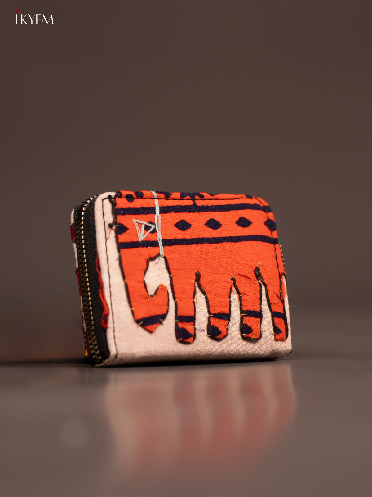 Embroidery Small Wallet - Off white with Orange - KE21199