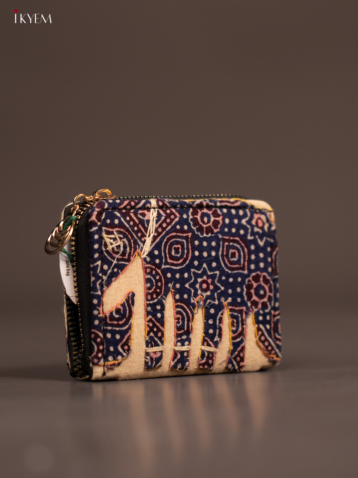 - The Embroidery Small Wallet in Cream with Navy Blue combines detailed craftsmanship with a compact, comfortable design perfect for everyday use.
