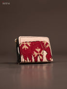 Embroidery Small Wallet - Cream with Maroon - KE21205
