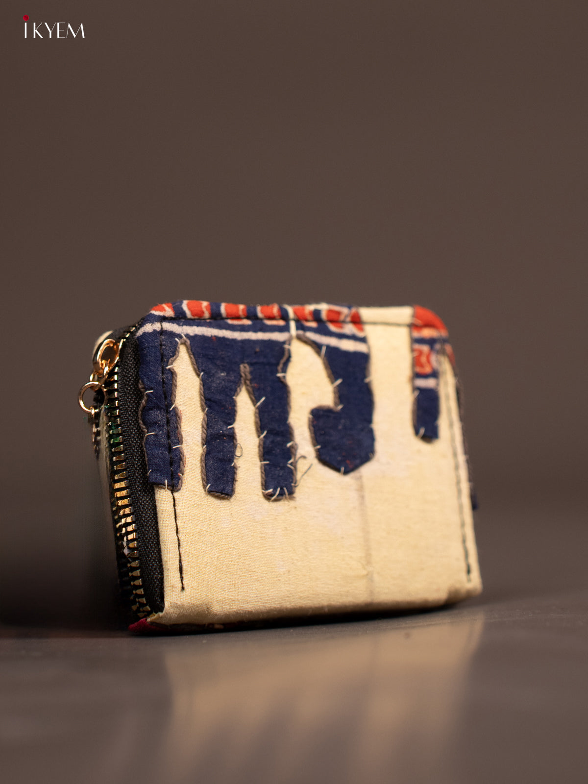Embroidery Small Wallet - Cream with Navy Blue - KE21217