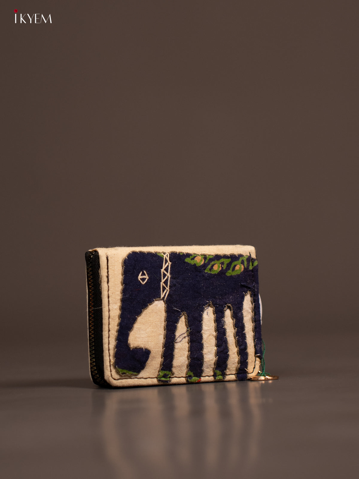- The Embroidery Small Wallet in Cream with Navy Blue combines detailed craftsmanship with a compact, comfortable design perfect for everyday use.