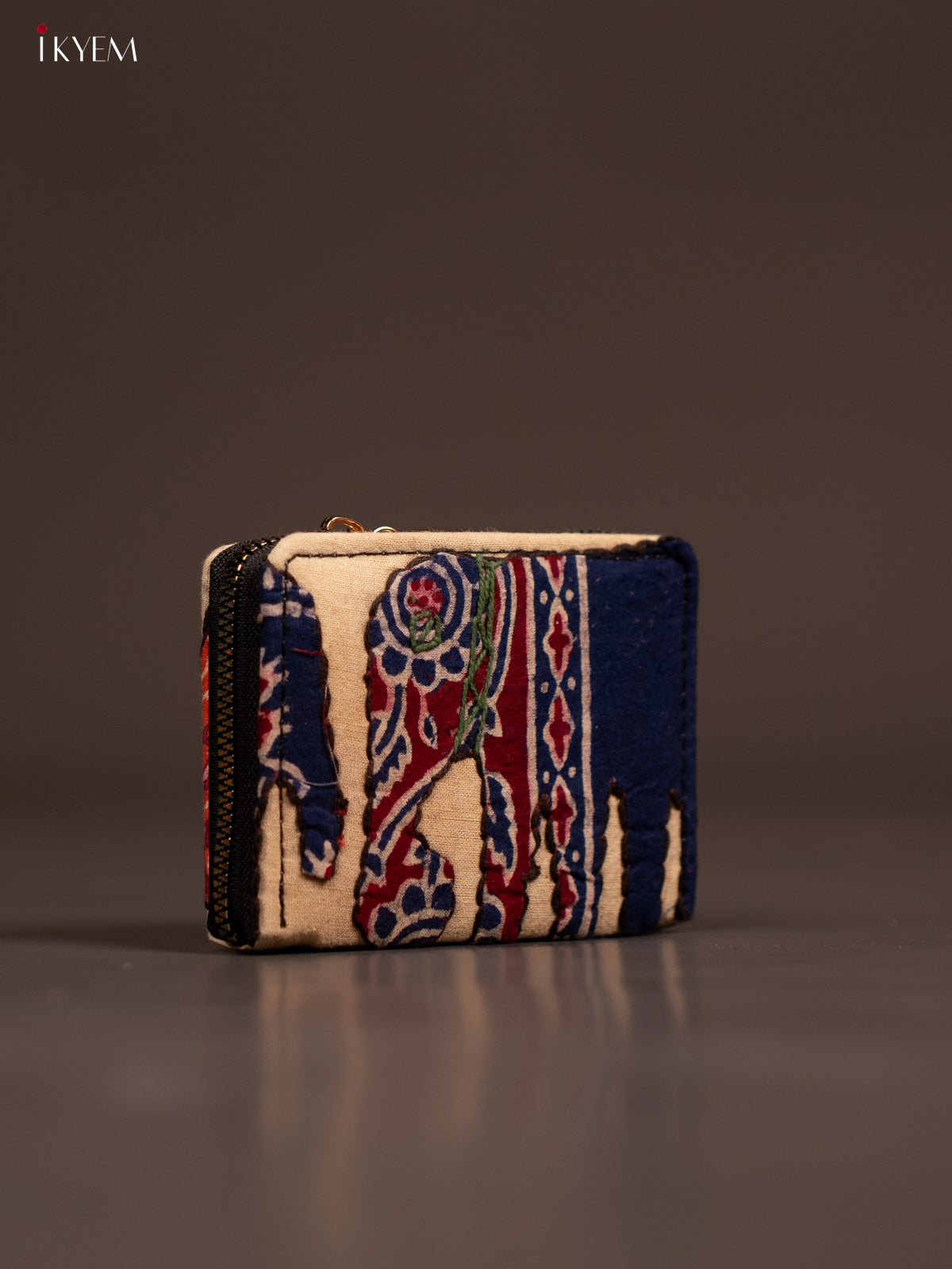 - The Embroidery Small Wallet in Cream with Navy Blue with red combines detailed craftsmanship with a compact, comfortable design perfect for everyday use.