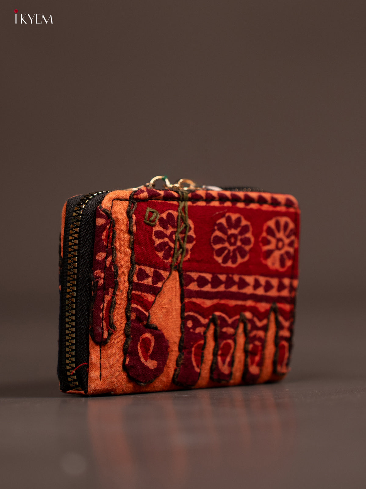 - The Embroidery Small Wallet in Orange with Red with red combines detailed craftsmanship with a compact, comfortable design perfect for everyday use.