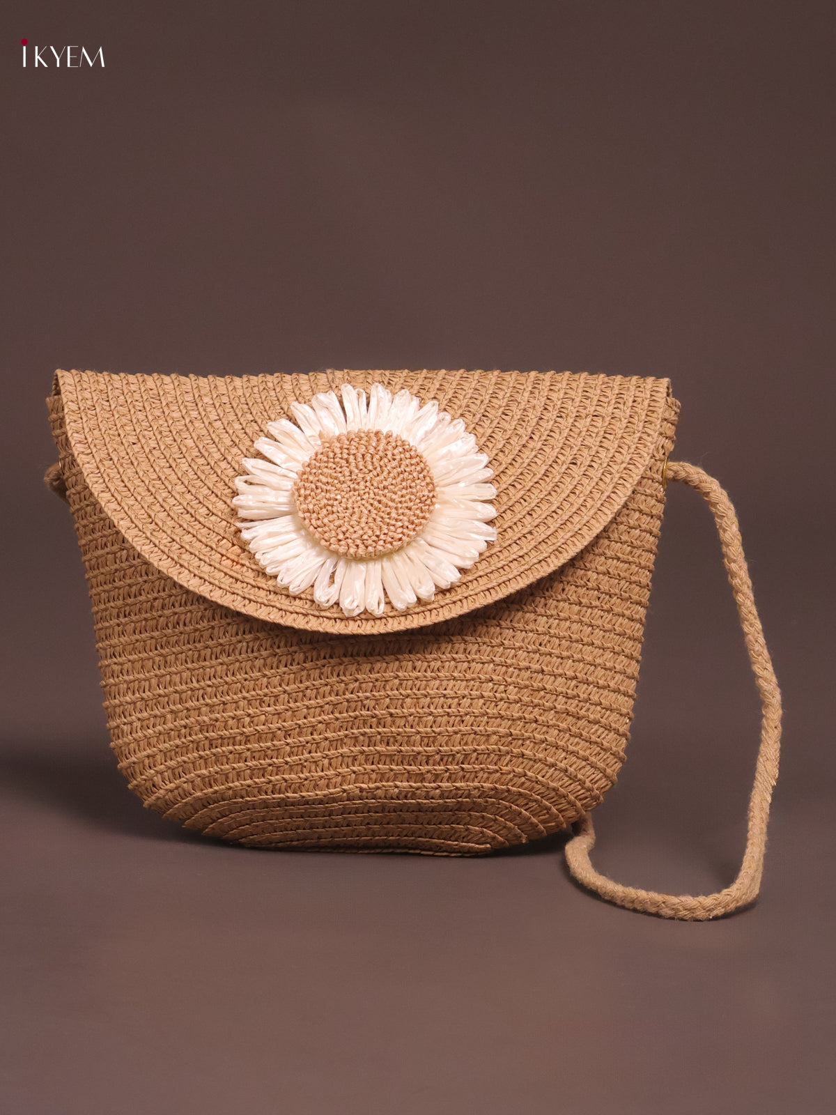 Flap Beach Bag Floral Design Brown