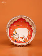 Digital Printed German Silver Tray - Cow & Calf - Orange - KE23111