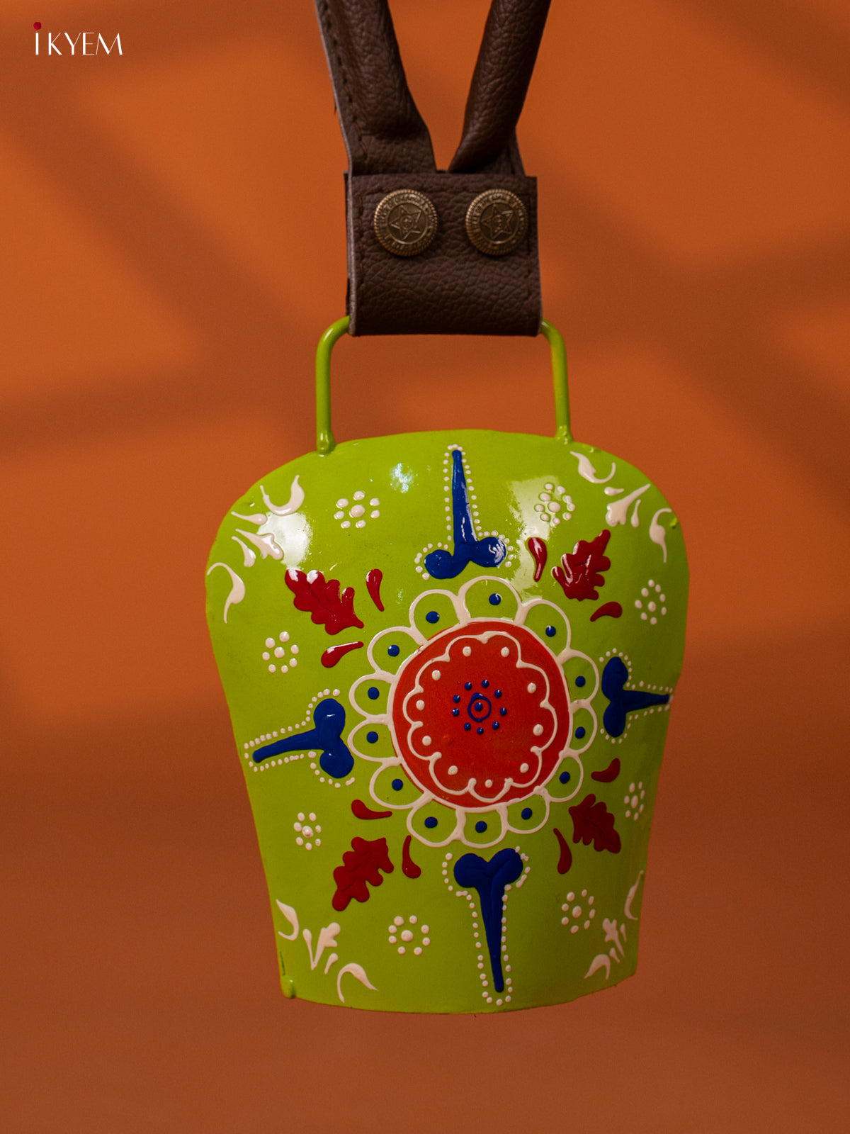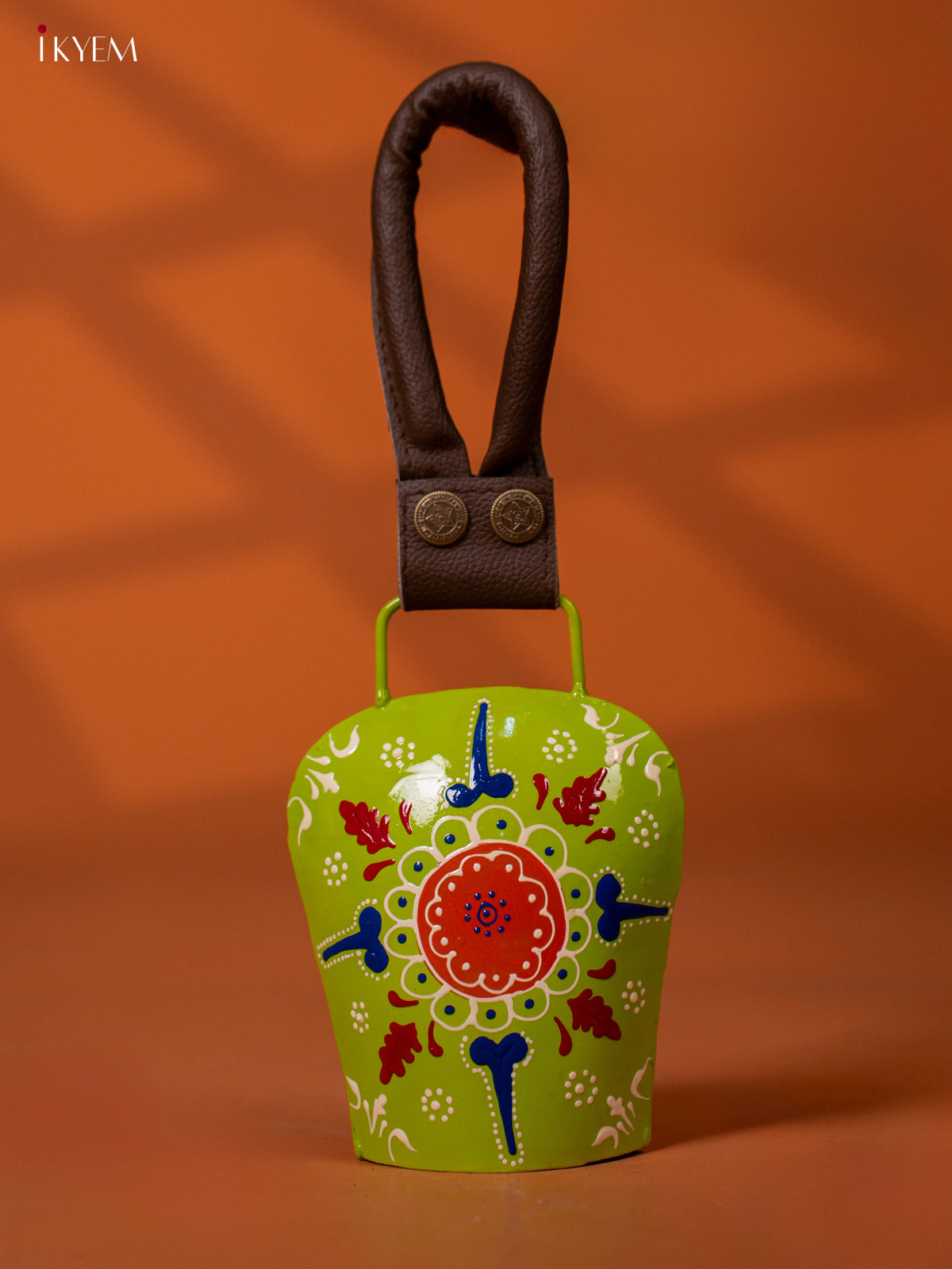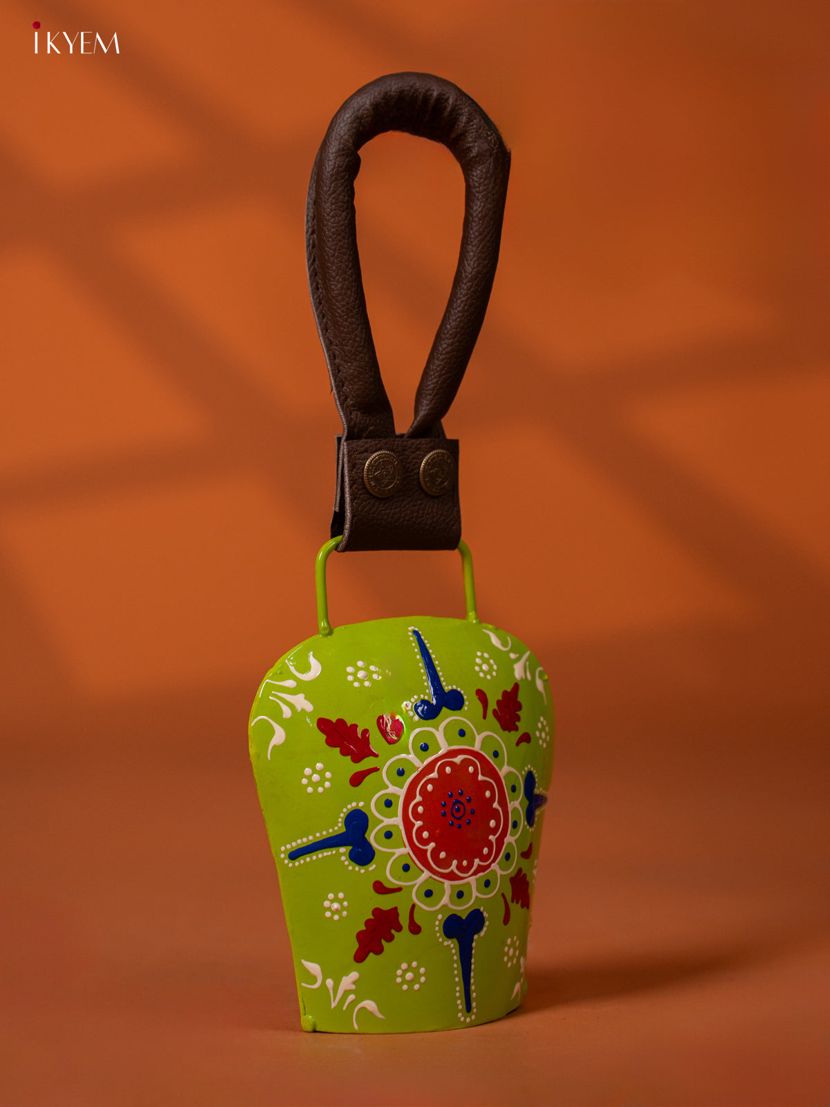 Hand Painted Cow Bell with Leather Handle - Medium - Green -KE27157