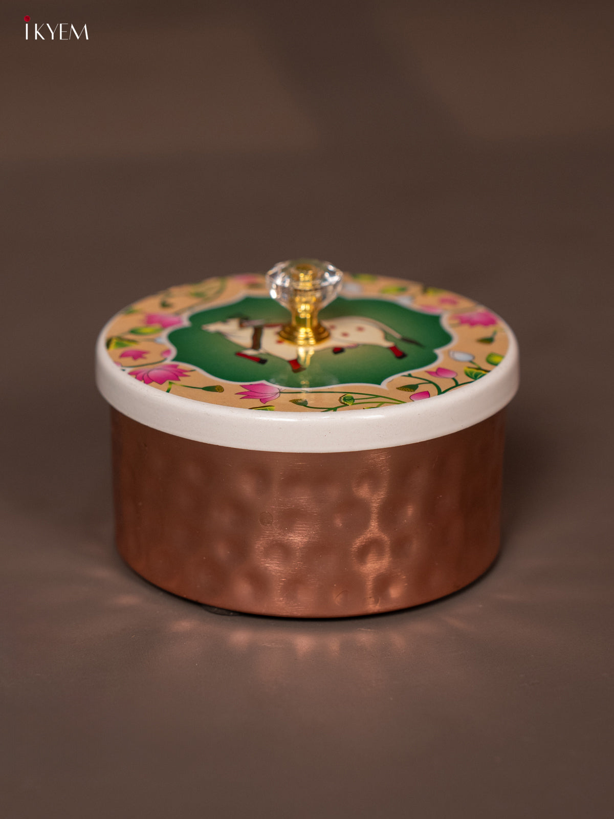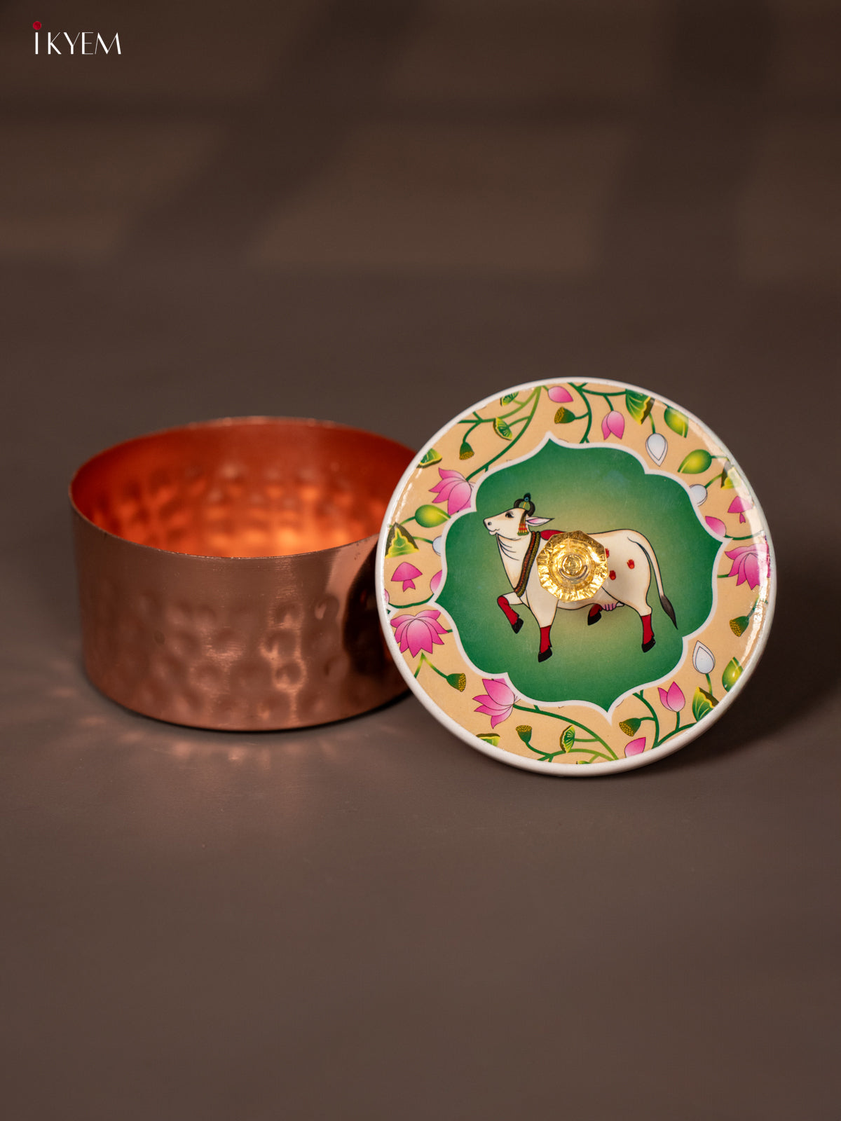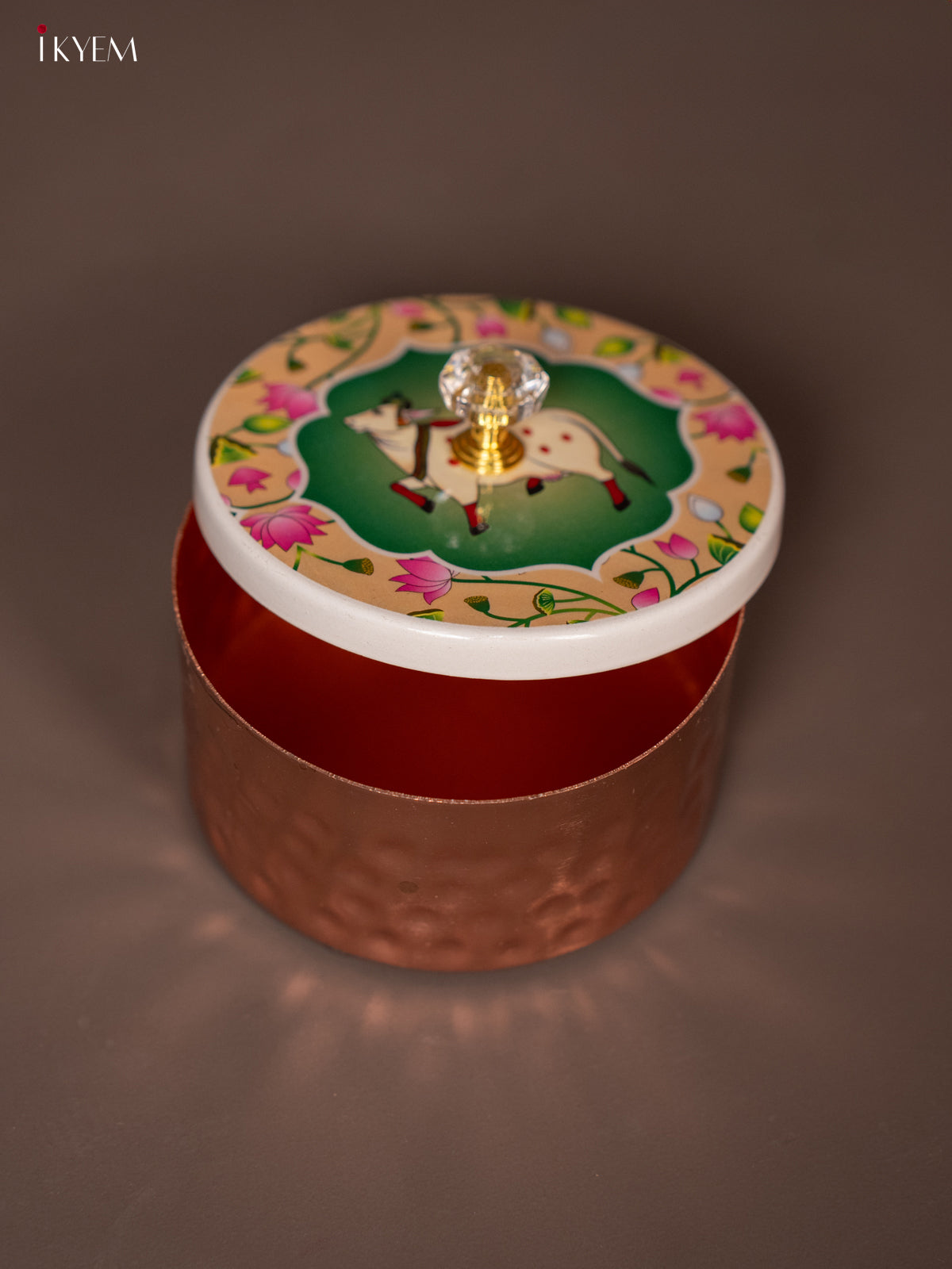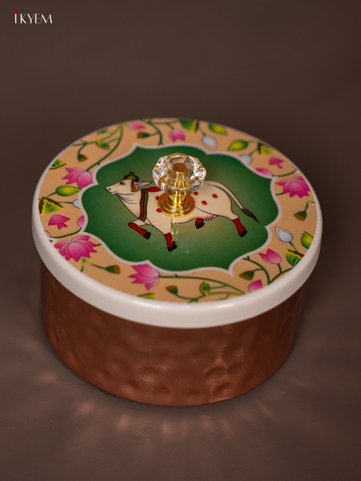 Digital Printed Copper Dry Fruit Jar - Pichwai Cow - GREEN - KE28128