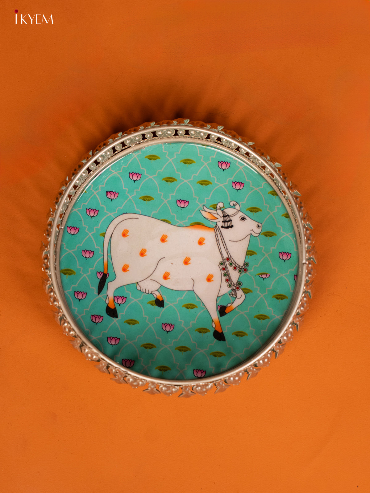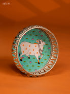Digital Printed German Silver Tray - 6 Inch - Cow - Sky Blue - KE28140