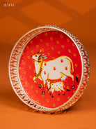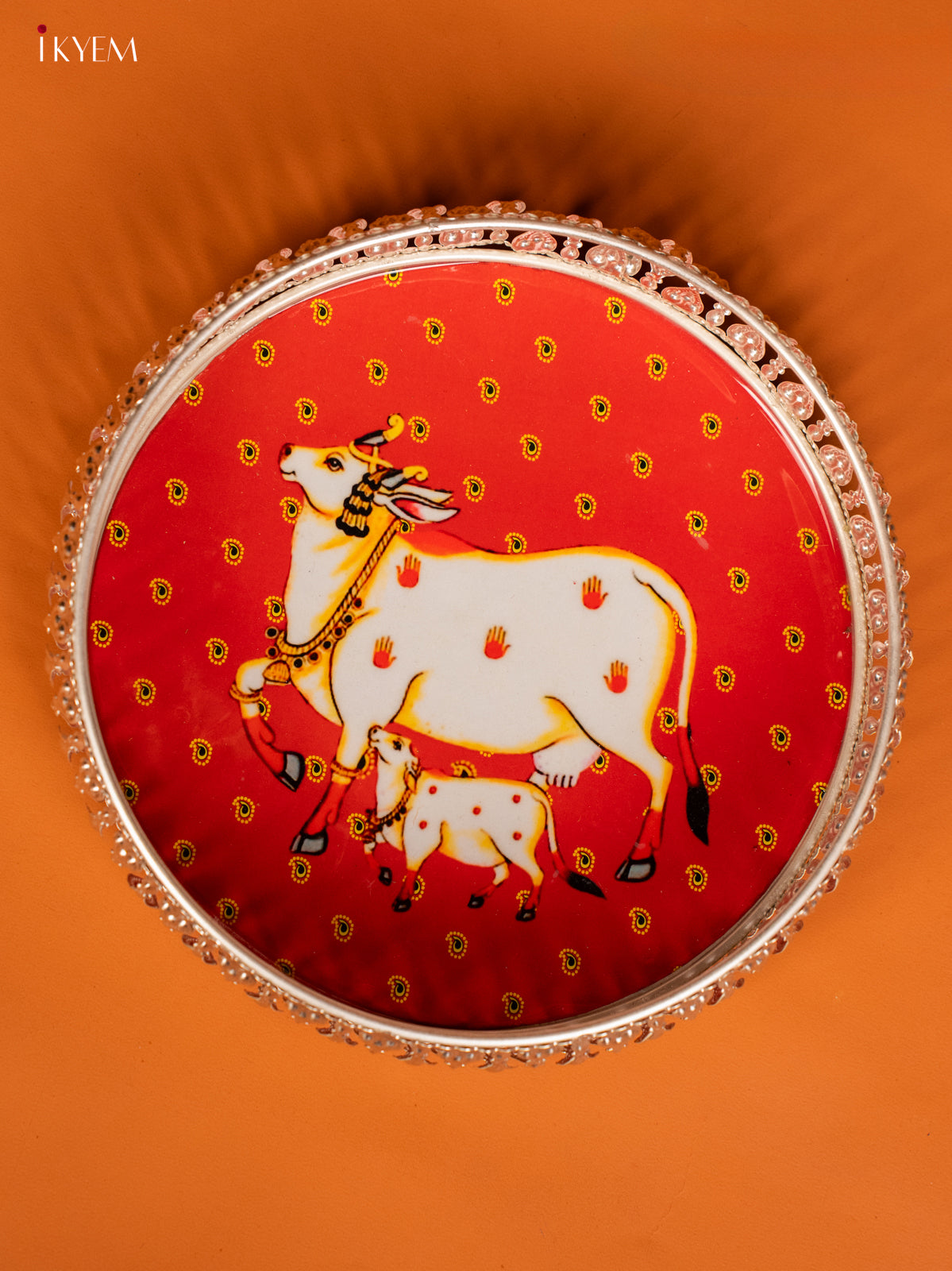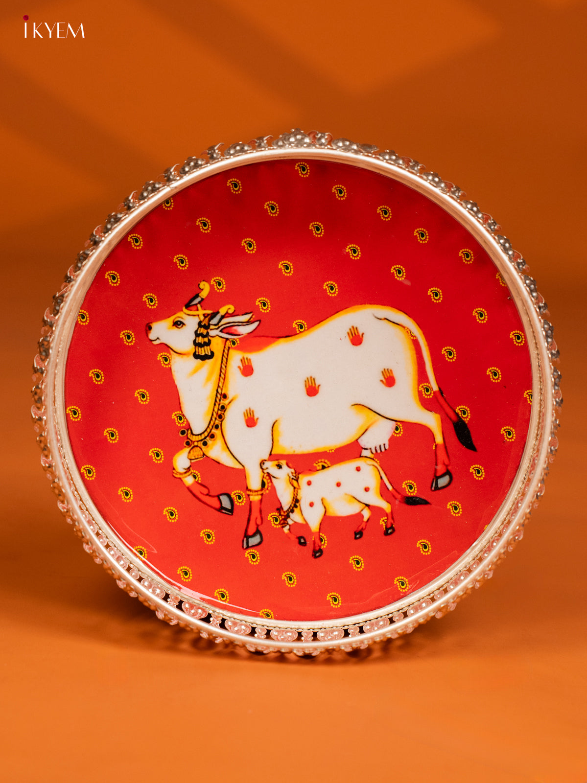 Digital Printed German Silver Tray - 8 Inch - Cow & Calf - Red - KE28149
