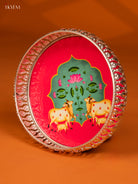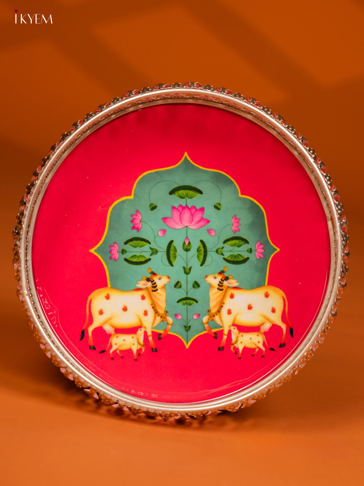 Digital Printed German Silver Tray - 8 Inch - Cow & Calf - Pink - KE28151